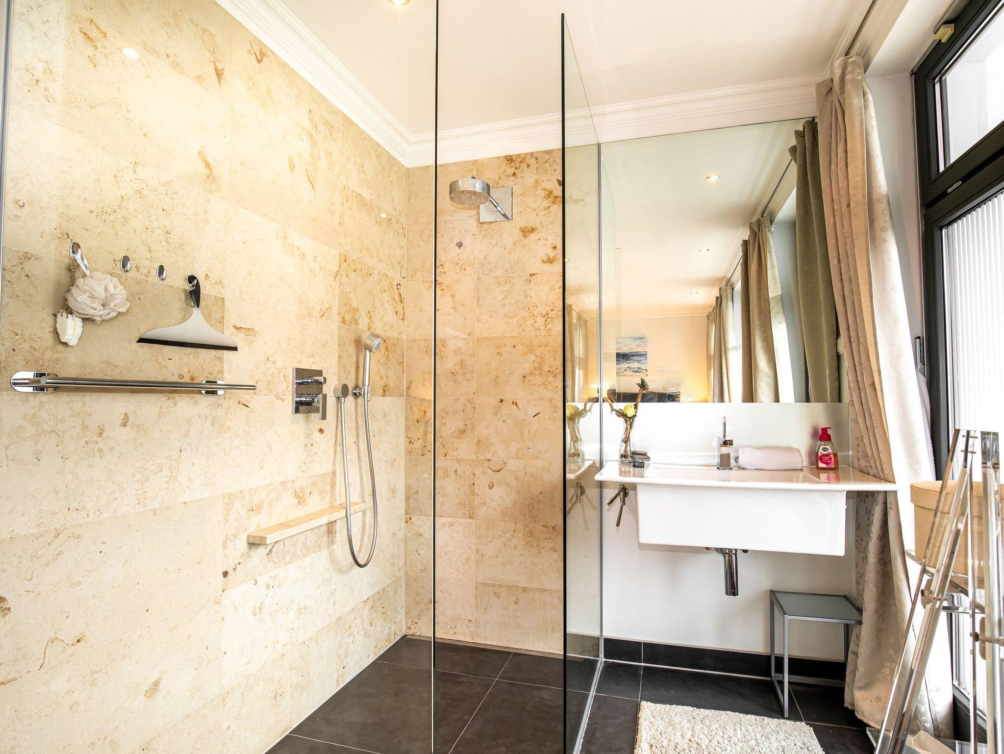 Wir freuen uns, Ihnen diese Mitte 2023 frisch renovierte Wohnung in bester Lage von Sellin anbieten zu können. Dieses tolle Domizil wurde mit viel Liebe zum Detail für Ihren perfekten Urlaub geschaffen. Bequem per Aufzug erreichen Sie aus der Tiefgarage das Promenadendeck im 1. Obergeschoss der Villa Paula. Auf insgesamt 2 Etagen erstrecken sich ein Eingangsbereich, ein Gäste-WC, ein Schlafzimmer mit Bad en Suite, ein großer Wohn-, Essbereich, sowie 2 tolle Balkone mit seitlichem Meerblick. Zusätzlich steht allen Gästen des Hauses ein kostenfreier Pool (saisonbedingt) zur Verfügung. Durch die hochwertige Schlafcouch im Wohnbereich können wir Ihnen dieses Domizil für bis zu 4 Personen anbieten.