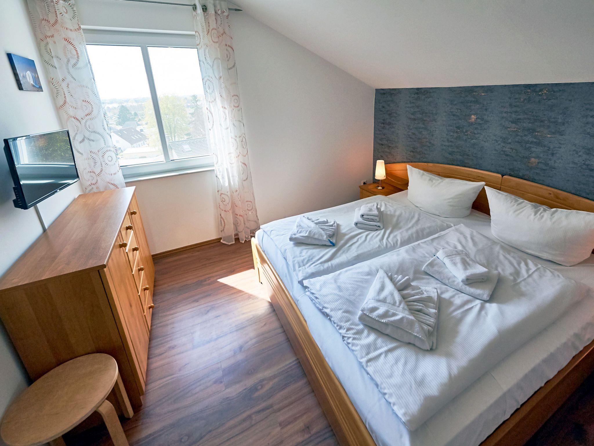 Im Obergeschoss finden Sie auch Ihre drei Schlafzimmer. Zwei davon sind mit komfortablen Doppelbetten (1,80 x 2,00 m), Kleiderschrank und zusätzlichem TV ausgestattet, das dritte Schlafzimmer verfügt über zwei Einzelbetten (0,90 x 2,00 m). Fliegengitter an allen Fenstern im OG sorgen saisonal dafür, dass lästige Plagegeister draußen bleiben und Sie erholt und ausgeruht in den nächsten Urlaubstag starten können.