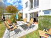 Am großen Esstisch aus wertvollem Pinienholz ist Platz für die ganze Familie. Wenn das Wetter es zulässt, kann man natürlich auch wunderbar draußen an der frischen Ostseeluft speisen. Dazu müssen Sie nur ein paar Treppenstufen abwärts gehen. Sie passieren den gemütlichen Leseraum mit zwei Ledersesseln plus Hocker ein kuscheliger Ort für die spannende Lieblingslektüre! Noch ein Schritt weiter und Sie stehen auf der Terrasse, die dem Namen Sonnenträumer alle Ehre macht. Schließlich können Sie hier von mittags bis zum Abend die Sonne genießen. Komfortable Gartenstühle inkl. Auflagen, ein großer Tisch, ein Sonnenschirm und ein Gartengrill stehen Ihnen zur Verfügung.