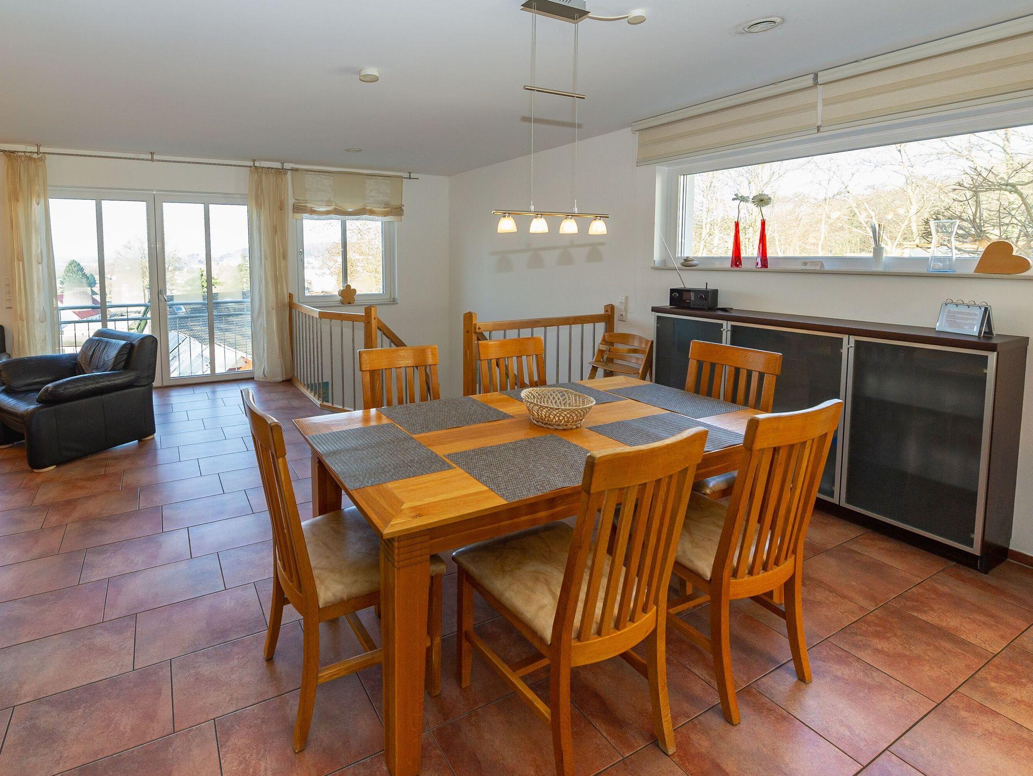 Über den Flur mit Garderobe, Spiegel, Schuhablage, [&] Co. betreten Sie den lichtdurchfluteten Wohn- und Essbereich, der mit seiner modernen und hochwertigen Ausstattung sofort zum Wohlfühlen einlädt. Die gemütliche Ledergarnitur wartet förmlich darauf, dass Sie hier vor dem großen Flachbild-TV Platz nehmen, für den sogar eine PlayStation 4 vorhanden ist. Natürlich gibt es zur medialen Unterhaltung auch ein Radio mit CD-Player und kostenfreies W-LAN.