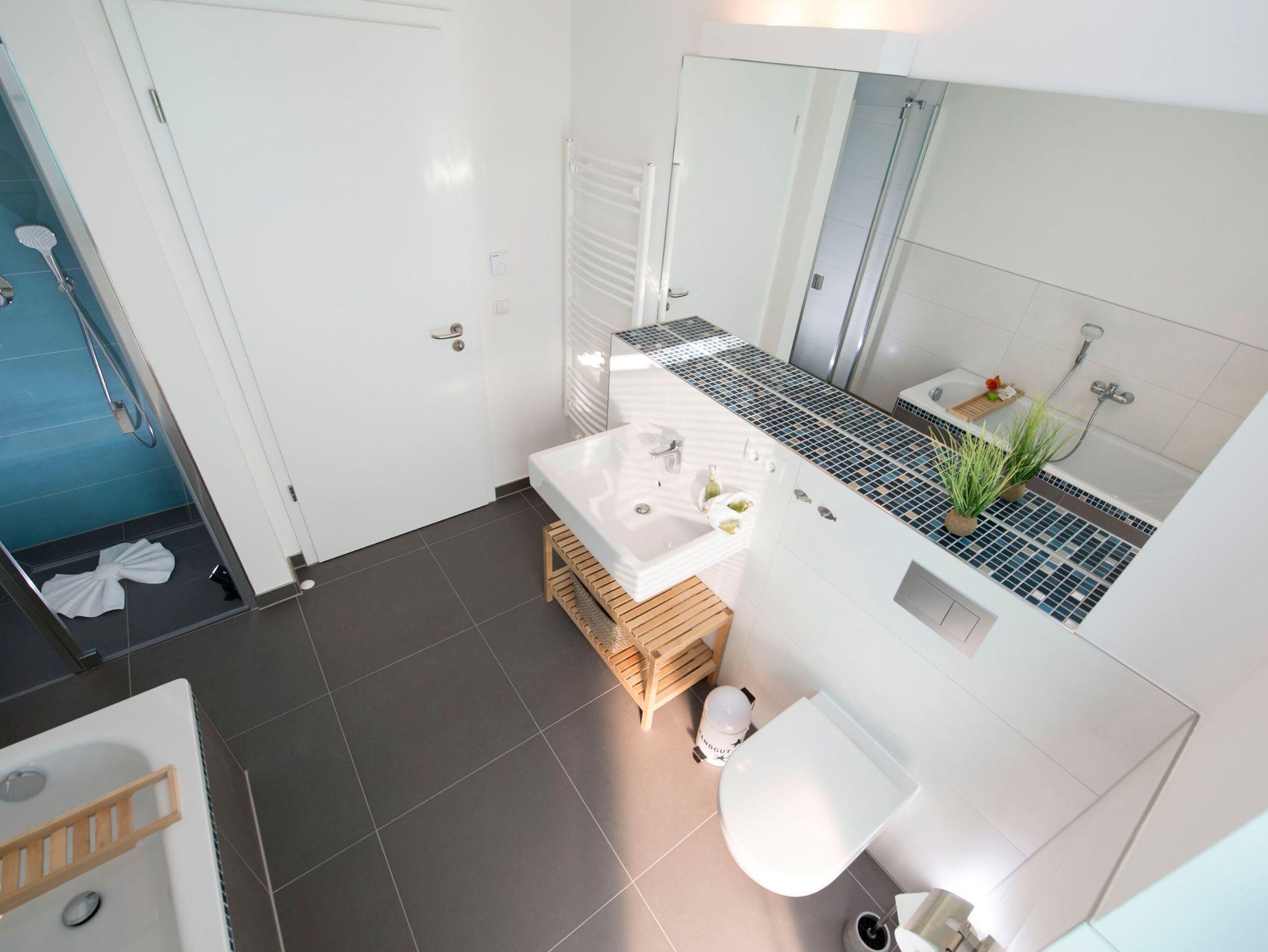 Fühlen Sie sich wohl in den zwei separaten Schlafzimmern mit ihren komfortablen Boxspringbetten und starten Sie Ihr individuelles Verwöhnprogramm in dem modernen maritimen Wannen-/Duschbad. Wenn es draußen langsam kühler wird, sorgen die Fußbodenheizung und der Kamin im Wohnbereich für eine wohlige Atmosphäre und warme Füße.