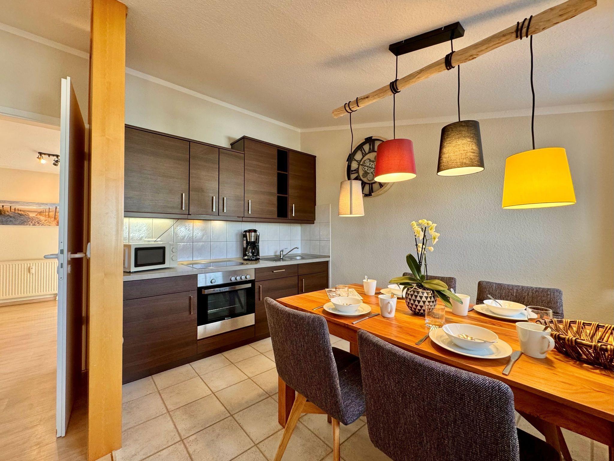 Die Ausstattung umfasst einen TV-Flachbild, eine Kaffeemaschine (Filter), eine Mikrowelle und Bettwäsche, die bereits im Preis inkludiert ist. Auch Haustiere sind in der Ferienunterkunft herzlich willkommen. Ein Balkon, ein Fahrradkeller und ein WLAN Anschluss stehen den Gästen ebenfalls zur Verfügung. Für Unterhaltung sorgt ein TV mit Sky-Sendern. Zur sicheren Unterbringung des Autos steht ein Tiefgaragenstellplatz bereit. Für den morgendlichen Brötchenservice ist ebenfalls gesorgt.
