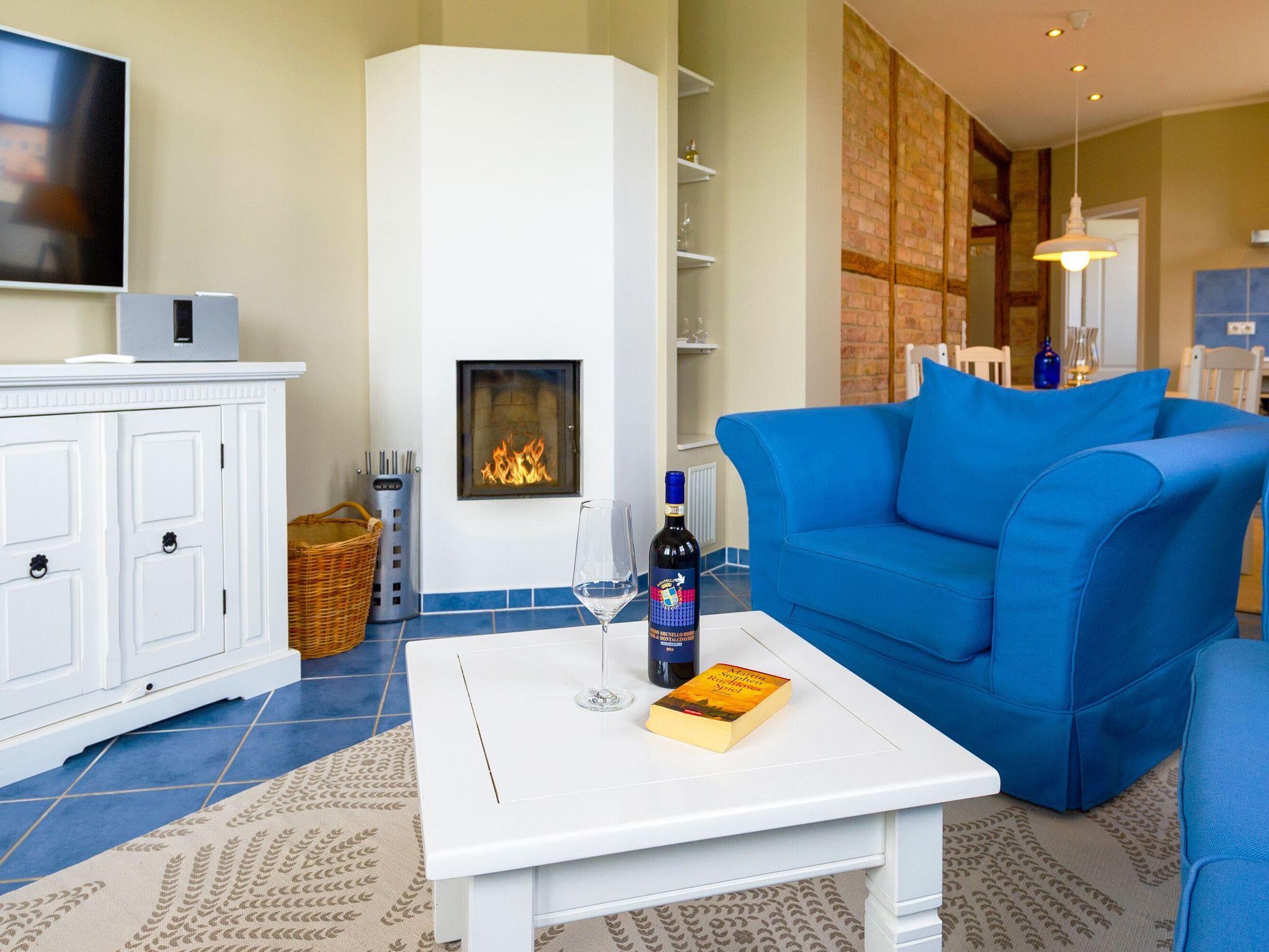 Über einen Flur gelangen Sie in den großzügigen Wohn- und Essbereich. In diesem befinden sich u.a. eine gemütliche Couch (ohne Schlaf-Funktion), ein Kamin für erholsame Stunden, ein Esstisch, ein LCD-Fernseher, eine BOSE Bluetooth-Soundanlage sowie ein schnurloses Telefon. Kostenloser Internetzugang (per Datenkabel oder per WLan) zu Ihrer Verfügung.