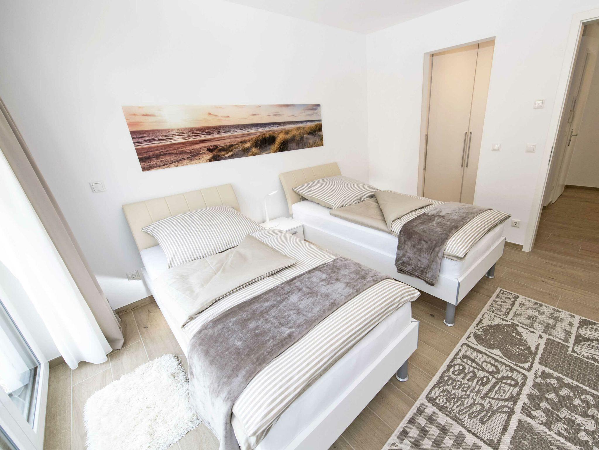 In den beiden Schlafzimmern ? ausgestattet mit hochwertigen Möbeln und Betten des deutschen Herstellers Nolte ? werden Sie himmlisch nächtigen. Die 26 cm hohen 7-Liegezonen-Matratzen bieten Ihnen ein spezielles Schulter-Absenkungs- und Becken-Komfortsystem mit hervorragender Wirbelsäulenanpassung. Die Vorhänge ermöglichen das Abdunkeln. Es stehen 2 verschiedene Kopfkissen-Varianten von irisette Noblesse ? auch ideal geeignet für Hausstaub-Allergiker ? zur Verfügung. Durch die bei Bedarf geöffneten Fenster ? versehen mit einem Insektenschutzgitter ? kommt im Sommer eine kühle Brise vom Meer.