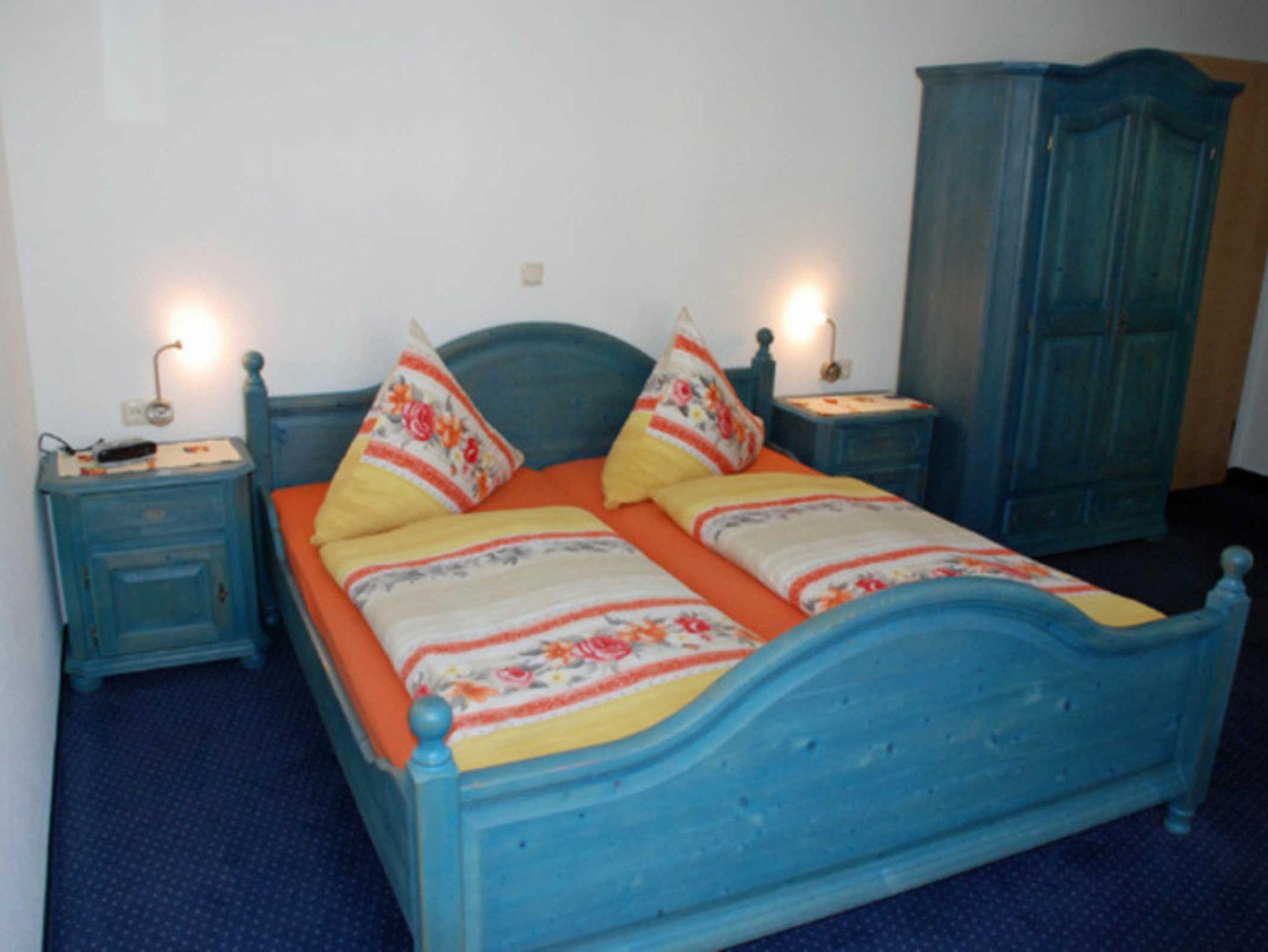 Unsere modern eingerichteten Doppelzimmer (21 qm) sind mit rustikalen Bauernmöbeln komfortabel ausgestattet und in den Farben Blau oder Grün gehalten. Zur Ausstattung gehören bequeme Doppelbetten mit Nachttischen und Leselampen, Sitzmöbel mit Tisch, Kleiderschrank, Kühlschrank, Wasserkocher, Flachbild-TV und Radio. Tassen und Löffel sind ebenfalls vorhanden. Separat für alle Gäste haben wir Geschirr, wie Teller, Teetassen sowie Besteck und Geschirrhandtücher. Ab 2016 gibt es auch einen kostenlosen WLAN-Anschluss. Bei Ihrer Anreise liegen frische Handtücher bereit und die Betten sind selbstverständlich bereits mit Bettwäsche bezogen. Alle Zimmer verfügen über ein separates Bad mit Tageslicht, Dusche und WC. In unserem Frühstücksraum starten Sie den Tag mit einem ausgiebigen Frühstück vom reichhaltigem Buffet. Wir halten auch eine Auswahl an Getränken für Sie bereit.