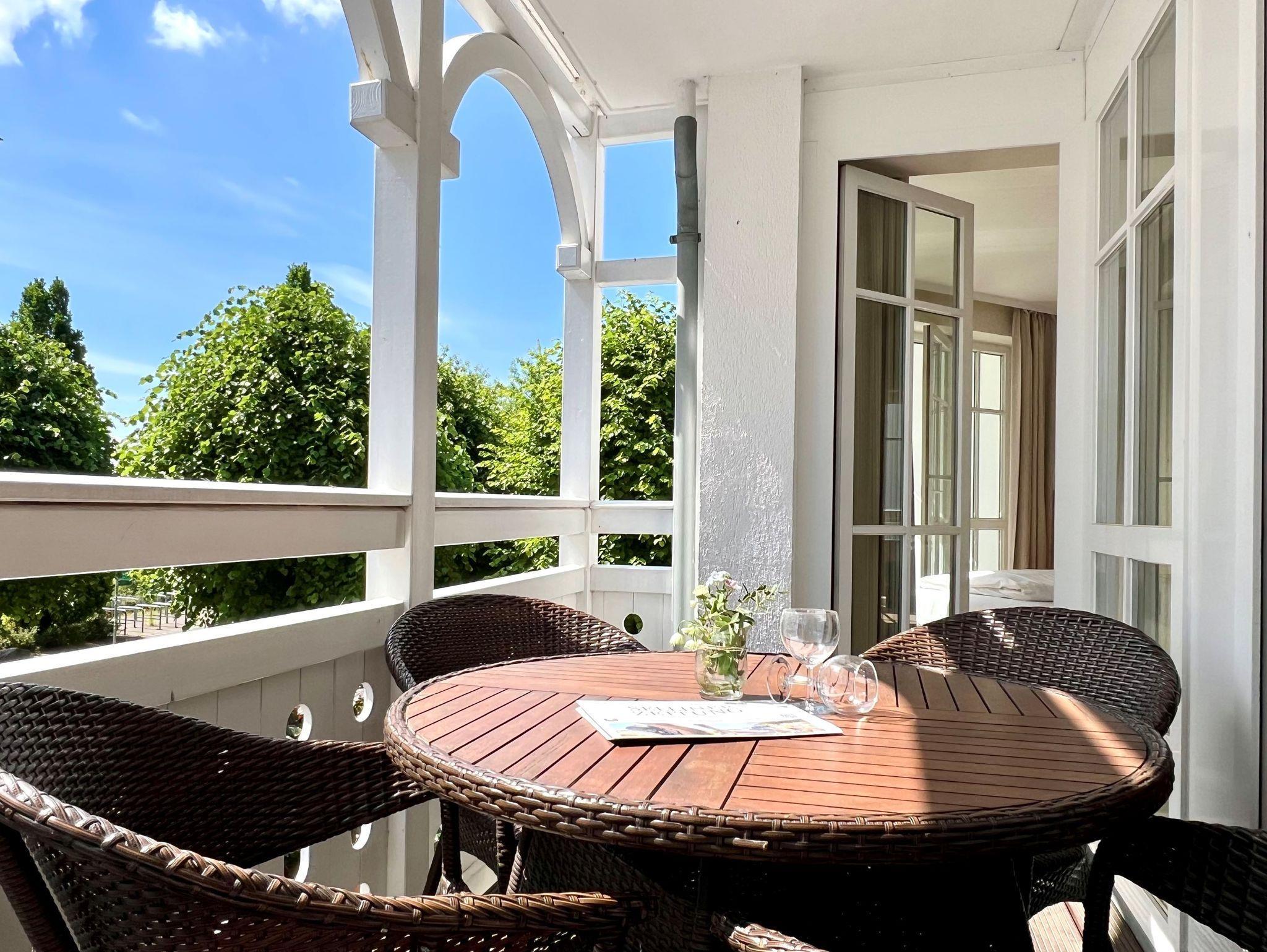 Auf dem Balkon in Südostlage können die Gäste einen wunderbaren Ausblick genießen und auf der Sitzgruppe entspannen. Die Ferienwohnung ist ein Nichtraucher-Apartment, aber ein mitreisendes Haustier ist gestattet.
