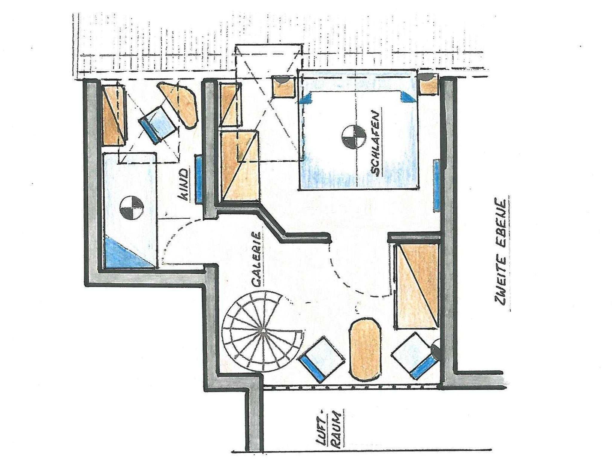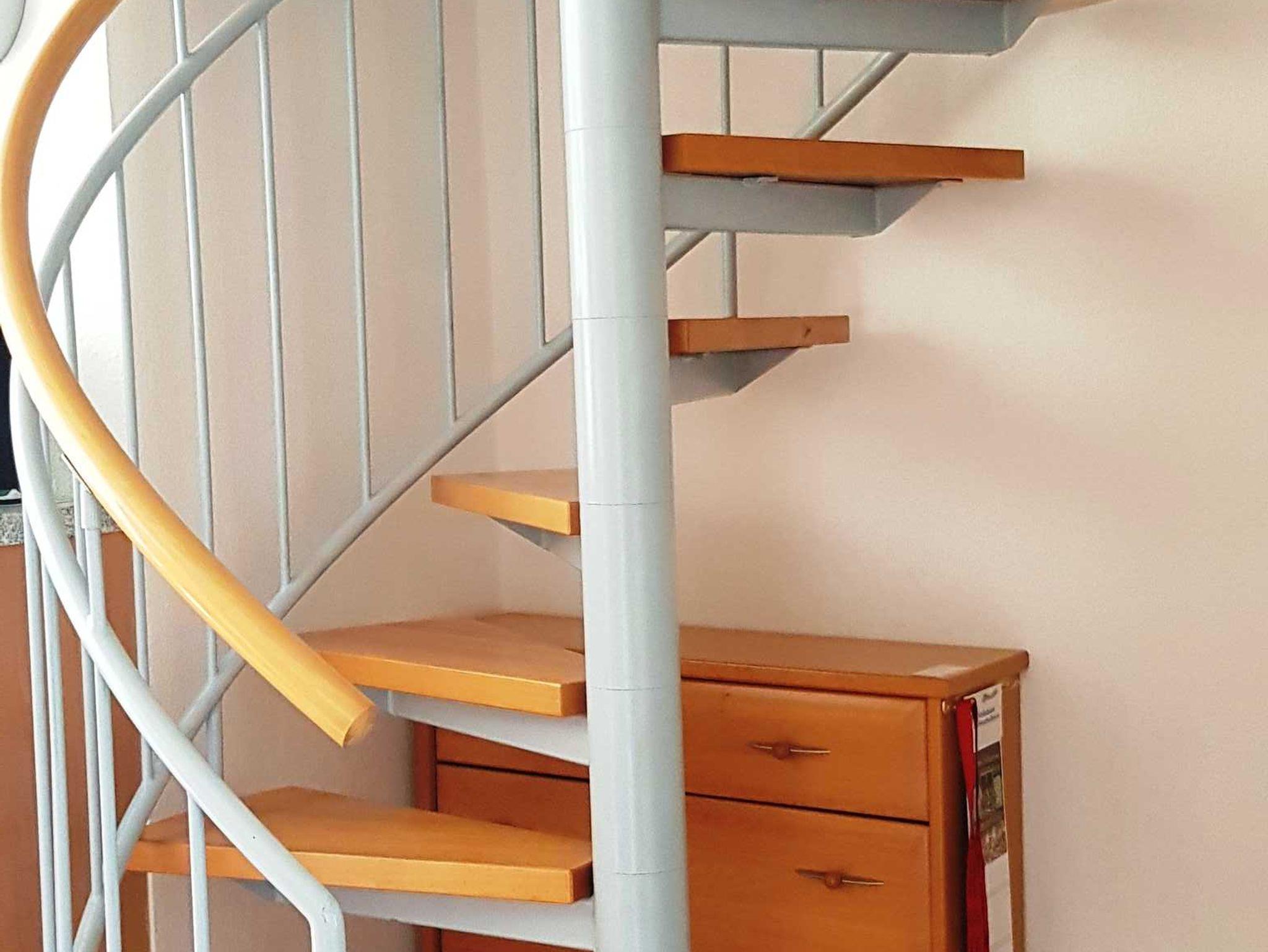 In der Maisonettenwohnug erreichen sie das Schlafzimmer und das Kinderzimmer über eine Wendeltreppe.
