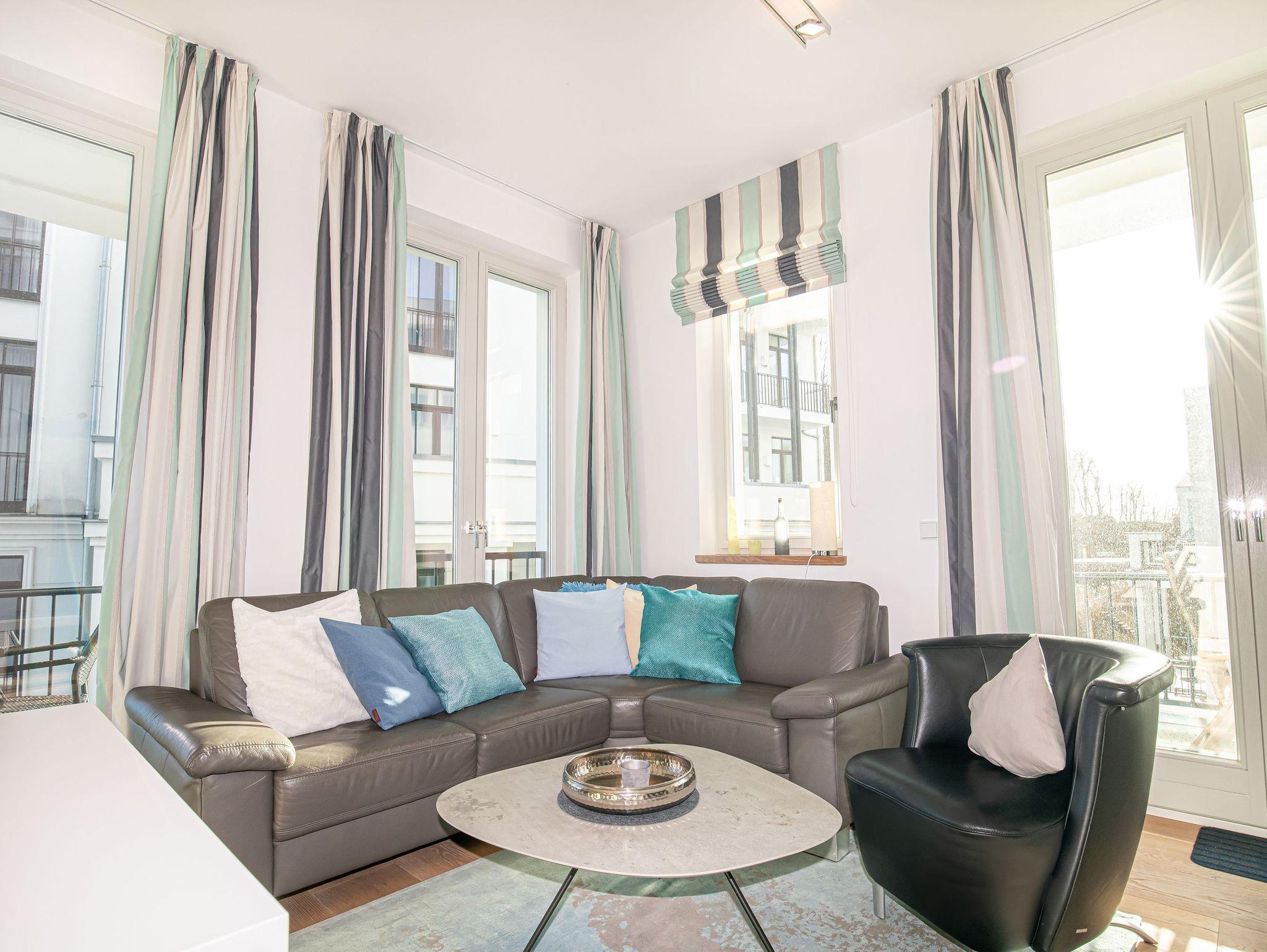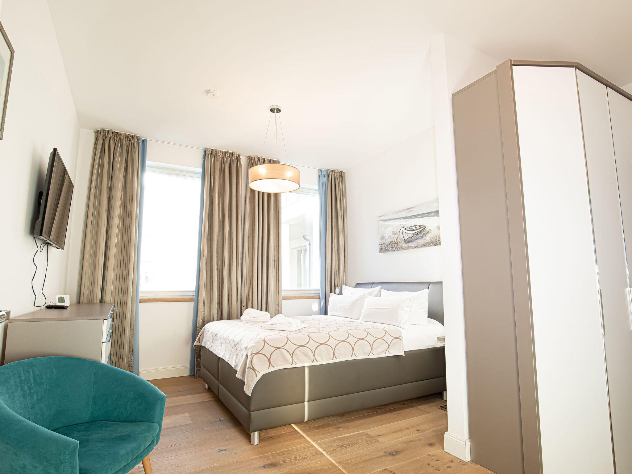 Die Ferienwohnung mit dem Namen FIRST Waterkantsuite bietet auf 91 m² [nbsp]Wohnfläche ausreichend Platz für bis zu 4 Personen. Sie befindet sich in der 3. Etage des Hauses FIRST Sellin und verfügt über 2 Schlafzimmer und 2 Badezimmer. Zur Ausstattung gehört ein Tiefgaragenstellplatz, von welchem Sie aus bequem per Lift zum Apartment gelangen. Eine Kaffeemaschine und eine Spülmaschine stehen Ihnen in der Küchenzeile zur Verfügung. Aus dem Wohnbereich genießen Sie einen traumhaften Panorama-Meerblick oder können ihren Liebsten beim planschen im Außenpool beobachten. Zusätzlich zum saisonal geöffneten Außenpool, steht Ihnen ganzjährig und kostenfrei ein Sky-Infinitypool (Indoor auf dem Dach des Gebäudes) zur Verfügung. Außerdem gibt es einen WLAN Anschluss, der Ihnen eine unkomplizierte Internetnutzung ermöglicht. Entspannung finden Sie auch im hauseigenen Saunabereich, welcher ebenfalls kostenfrei zur Ausstattung gehört. Die Ferienwohnung ist sowohl für Familien als auch für Radfahrer geeignet. Die Ortsmitte ist nur ca. 100 m entfernt und der Strand ist nur ca. 80 m entfernt. Ebenso befinden sich eine Vielzahl sehr guter Restaurants in unmittelbarer Nähe. Hier bleiben also keine Wünsche offen.