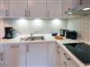 Die harmonisch im Wohnbereich integrierte Küchenzeile ist ausgestattet mit einem Kühlschrank mit Gefrierfach, einem 4-Platten-Ceranfeld, einer Spülmaschine, einer Mikrowelle mit Grillfunktion und diversem Kleininventar, das die Küchenausstattung komplettiert.