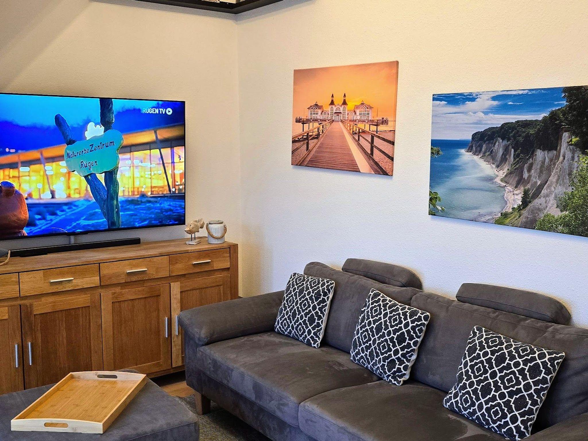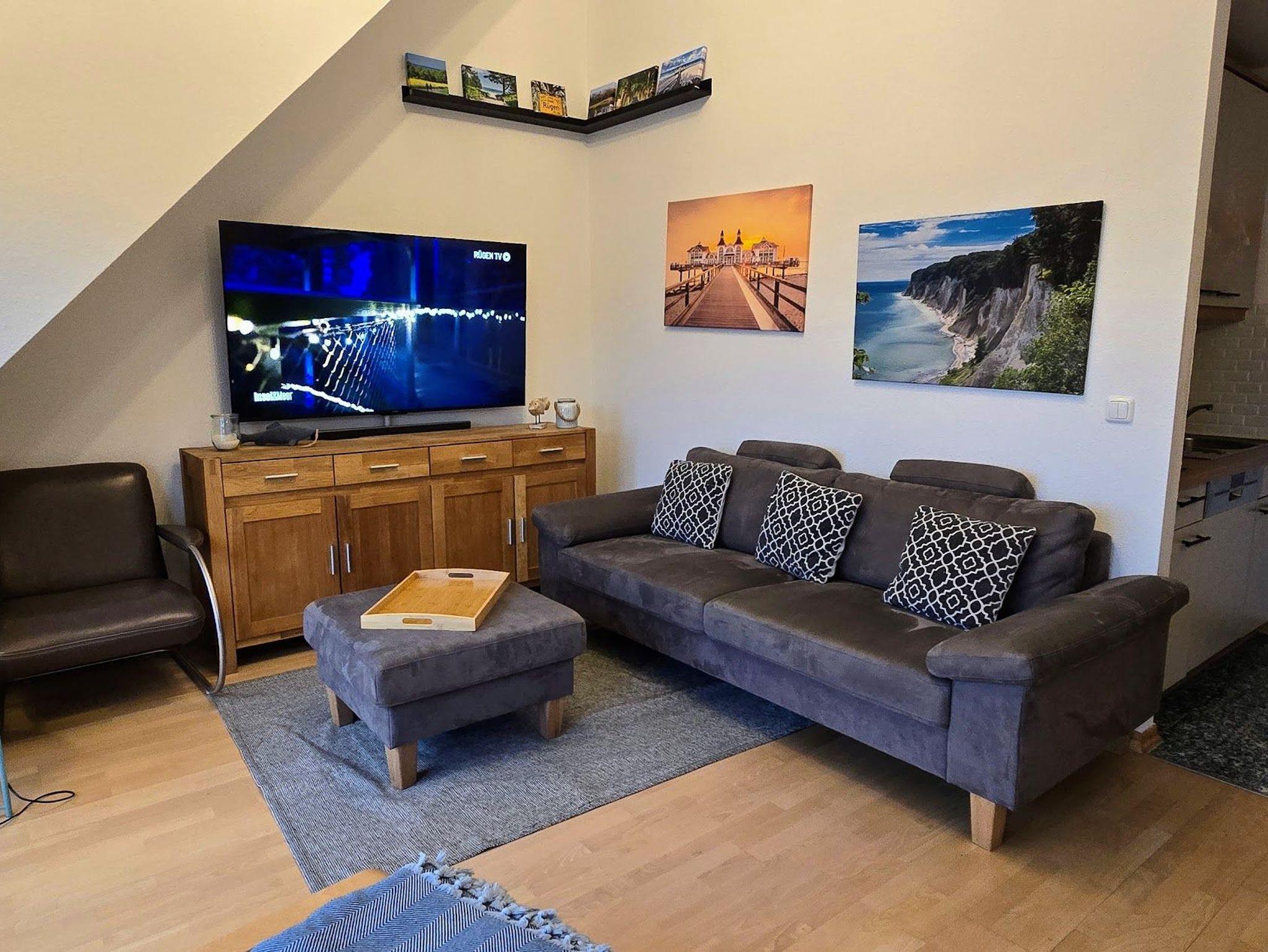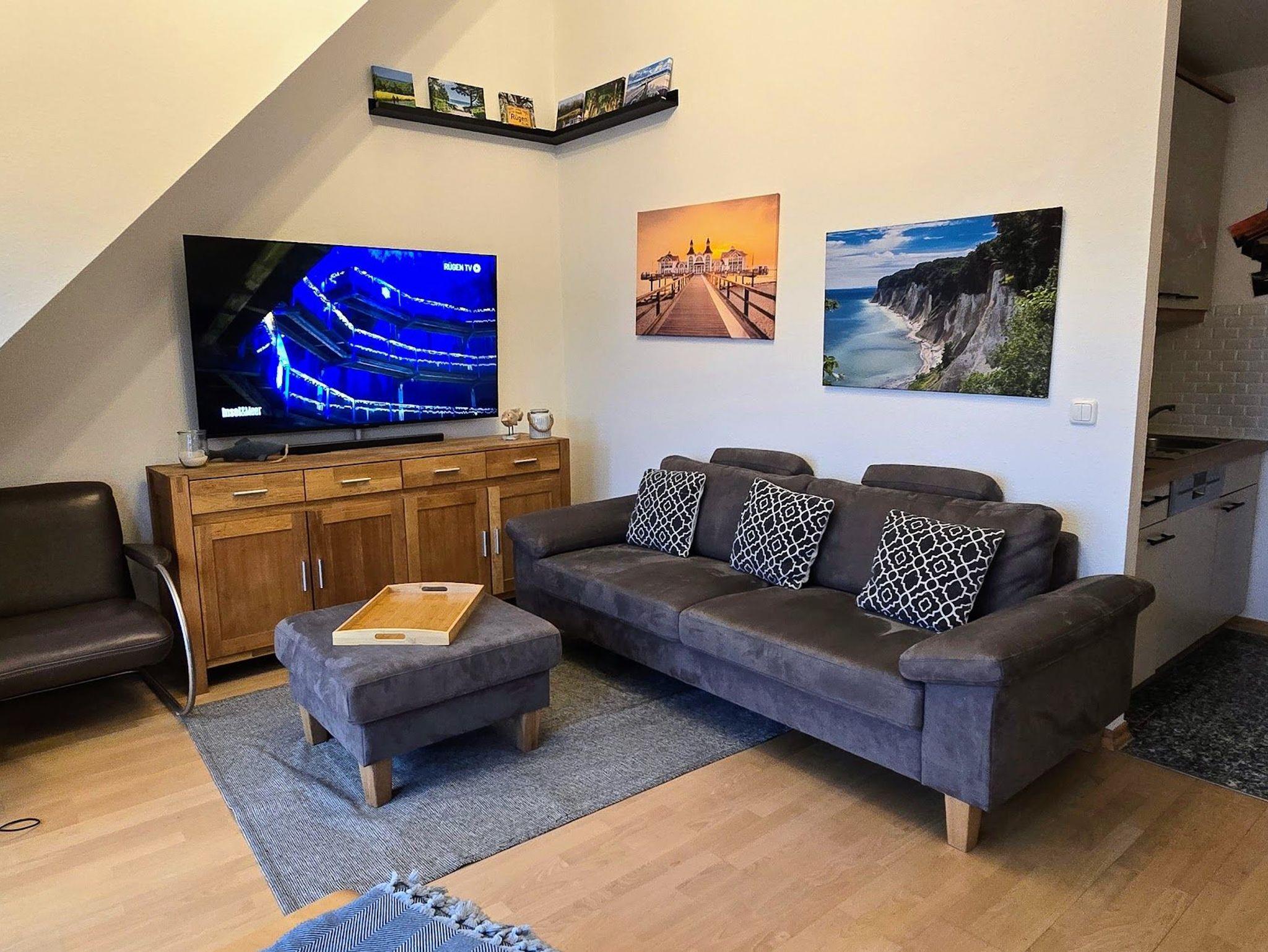 • Wohnzimmer mit Couch und Esstisch für 4 Personen