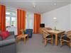 Ein Doppelbett, zwei Einzelbetten, eine Doppelschlafcouch, zwei Balkone, voll ausgestattete Küchenzeile (mit Geschirrspüler, Mikrowelle, Backofen, Tiefkühlfach), Bad (mit Dusche, WC), Fahrstuhl in das 1. Obergeschoss, kostenlose Sauna-Nutzung, Kinderbett und Kinderstuhl auf Anfrage kostenlos stellbar, kostenlose W-LAN-Nutzung, Münzwaschmaschine und Trockner, Parkplatz (entgeltlich, bitte im Voraus telefonisch buchen), Rauchen im gesamten Haus nicht erlaubt (aber auf dem Balkon möglich).