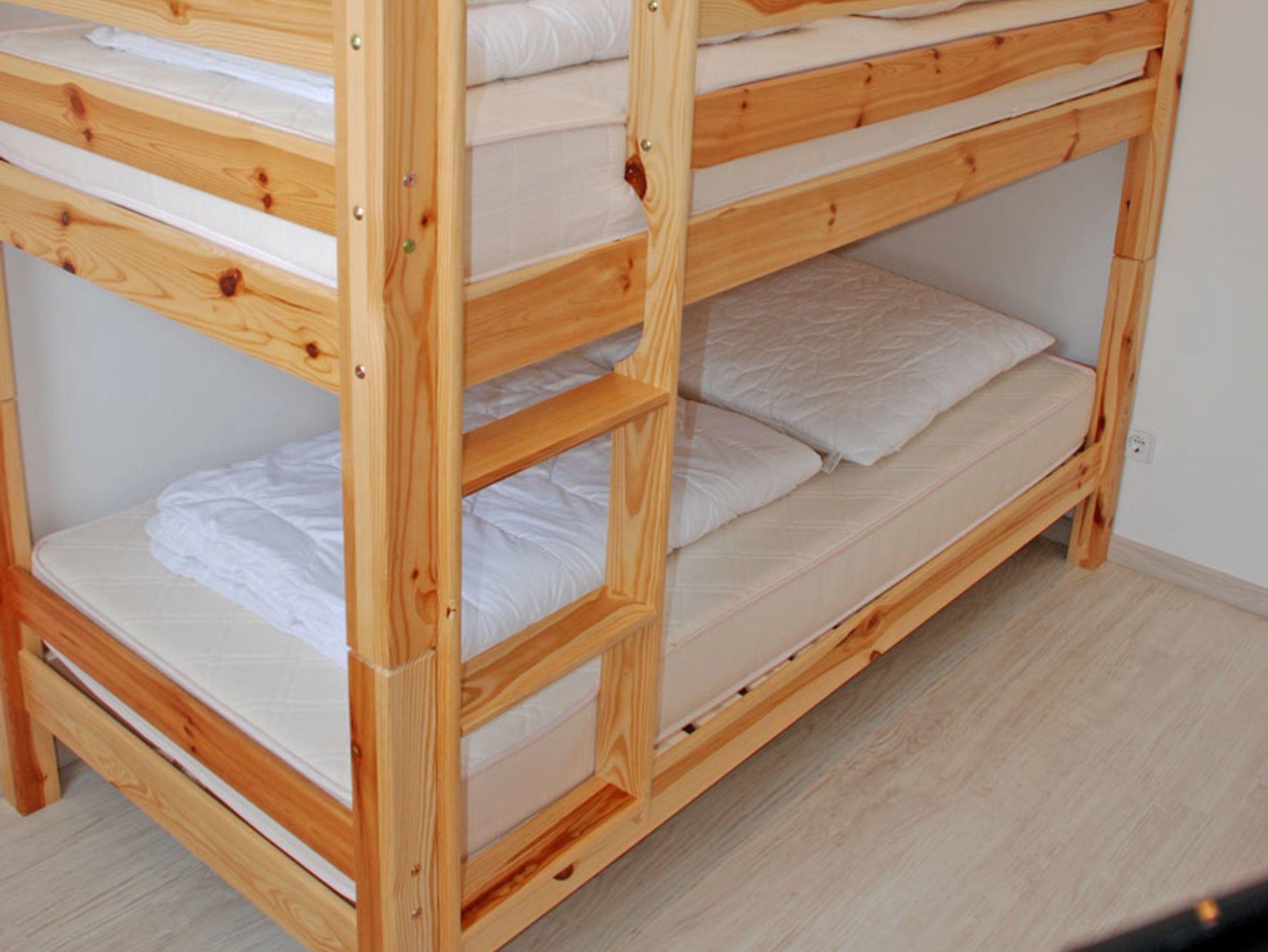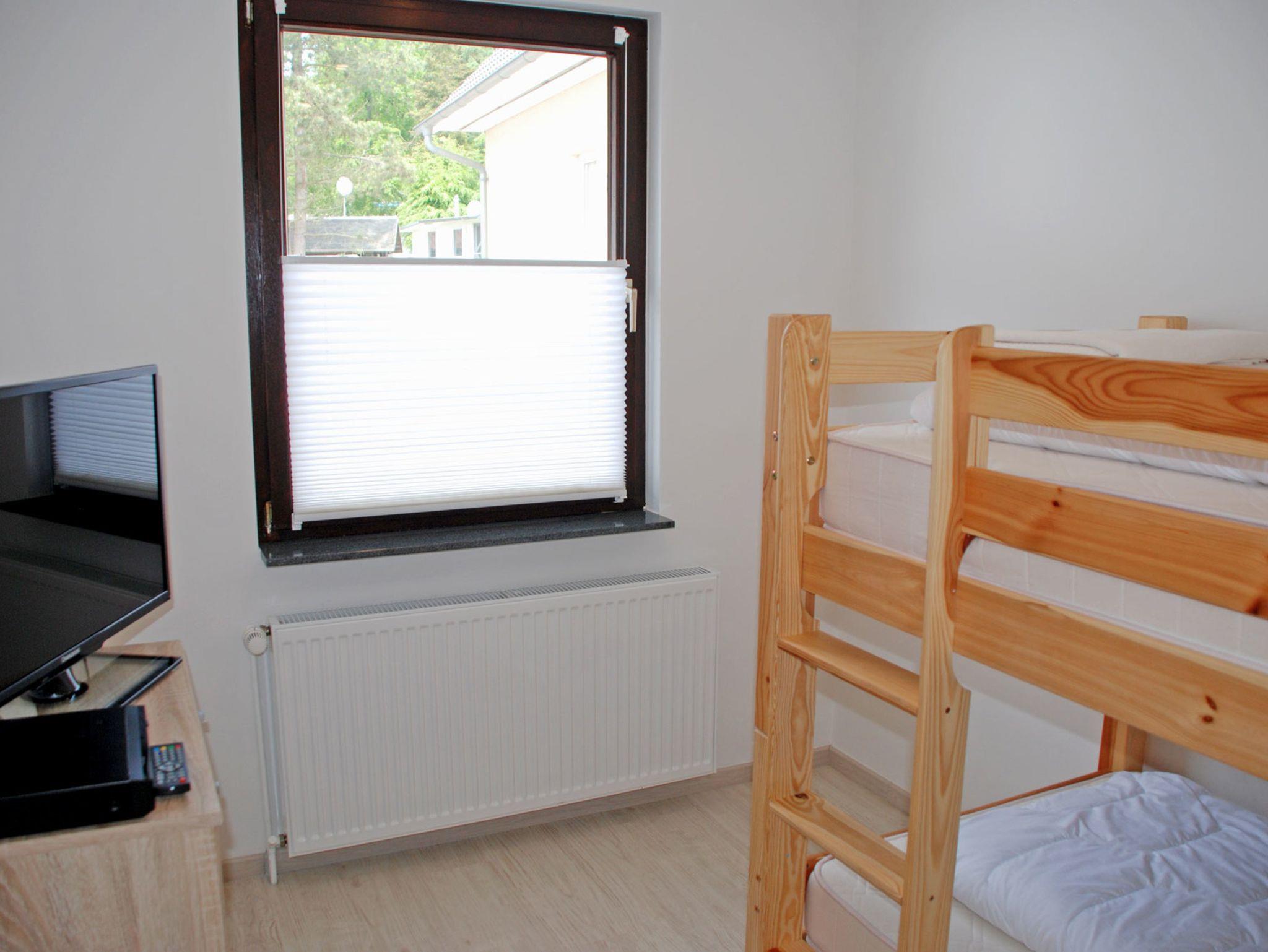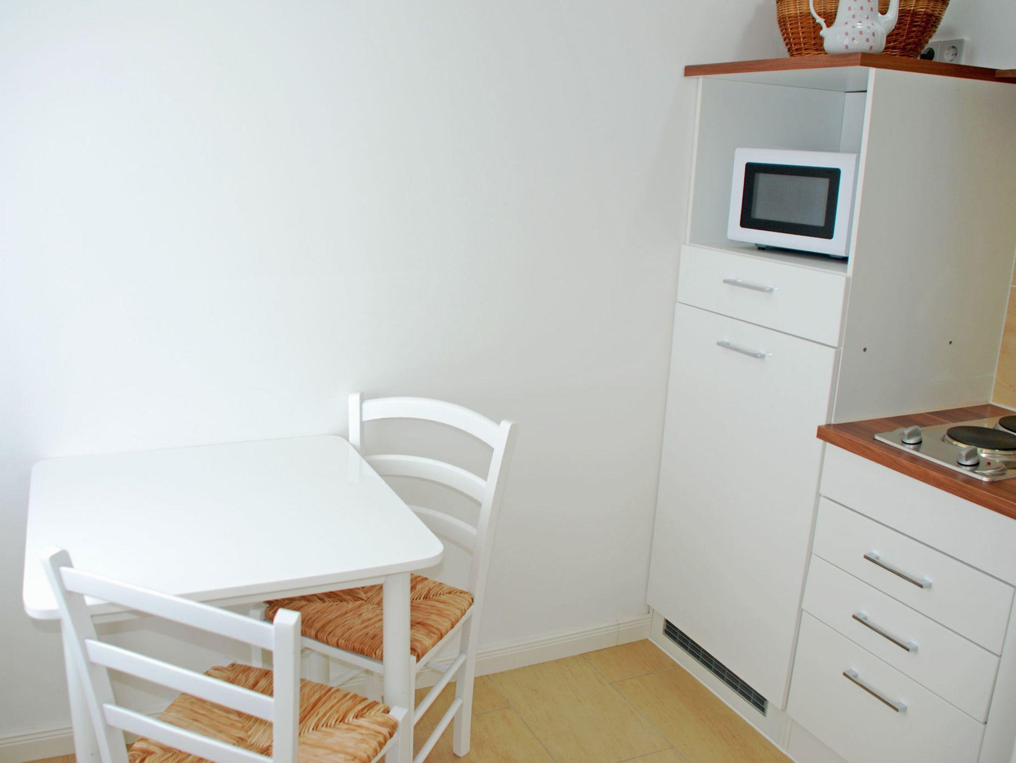 Im zweiten Schlafzimmer steht ein Etagenbett und ein Kleiderschrank. Die separate, kleine Küche ist mit einem 2-Plattenherd, Mikrowelle, Abzugshaube, Wasserkocher, Kaffeemaschine, Toaster und Kühlschrank komplett ausgestattet. Gegen einmaligen Aufpreis je Gast werden zu Ihrer Anreise Bettwäsche (Selbstbezug) und Handtücher bereitgelegt. Bitte dies vor Anreise schon bei einer Buchung mitbestellen!