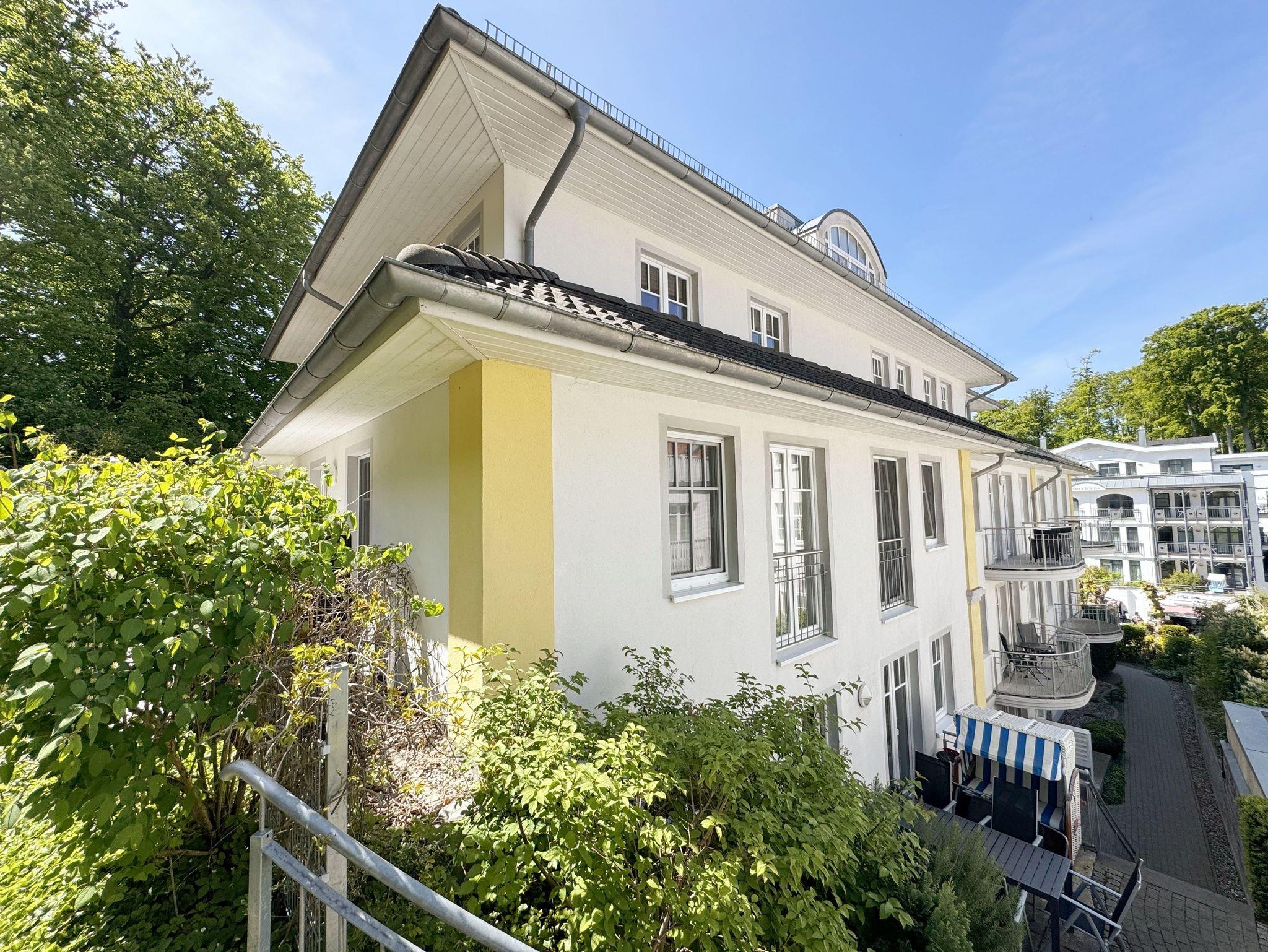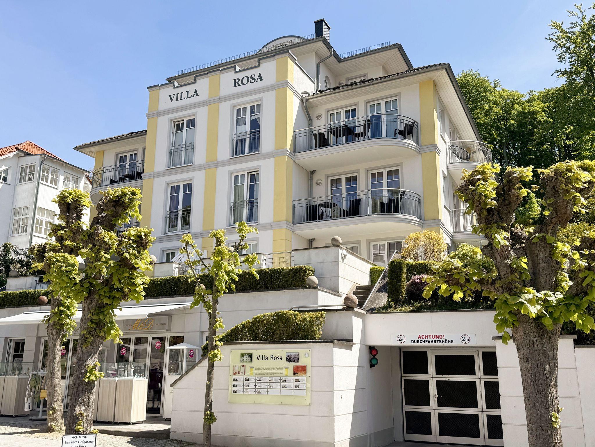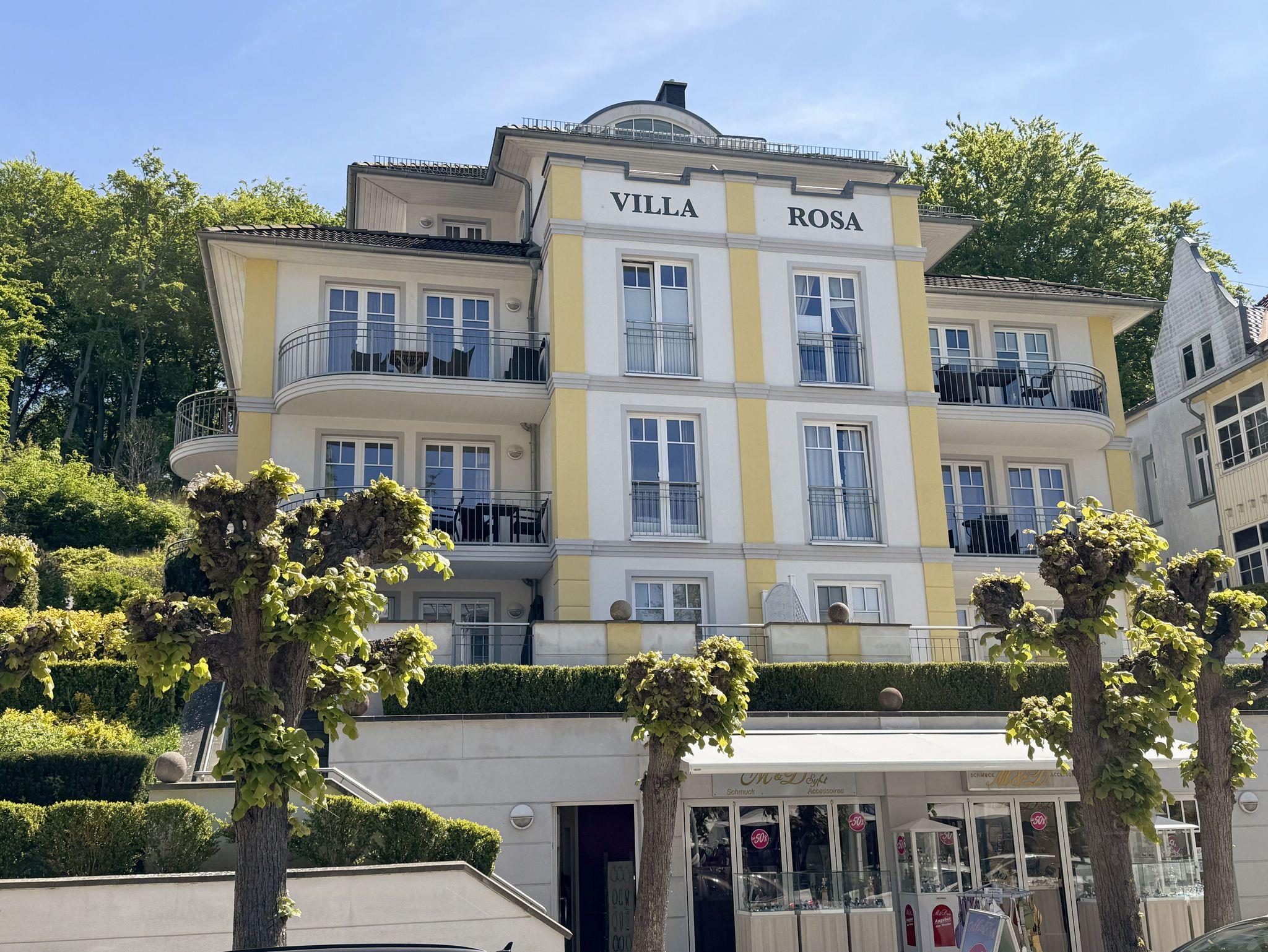Die Villa Rosa befindet sich in bester Lage Sellins, in der Wilhelmstraße. Die Wilhelmstraße mit ihren prächtigen Villen im Stil der Bäderarchitektur, Cafés und Restaurants liegt im Herzen von Sellin und ist die erste Adresse dieses Ostseebades. Von hier aus erreichen Sie die Seebrücke und den herrlichen Strand, die etwa 200 m von der repräsentativen Villa Rosa entfernt sind. Auch ein Fahrradverleih, sowie die Freizeittherme sind in näherer Umgebung. Die hochwertig eingerichtete 3-Zimmer-Wohnung 09 Strandgut befindet sich in ruhiger Lage im 1. Obergeschoss mit Terrasse (Nord/West-Ausrichtung). Die Wohnung ist für 2 bis 5 Feriengäste ausgelegt. Fast ein Alleinstellungsmerkmal der Villa Rosa ist der stilvolle Wellnessbereich mit Sauna, Dampfbad und Ruheraum, der diese Wohnung auch für die kühleren Tage empfiehlt.
