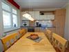Die harmonisch im Wohnbereich integrierte Küchenzeile ist ausgestattet mit einem Kühlschrank mit Gefrierfach, einem 4-Platten-Cerankochfeld, einem Backofen, einer Geschirrspülmaschine, einer Mikrowelle, Wasserkocher, Kaffeemaschine, Toaster und diversem Kleininventar, das die Küchenausstattung komplettiert.