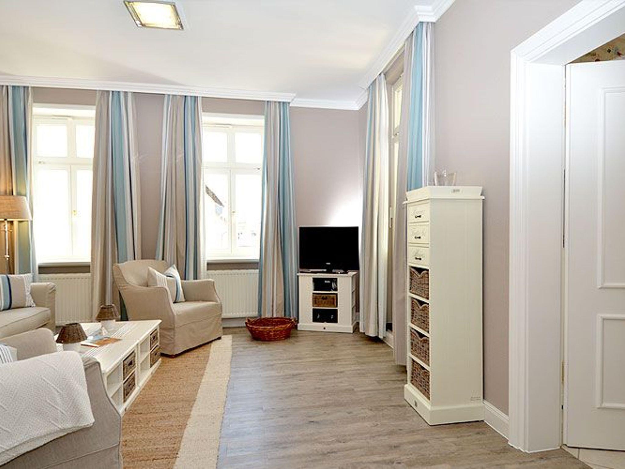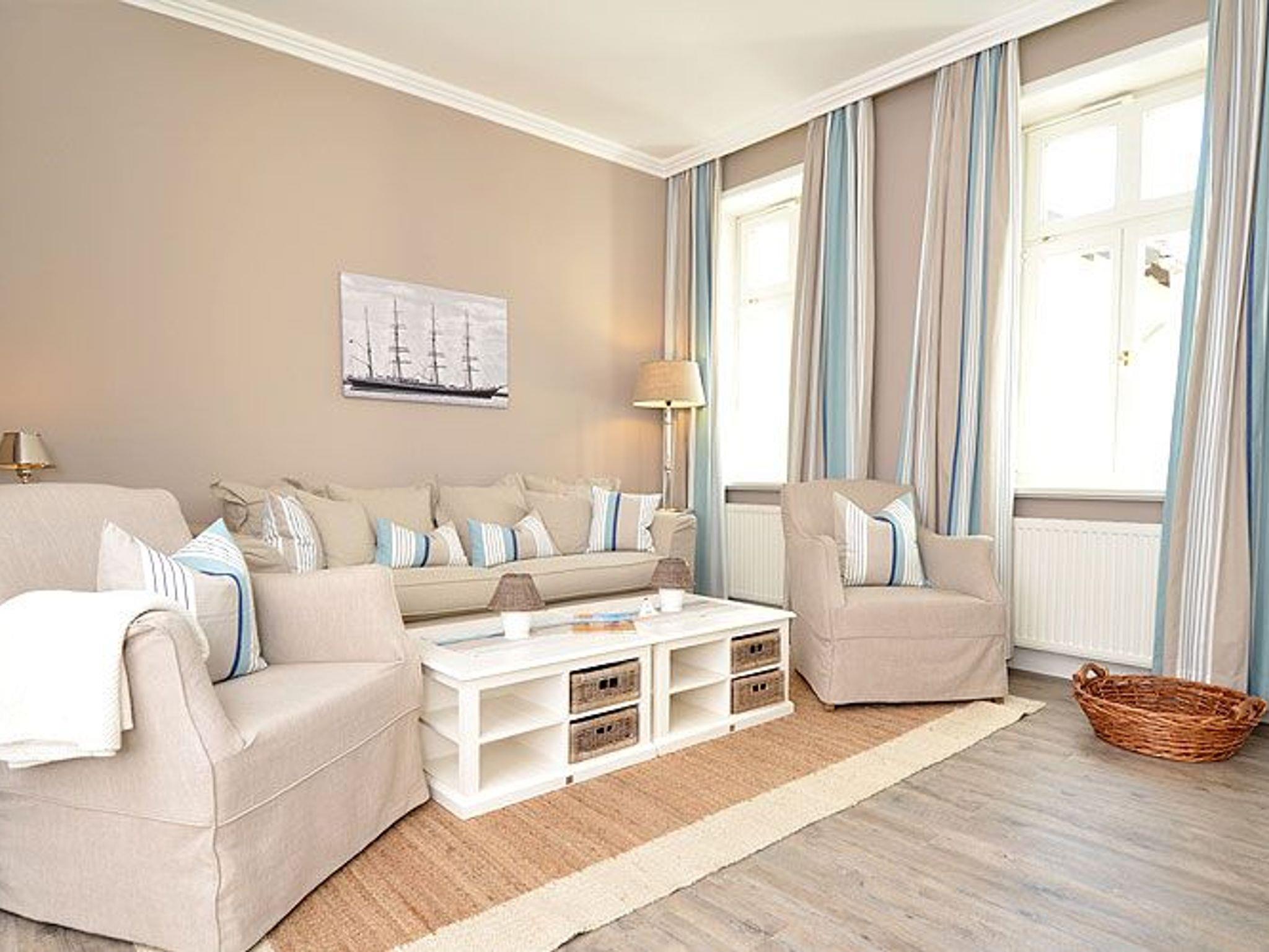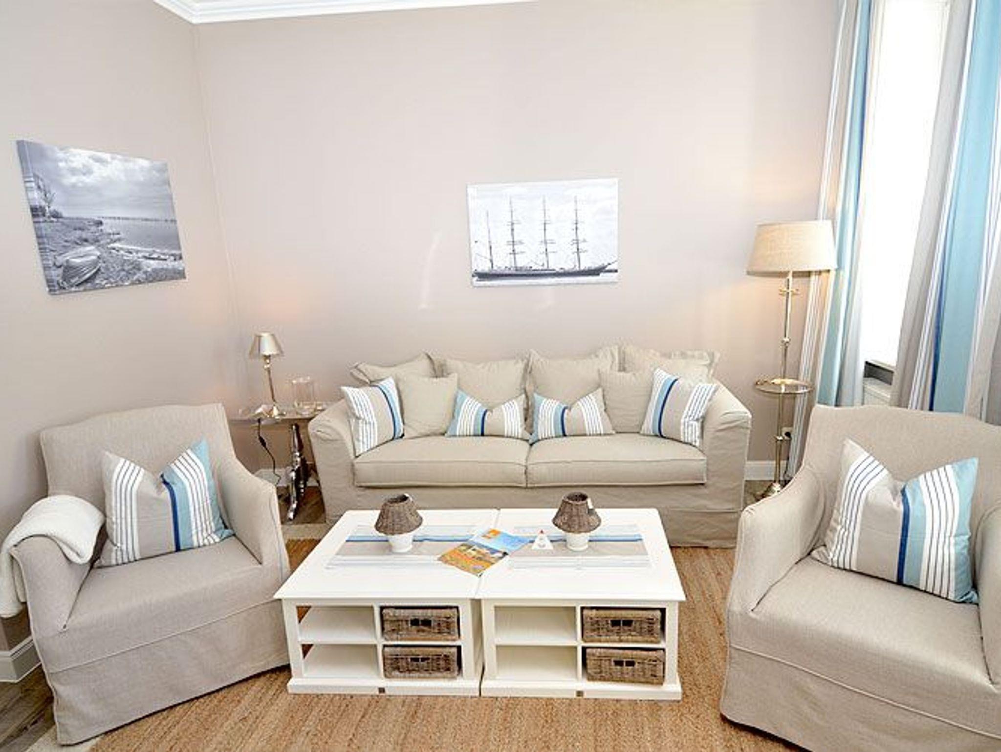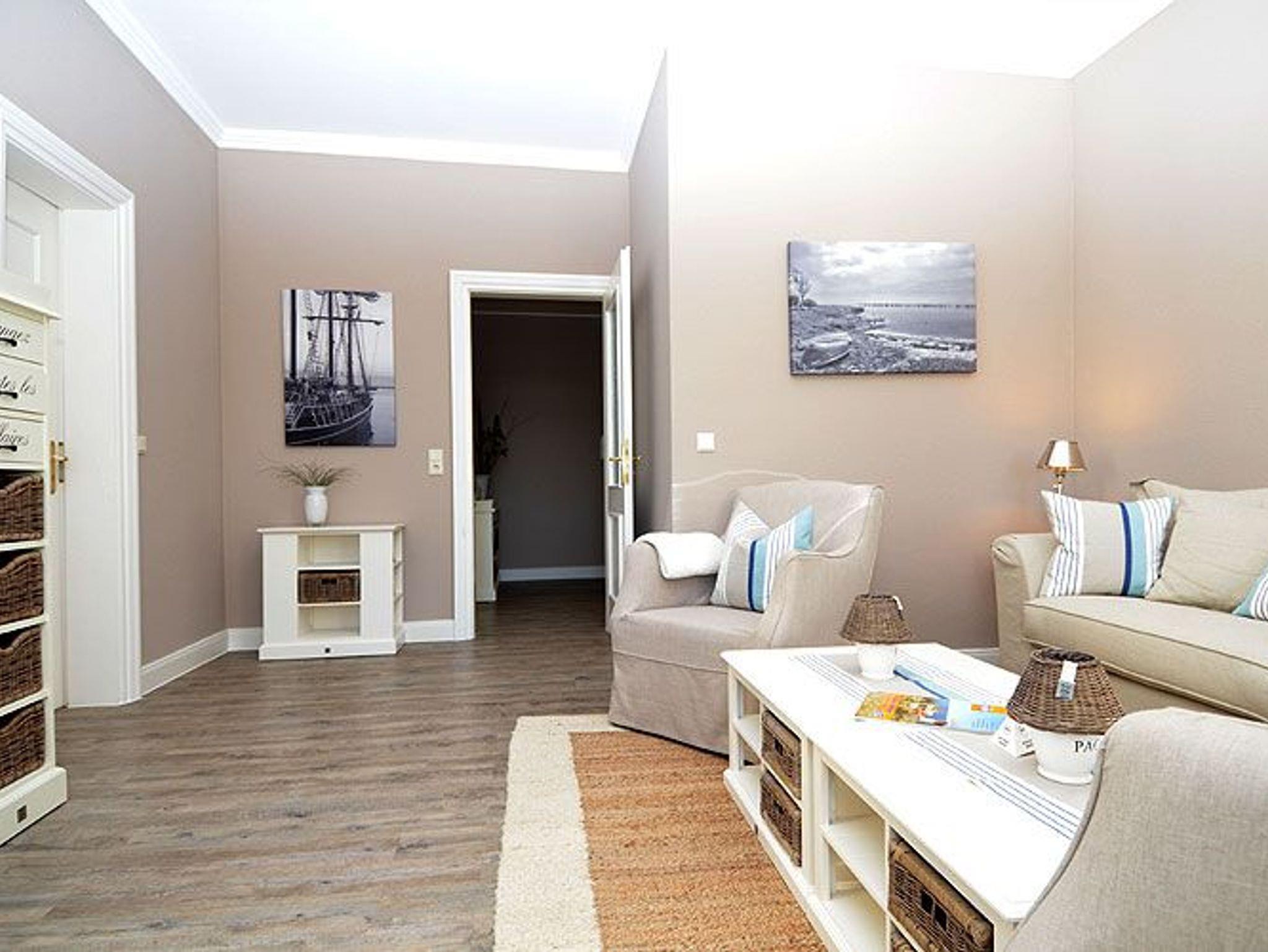 Dieses ca. 50 m² große und stilvoll eingerichtete 2-Raum-Appartement befindet sich im 1. Obergeschoss und hat zusätzlich einen 5 m² möblierten Balkon Richtung Westen, der vom Wohnzimmer aus zu betreten ist. Die wunderschönen Landhausmöbel, ausgesuchte Stoffe und die warmen Erdtöne schaffen mit den leicht maritimen Akzenten ein ganz einzigartiges Wohlfühlambiente.