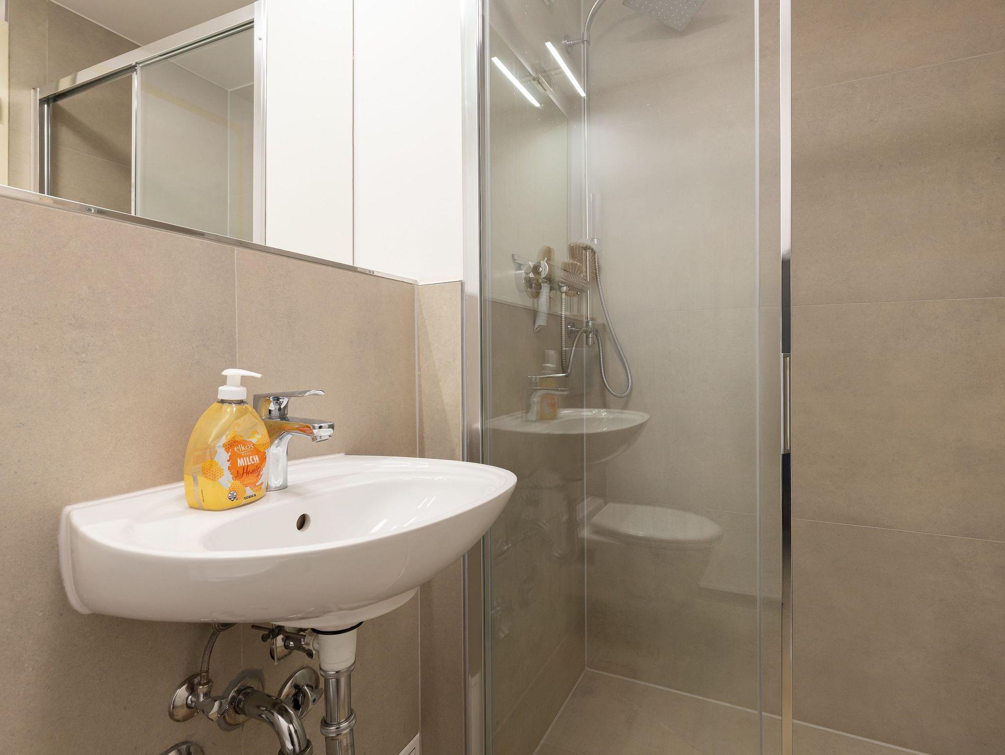 Ein separates Schlafzimmer sorgt für erholsame Nächte, während das moderne Badezimmer mit Dusche, Waschbecken und WC praktischen Komfort bietet. Der lichtdurchflutete Wohnbereich lädt zum Verweilen ein und öffnet sich zum Balkon, auf dem Sie frische Luft und ruhige Momente genießen können ideal für ein gemütliches Frühstück oder den Ausklang eines erlebnisreichen Tages.