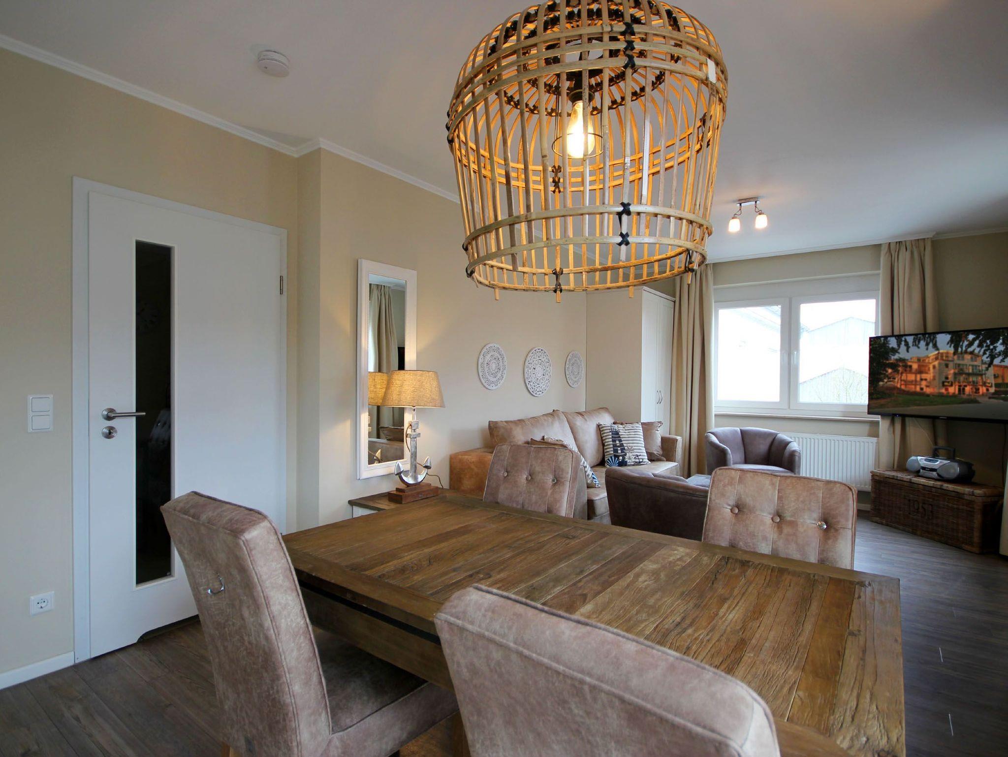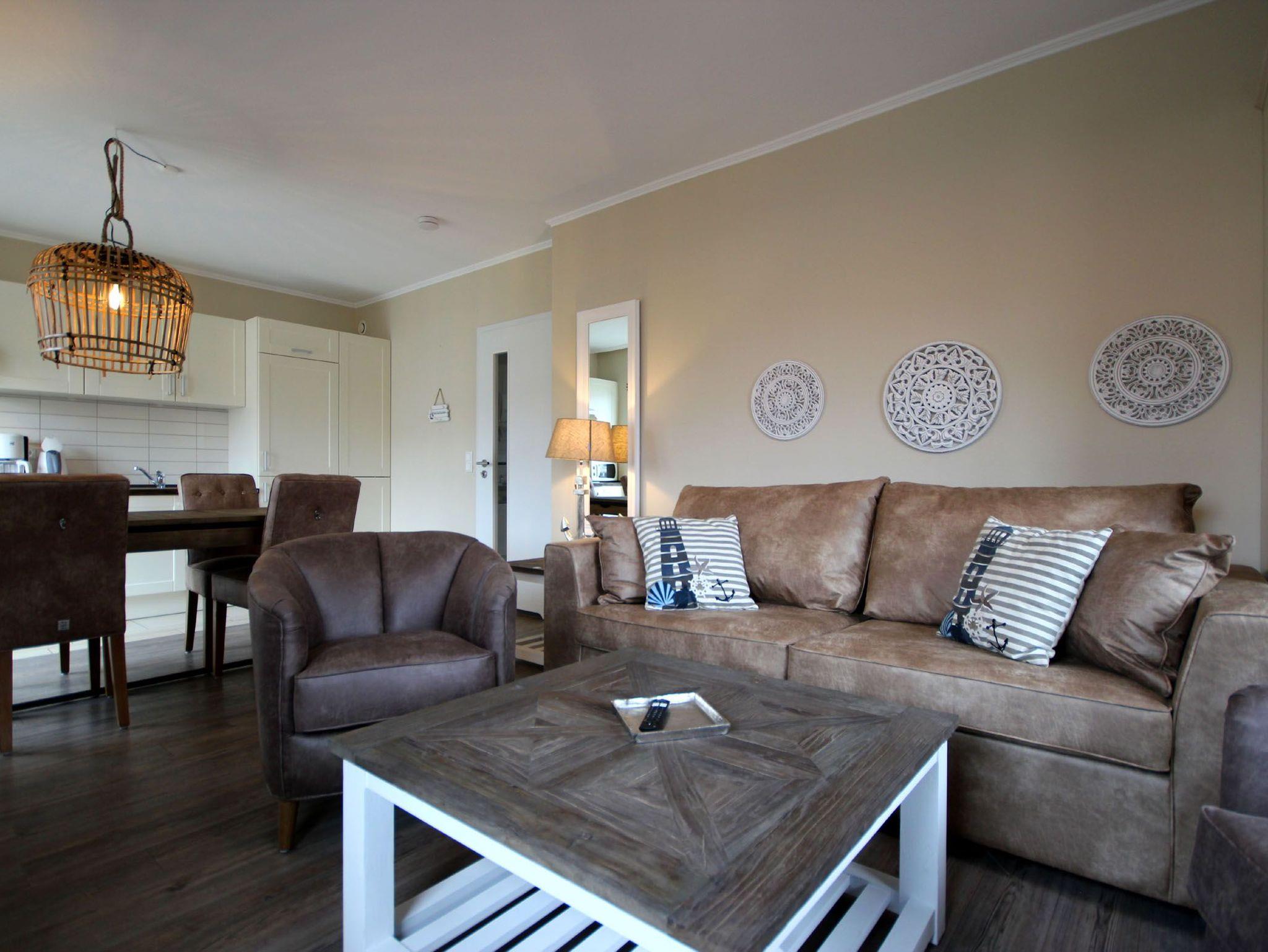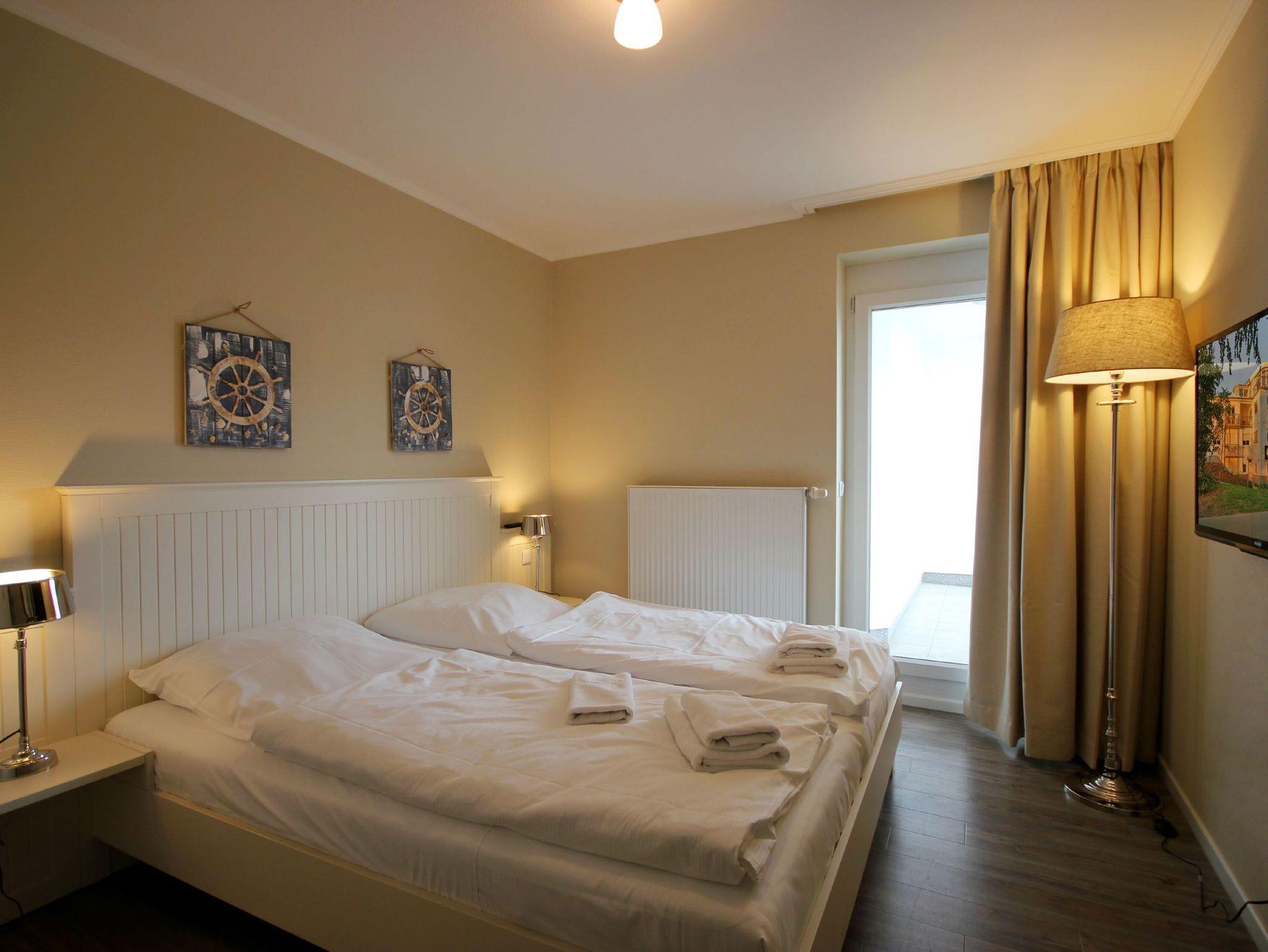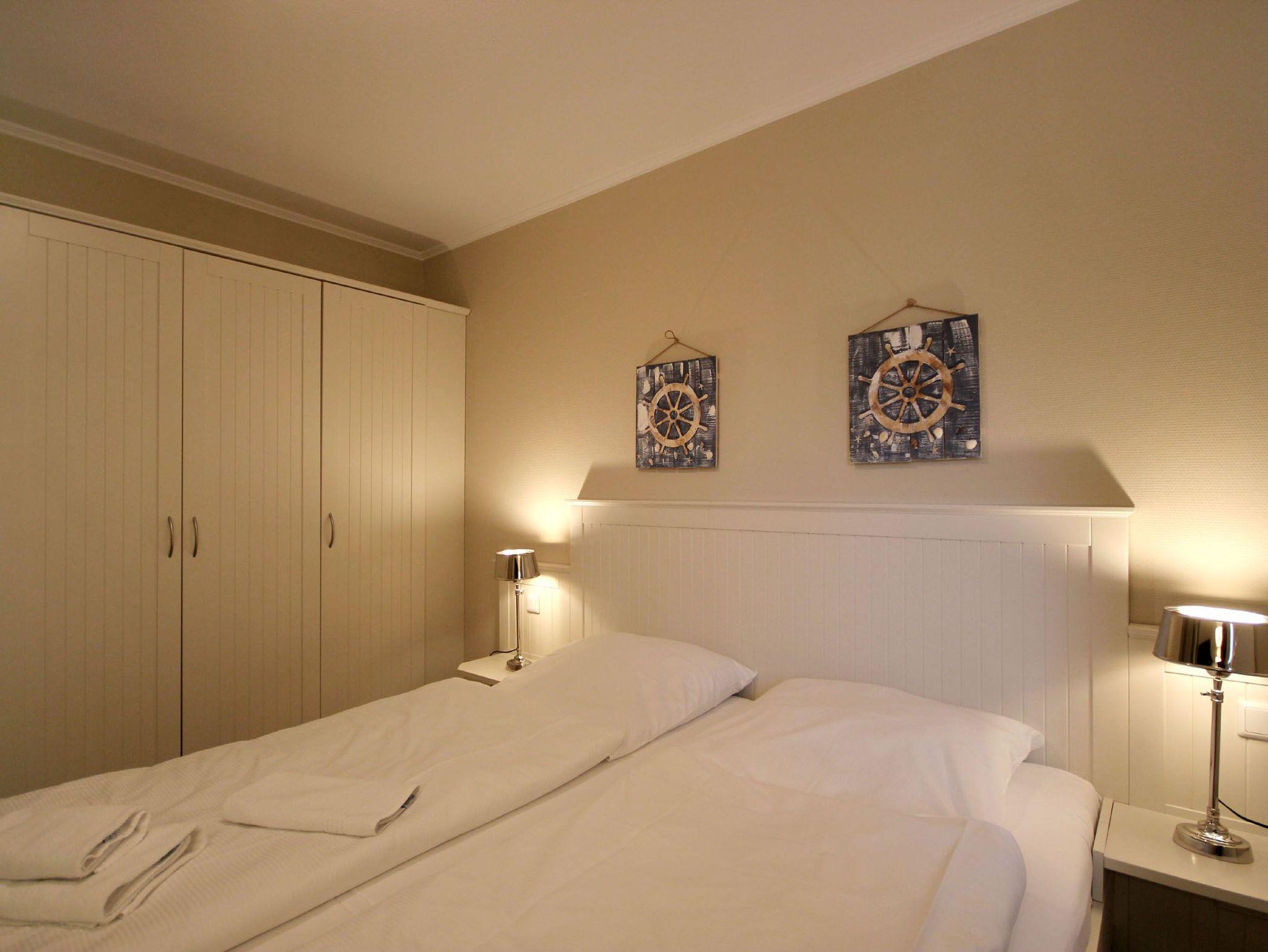 Ihre 2-Zimmer Ferienwohnung 65RB7 Nixe befindet sich im 1. Obergeschoss und ist ca. 47 qm groß. Die Nichtraucherwohnung verfügt über 2 Balkone in Richtung Osten und ist für bis zu 4 Personen gut geeignet. Neben dem gemütlichen Wohnbereich mit Zugang zum Balkon, gehört eine Sitzecke mit Schlaffunktion, ein Essbereich, Flachbild TV sowie WLAN. Im Schlafzimmer erwartet Sie ein Doppelbett, ein zusätzlicher TV, ein Kleiderschrank sowie ein weiterer Balkon. Zudem können Sie eine voll ausgestattete und im Wohnbereich integrierte Küchenzeile mit Geschirrspüler, Backofen, Wasserkocher, Toaster, Kaffeemaschine sowie umfangreiches Küchengeschirr nutzen. Das moderne Badezimmer erwartet Sie mit Waschtisch, WC und Dusche. Einen Parkplatz sowie eine Fahrradunterstellmöglichkeit befinden sich direkt am Objekt.