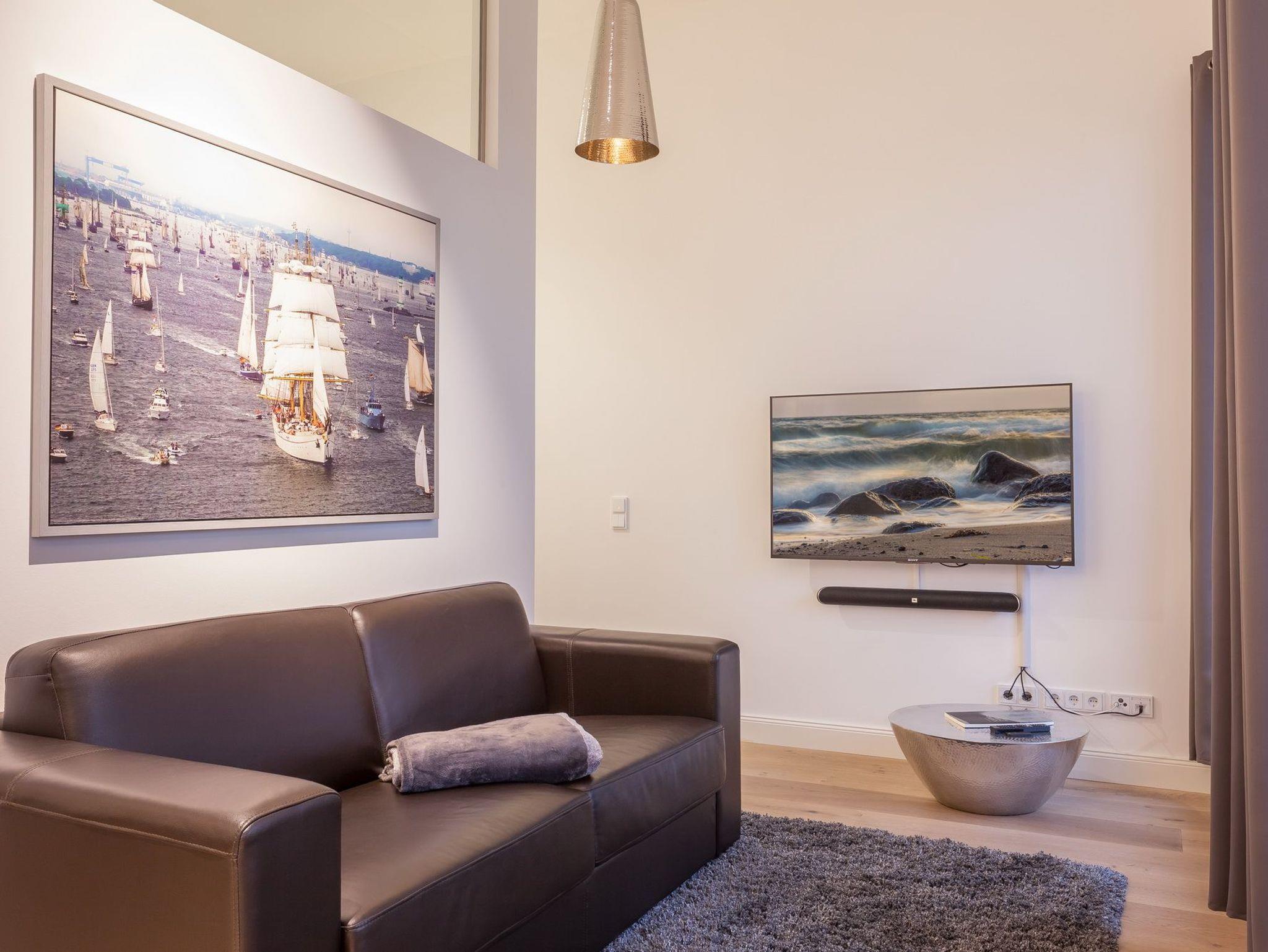 In der Ferienwohnung genießen Sie alle Vorzüge und Annehmlichkeiten eines exklusiven Feriendomizils, angefangen von flächendeckender Fußbodenheizung, einem eleganten Ledersofa, einem herrlich bequemen Lederpolsterbett (1,80 x 2,00 m) und hochwertigster TV- und Unterhaltungstechnik inkl. kostenfreiem W-LAN bis hin zur hervorragend ausgestatteten Markenküche und zum luxuriösen Duschbad. Auch ein Festnetztelefon steht Ihnen gegen gesonderte Gebührenerstattung zur Verfügung. Daneben sind es aber vor allem auch die ausgewählten Details, die die Liebe und Sorgfalt zeigen, mit der die Eigentümer das Ferienwohnung für Sie, liebe Gäste, eingerichtet haben. Angenehmes Licht, dezente Farben, stimmungsvolle Bilder, stilvolle Dekorationen. Kurzum: Wirklich ein Ort zum Wohlfühlen und Genießen!