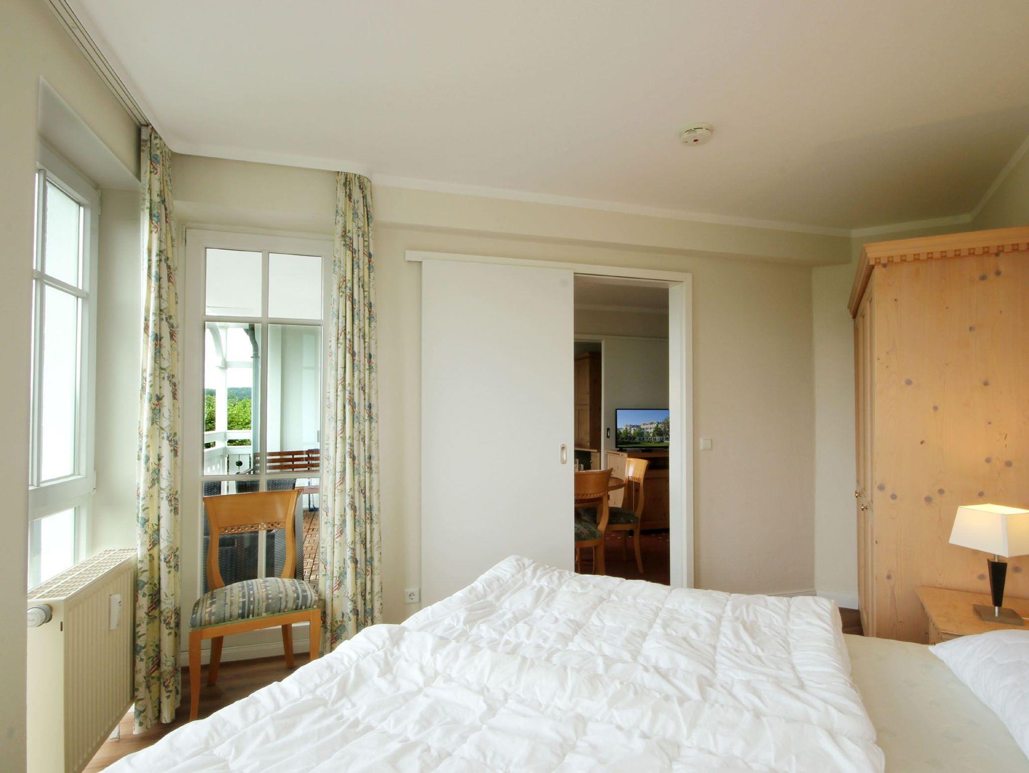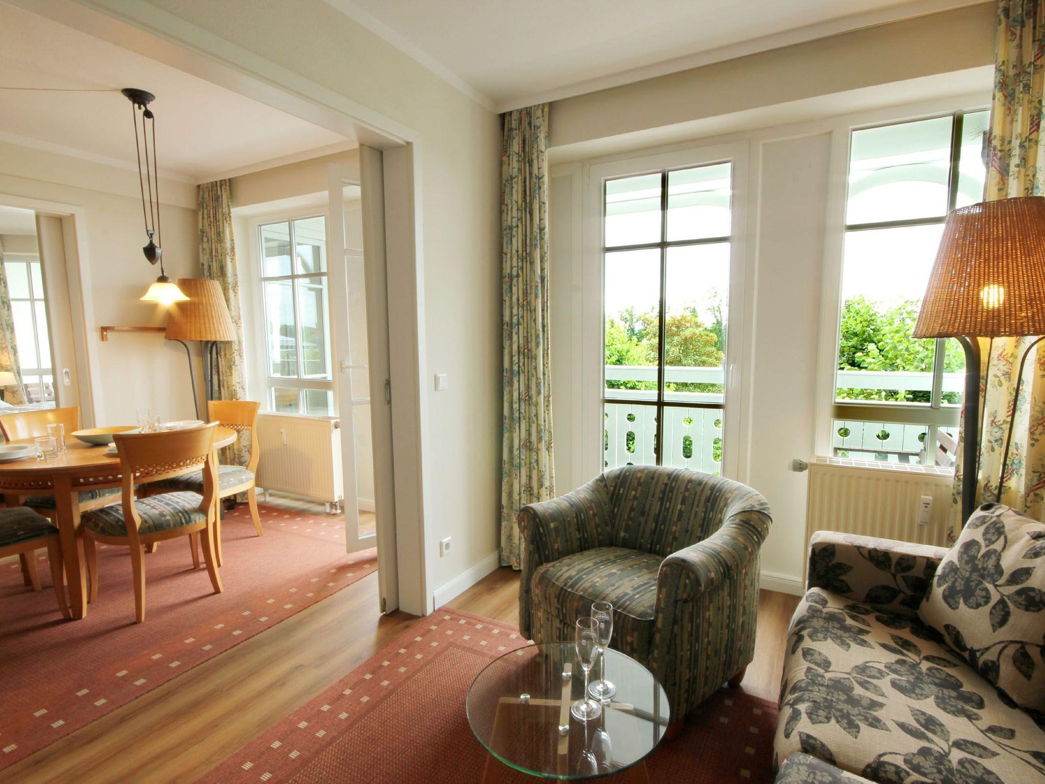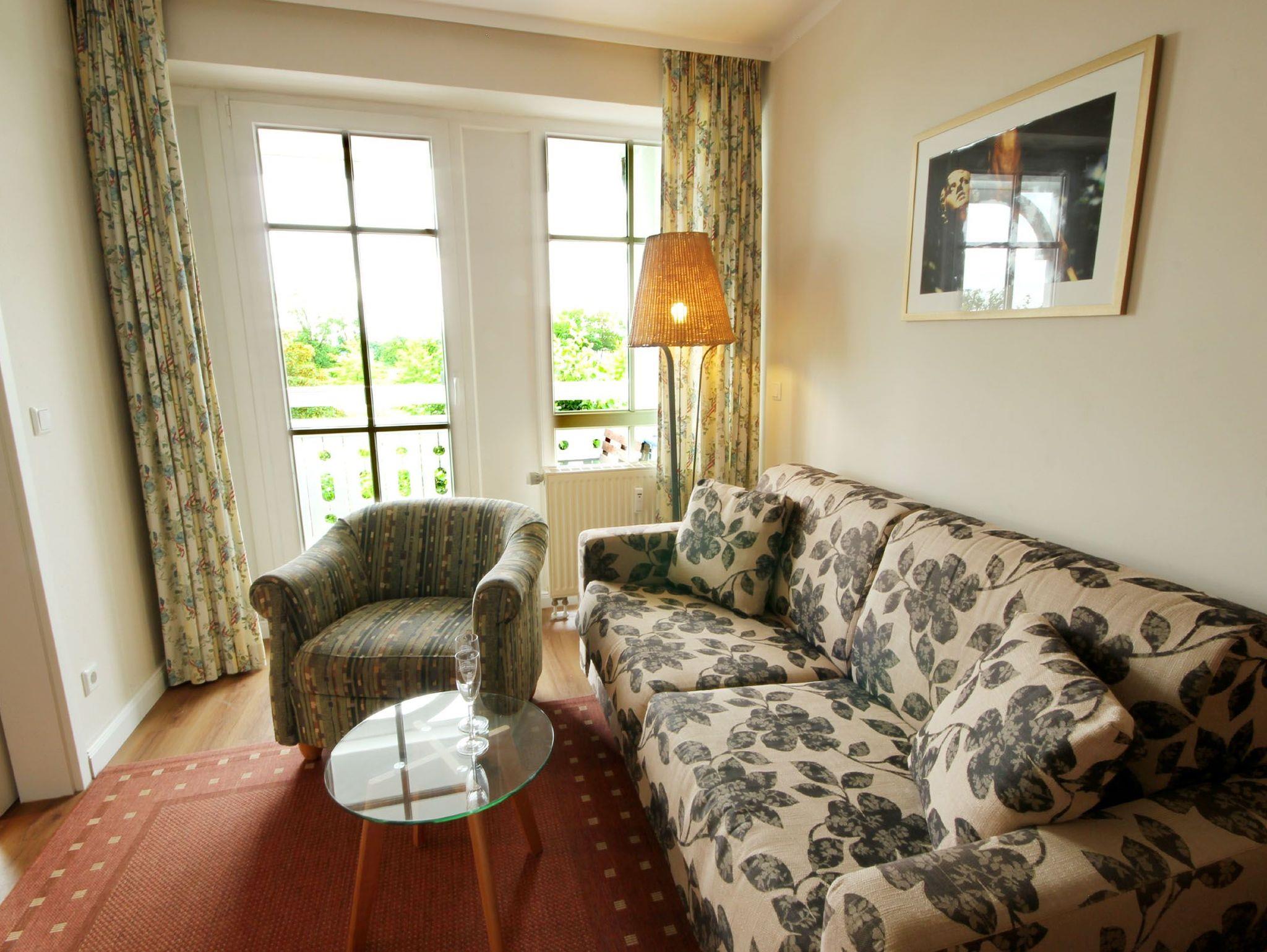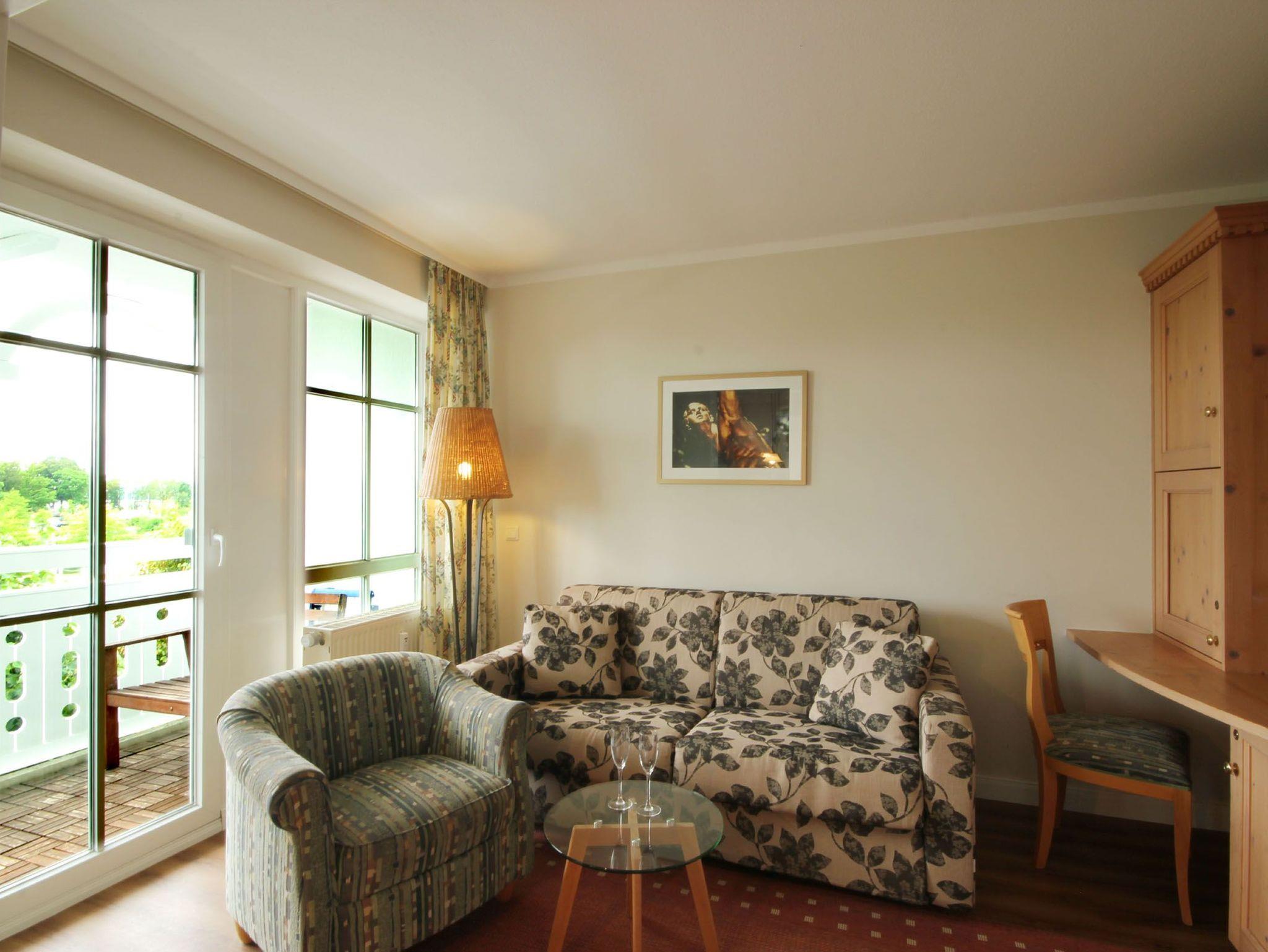 Im Wohnraum finden Sie neben dem gemütlichem Schlafsofa, welches Platz für die 3. u. 4. Person auch einen Schreibtisch sowie der direkte Zugang zum Balkon. Im separaten Schlafzimmer mit Doppelbett befindet sich der zweite Zugang zum anderen Balkon.