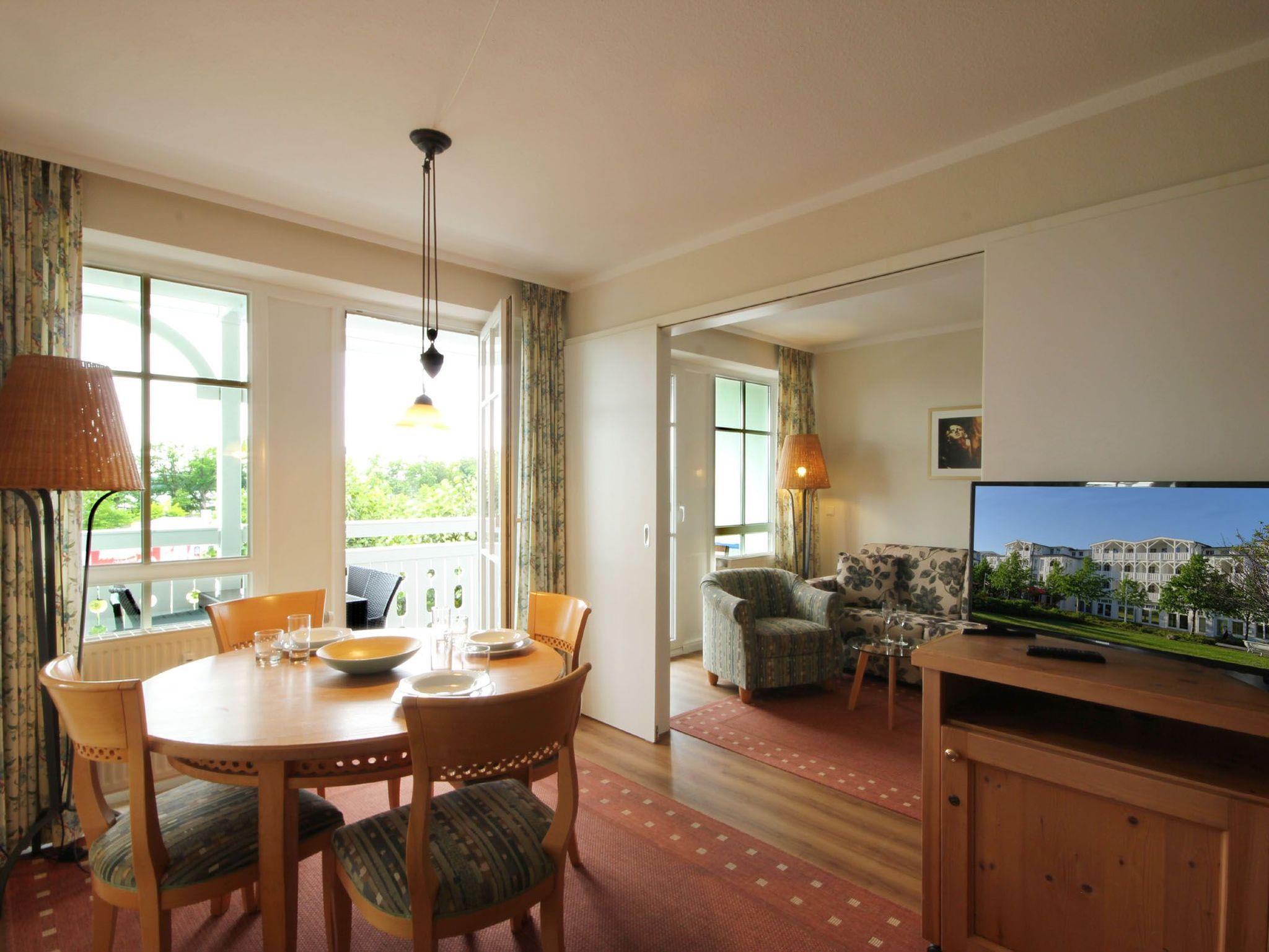 Ihre gemütliche 2-Zimmer Nichtraucher-Ferienwohnung 60RB654 befindet sich im Haus Mönchgut. Sie ist ca. 52 qm groß und befindet sich im 2. Obergeschoss. Bis zu 4 Personen können sich gleich über zwei Balkone in östlicher Richtung freuen.