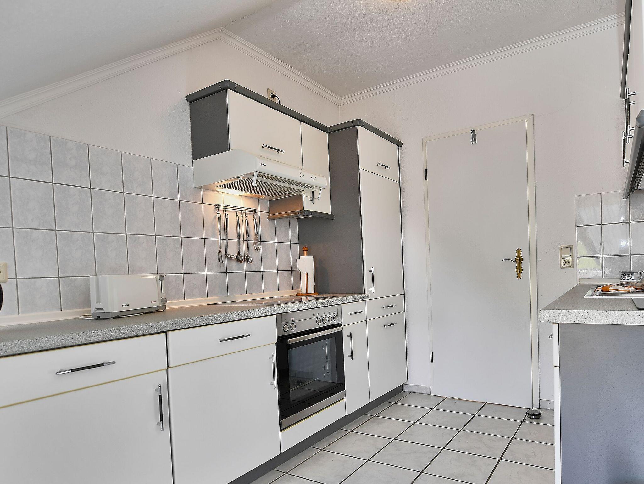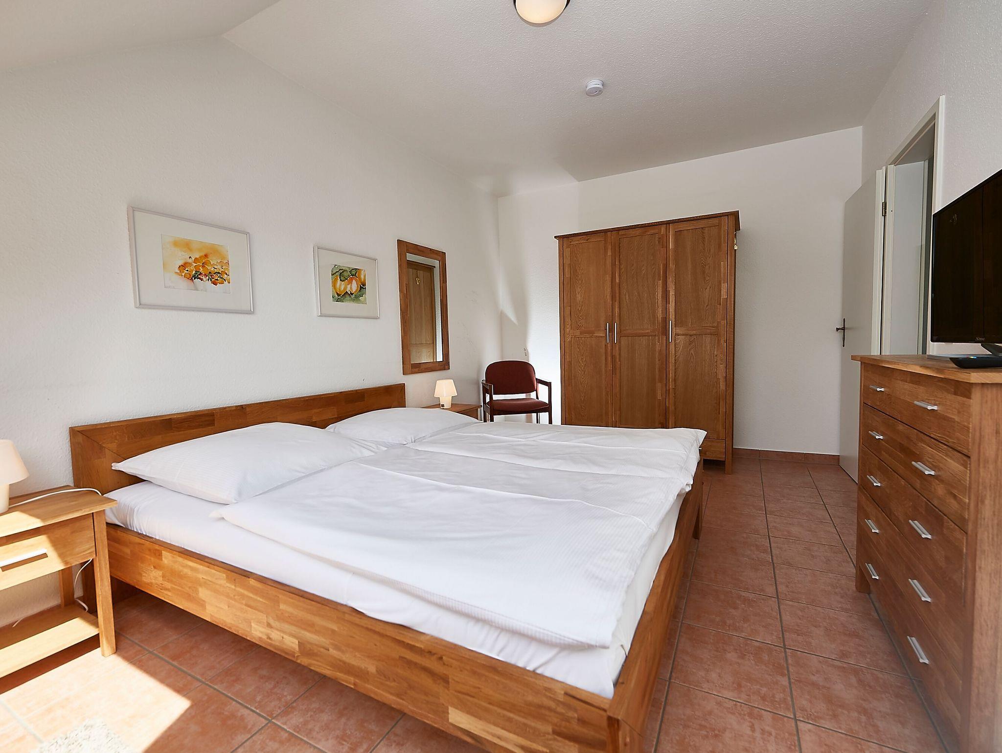 Die separate Küche ist mit einem Kühlschrank, einem 4-Platten-Ceranfeld, einer Spülmaschine, einem Backofen, Toaster, Wasserkocher, Kaffeemaschine und diversem Kleininventar gut ausgestattet. Das geräumige Bad mit Badewanne und kombinierter Dusche lässt viel Bewegungsfreiheit zu. Im Schlafzimmer mit Doppelbett und großem Kleiderschrank haben Sie ausreichend Stauraum für Ihre Garderobe sowie einen weiteren Fernseher.