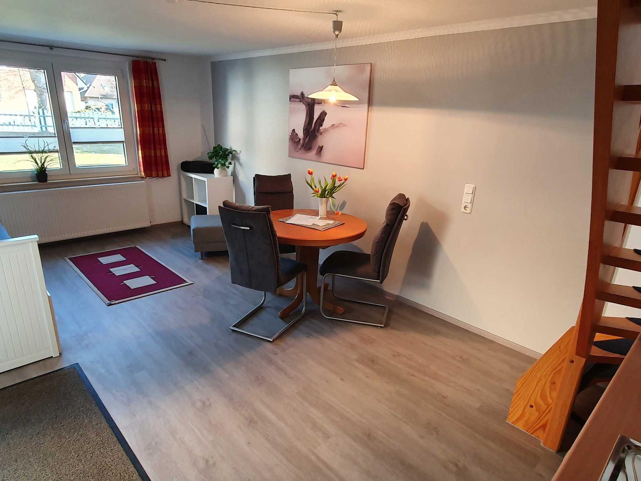 Unsere Ferienwohnung 3 (2022 komplett neu renoviert und eingerichtet) bietet ca. 50 qm Wohnfläche, hat Platz für maximal 2 Erwachsene und 1 Kind bis 16 J. und wurde modern und komfortabel eingerichtet. Ein WLAN - Anschluss steht zur Verfügung. Über einen separaten Eingang gelangt man in den Wohnraum. Hier befinden sich ein Esstisch mit Stühlen, die Küchenzeile mit einem Herd, Wasserkocher, Kaffeemaschine, Toaster und Kühlschrank sowie eine Doppelliege (Unterteil ausziehbar).