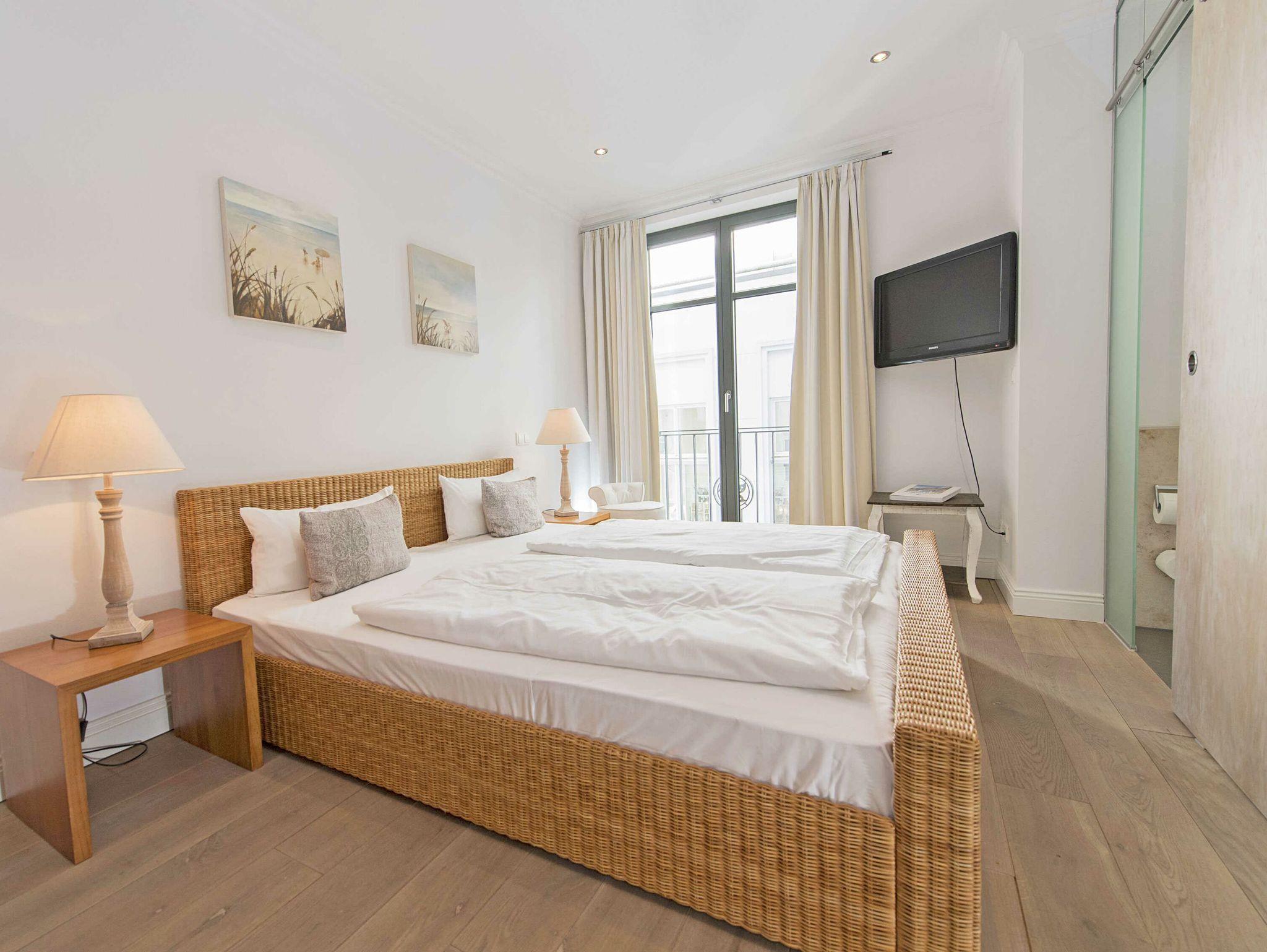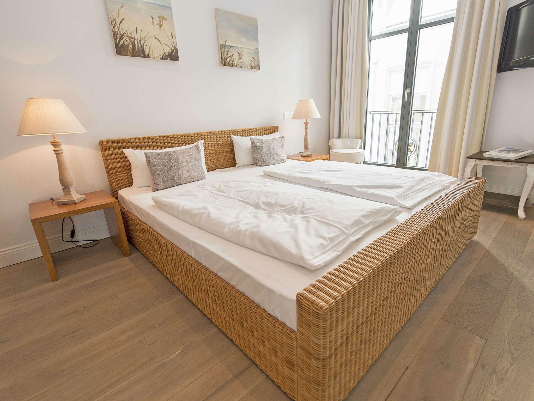 Das 3-Raum-Appartement Findling liegt von der Wilhelmstraße gesehen im 1. Obergeschoss, jedoch ebenerdig zur rückseitigen Grünanlage mit dem beheizten Außenpool (saisonal in Betrieb). Das Appartement wurde vom Eigentümer ausschließlich mit hochwertigen MARKTEX Möbeln ausgestattet. Bei der Einrichtung treffen modern und rustikal aufeinander ein besonderes Wohlfühlambiente ist damit garantiert. Maritime Dekorationselemente runden die exklusive Ausstattung dieses Appartements ab.