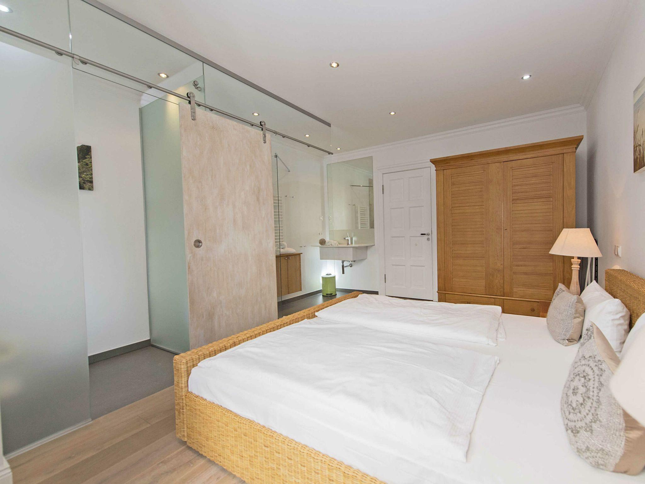 Eines der beiden Schlafzimmer ist zur ruhigen Grünanlage hin gelegen und bietet einen direkten Zugang zur großen Sonnenterasse. Beide Schlafzimmer verfügen über je ein komfortables Doppelbett und ein Ensuite-Badezimmer mit ebenerdigem Duscheinstieg sowie über einen weiteren Flachbild-TV.