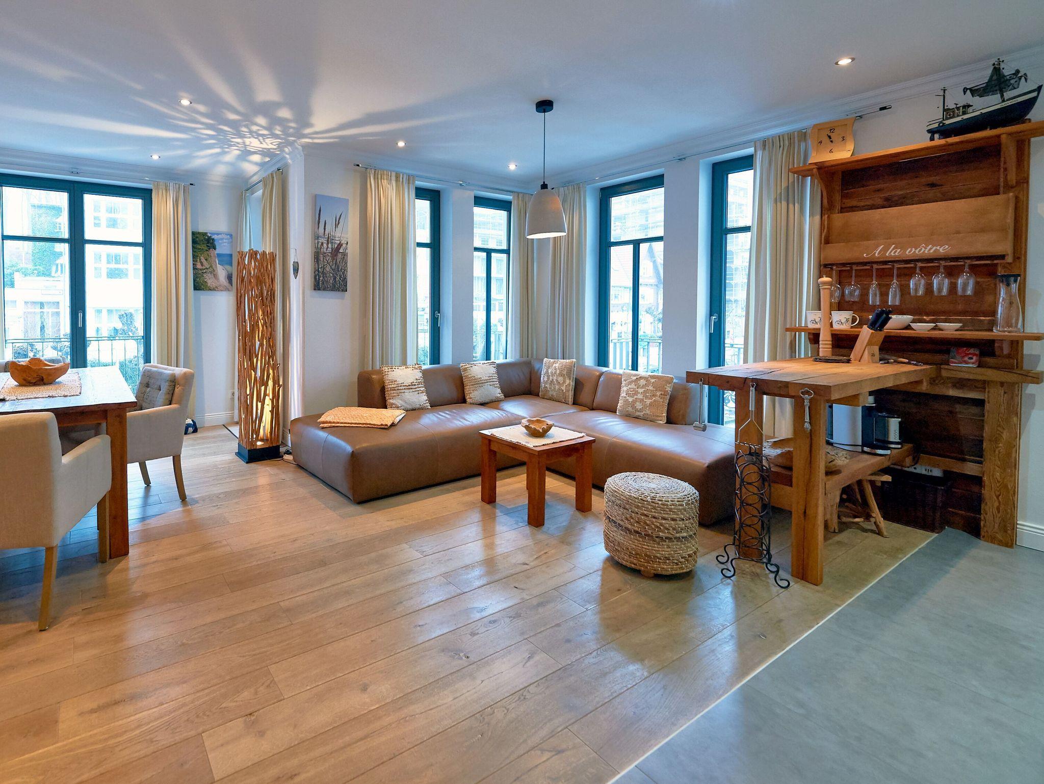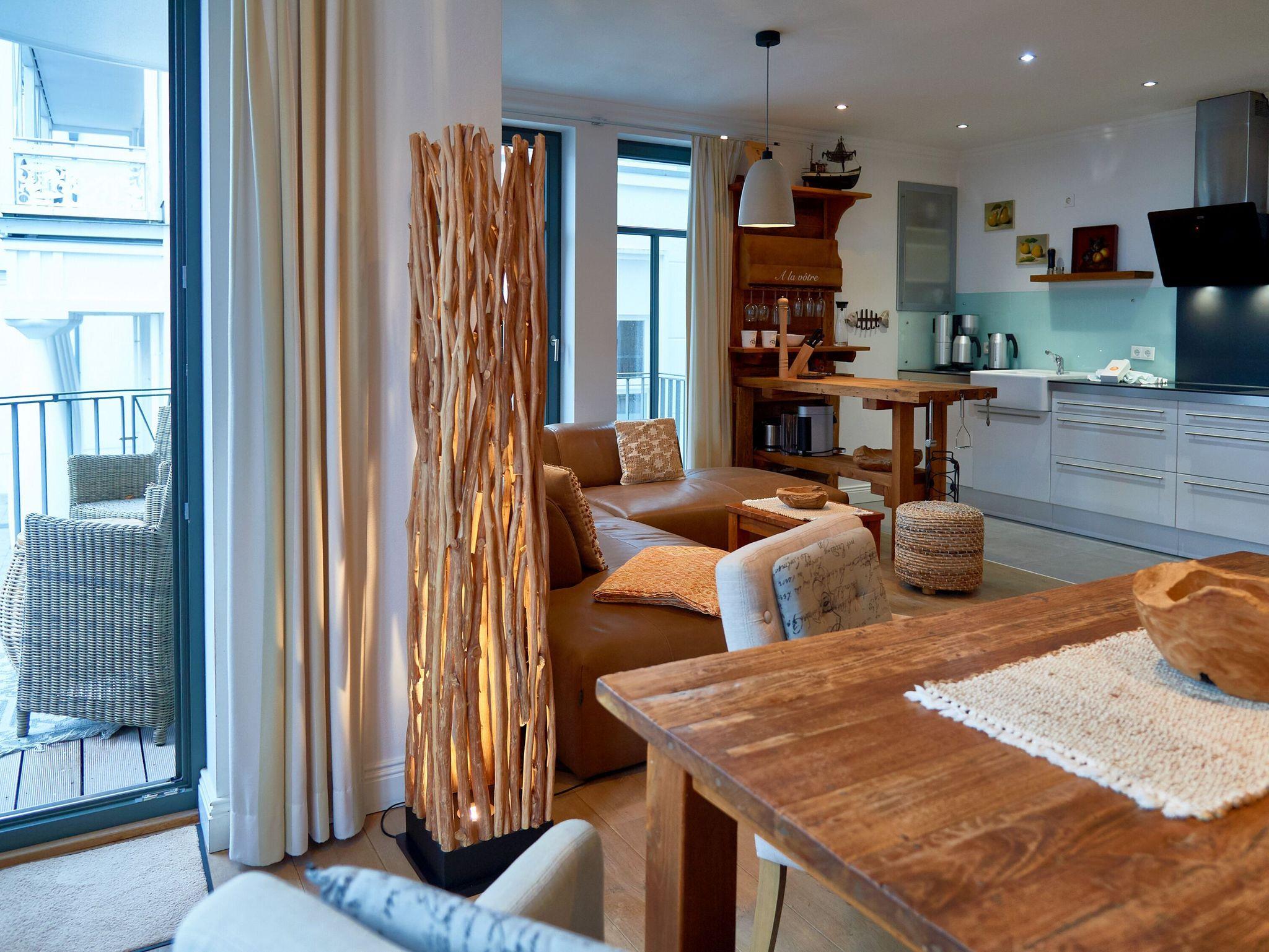 Das 3-Raum-Appartement „Findling“ liegt von der Wilhelmstraße gesehen im 1. Obergeschoss, jedoch ebenerdig zur rückseitigen Grünanlage mit dem beheizten Außenpool (saisonal in Betrieb). Das Appartement wurde vom Eigentümer ausschließlich mit hochwertigen MARKTEX Möbeln ausgestattet. Bei der Einrichtung treffen modern und rustikal aufeinander ? ein besonderes Wohlfühlambiente ist damit garantiert. Maritime Dekorationselemente runden die exklusive Ausstattung dieses Appartements ab.