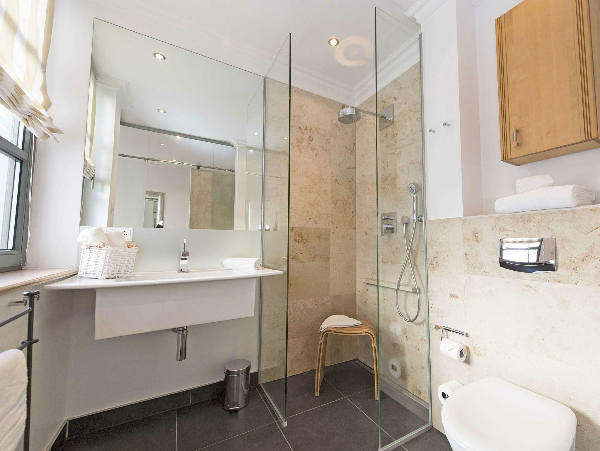 Das großzügige Appartement besitzt einen sehr gemütlichen West-Balkon mit Blick auf die Wilhelmstrasse sowie eine großzügige und sonnige Gartenterrasse. Genießen Sie den Frühling mit einem ausgedehnten Frühstück auf der eigenen Sonnenterasse oder nehmen Sie im villeneigenen Pool ein erfrischendes Bad an warmen Sommertagen. Genießen Sie die ersten Herbststürme am prasselnden Kaminfeuer oder einen herrlich verschneiten Jahreswechsel mit Feuerwerk über dem Meer.