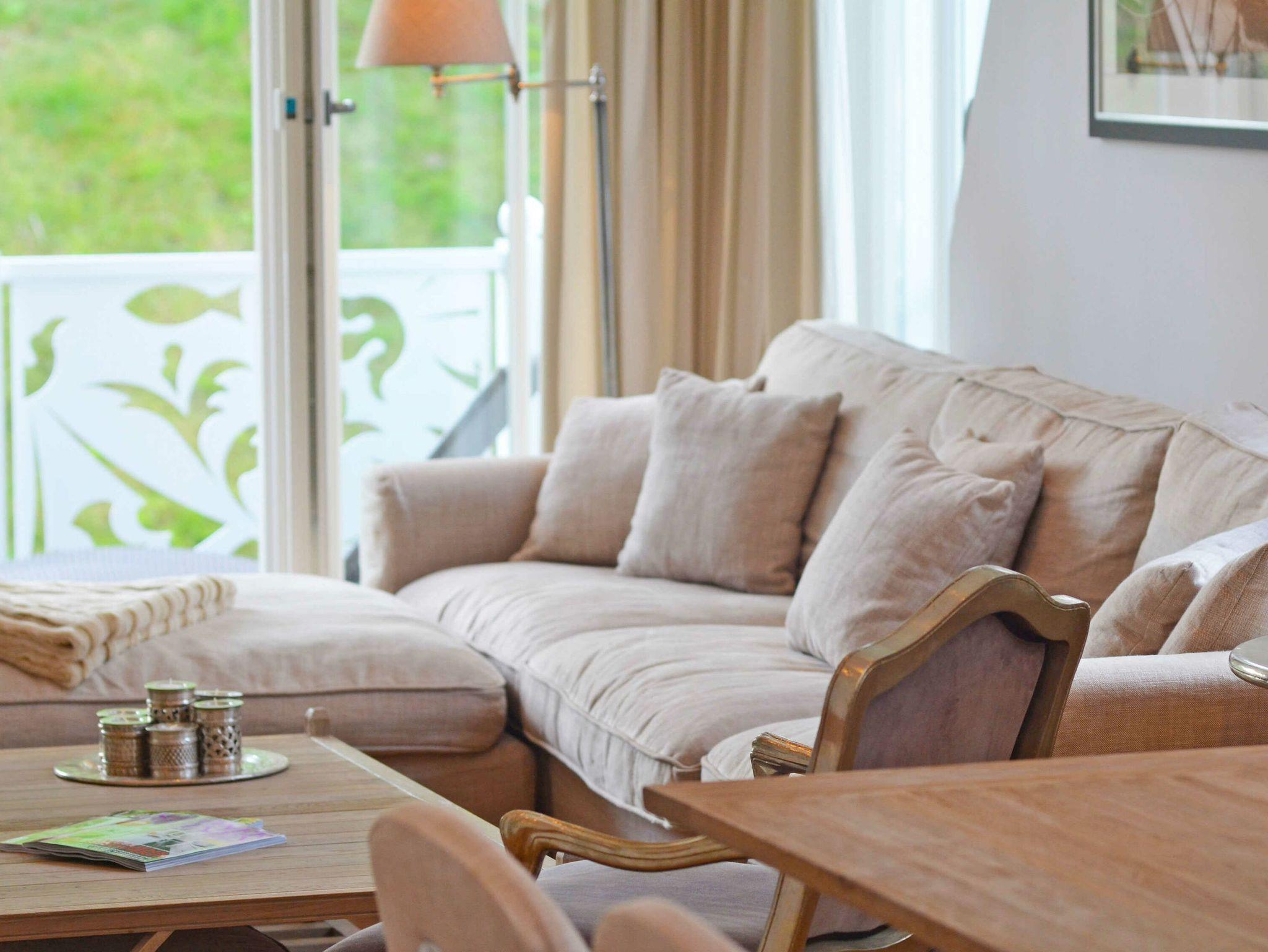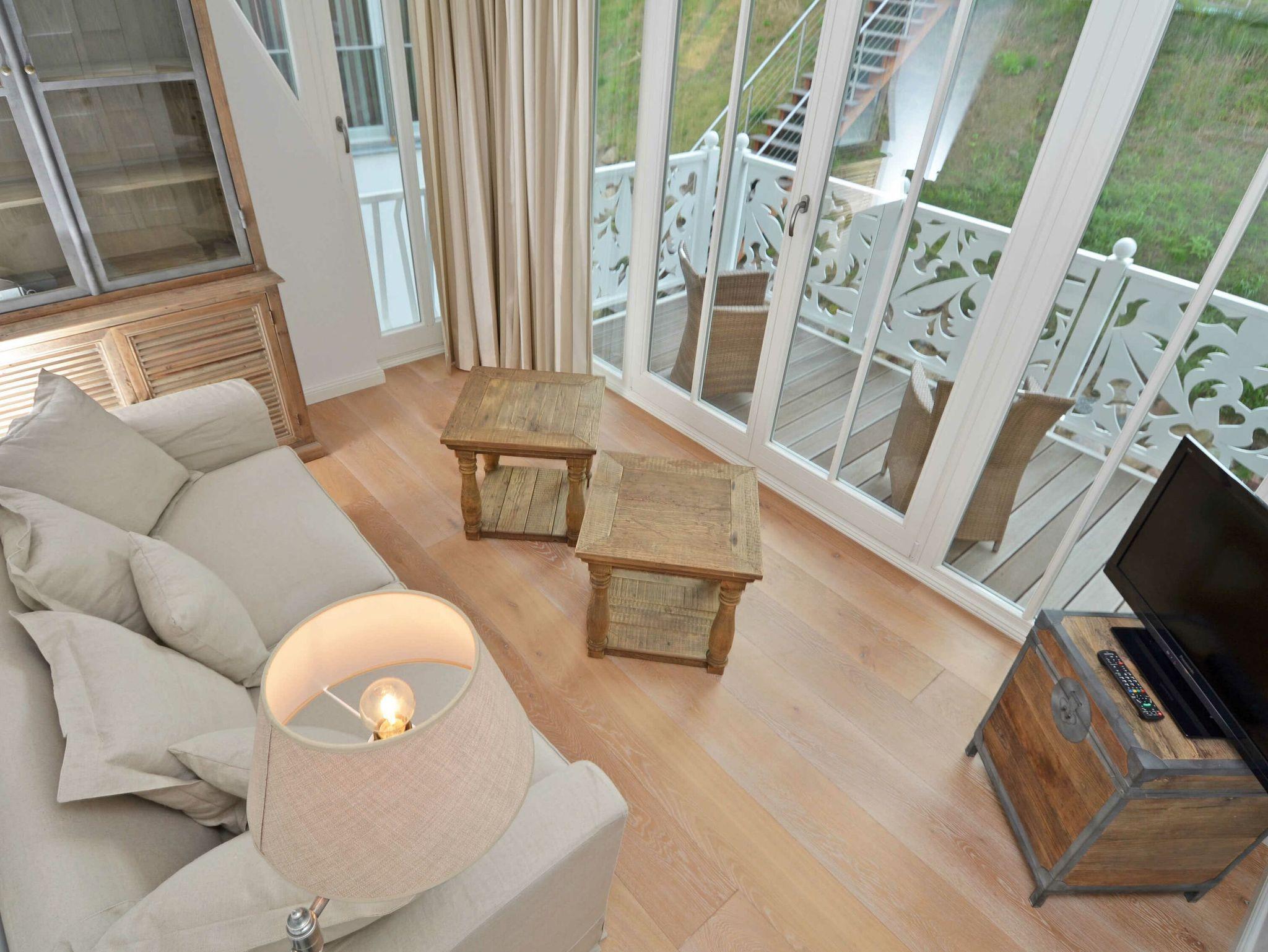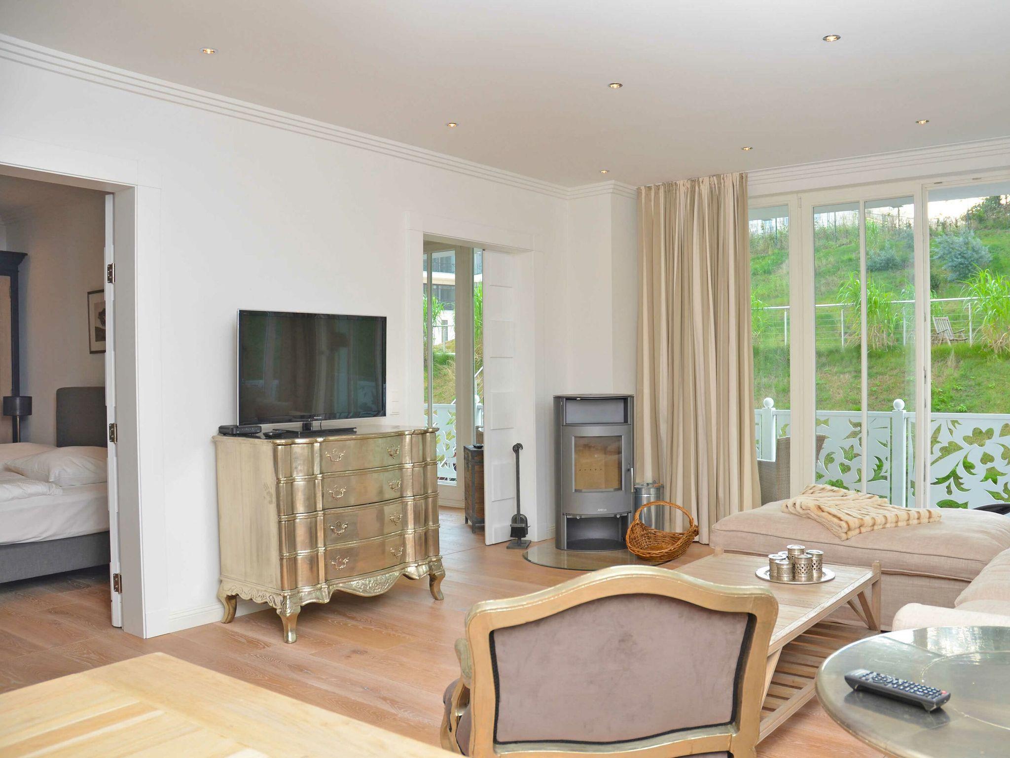 Dieses wundervolle 4-Raum-Appartement ist im 2. Obergeschoss der Villa Johanna gelegen und ganz bequem mit dem Aufzug zu erreichen. Auf rund 110 m² luxuriöser Wohnfläche erwartet Sie eine gelungene Kombination aus modernen und klassischen Möbeln, warmen Naturtönen und stilvollen Akzenten, so dass ein ganz einzigartiges Wohlfühlambiente entsteht. Gleich zwei je 15 m² große Balkone - einer zur Ostseite mit Blick zum Wald und zum Pool und der andere zur Süd-/Westseite - laden in der warmen Jahreszeit mit hochwertigen Terrassenmöbeln zum Relaxen und Genießen ein.