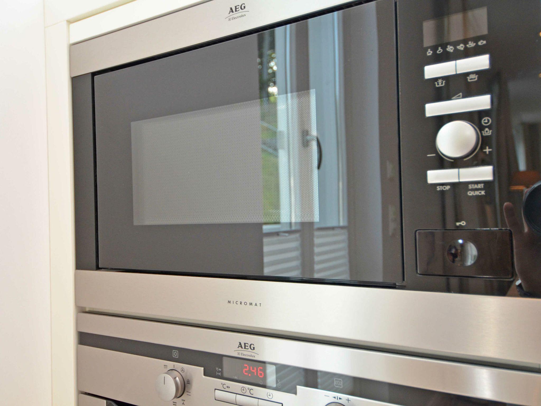 Der in den Wohnraum harmonisch integrierte Kochbereich überzeugt mit hochwertigen Geräten. Der freistehende Kochblock mit Induktionsherd, Backofen, Mikrowelle, Geschirrspüler, Kühlschrank, Kaffeemaschine, Senseo-Kaffeepadmaschine für Kaffeespezialitäten, Toaster, Wasserkocher, Eierkocher und diversem Kleininventar lässt das Herz jeden Hobbykochs höher schlagen.