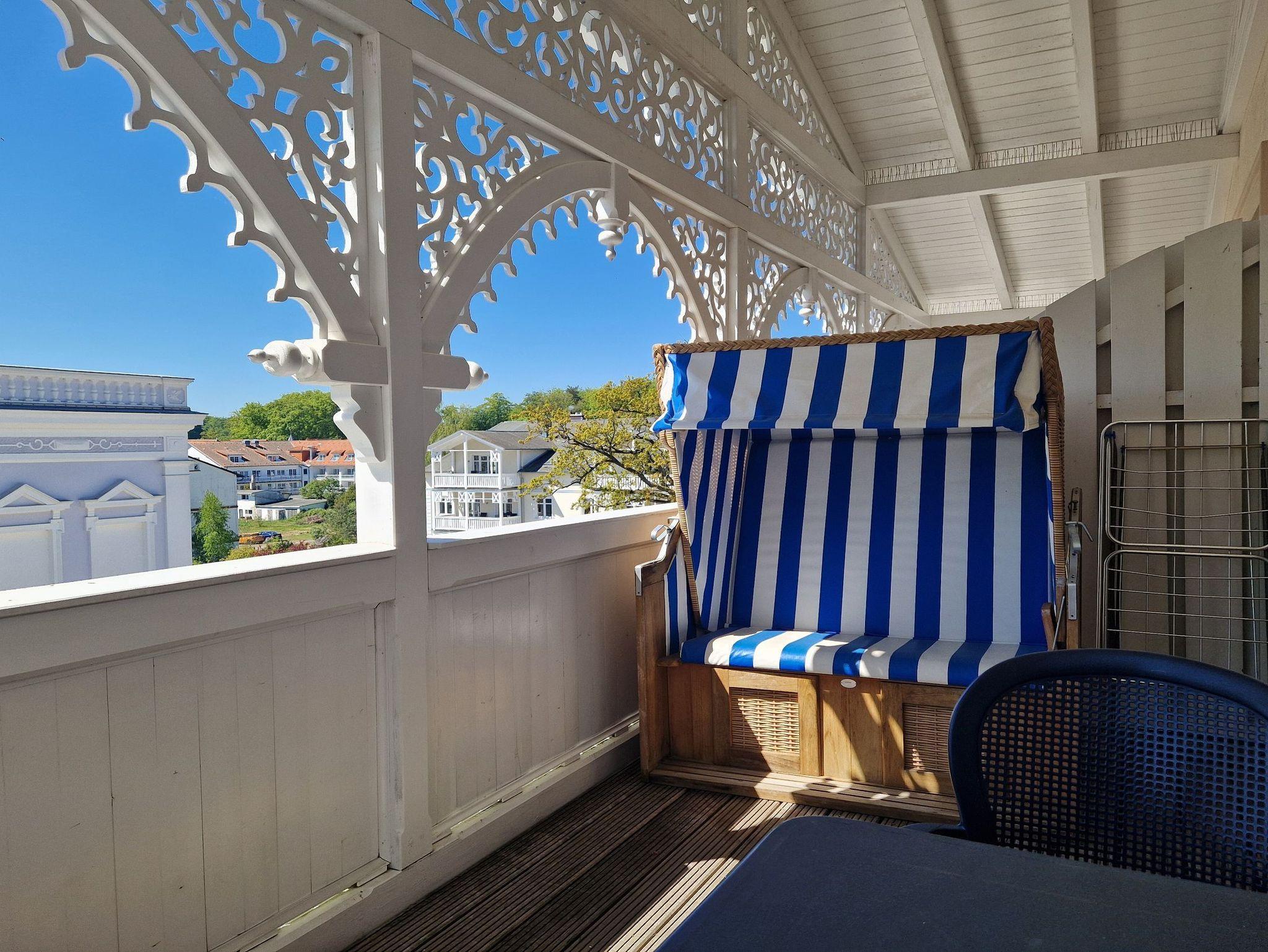 Im Wohnzimmer mit Zugang zum großen Balkon mit eigenem Strandkorb befindet sich eine gemütliche Couch und ein Flachbild TV. Das kleine aber feine Schlafzimmer ist mit einem Doppelbett eingerichtet.