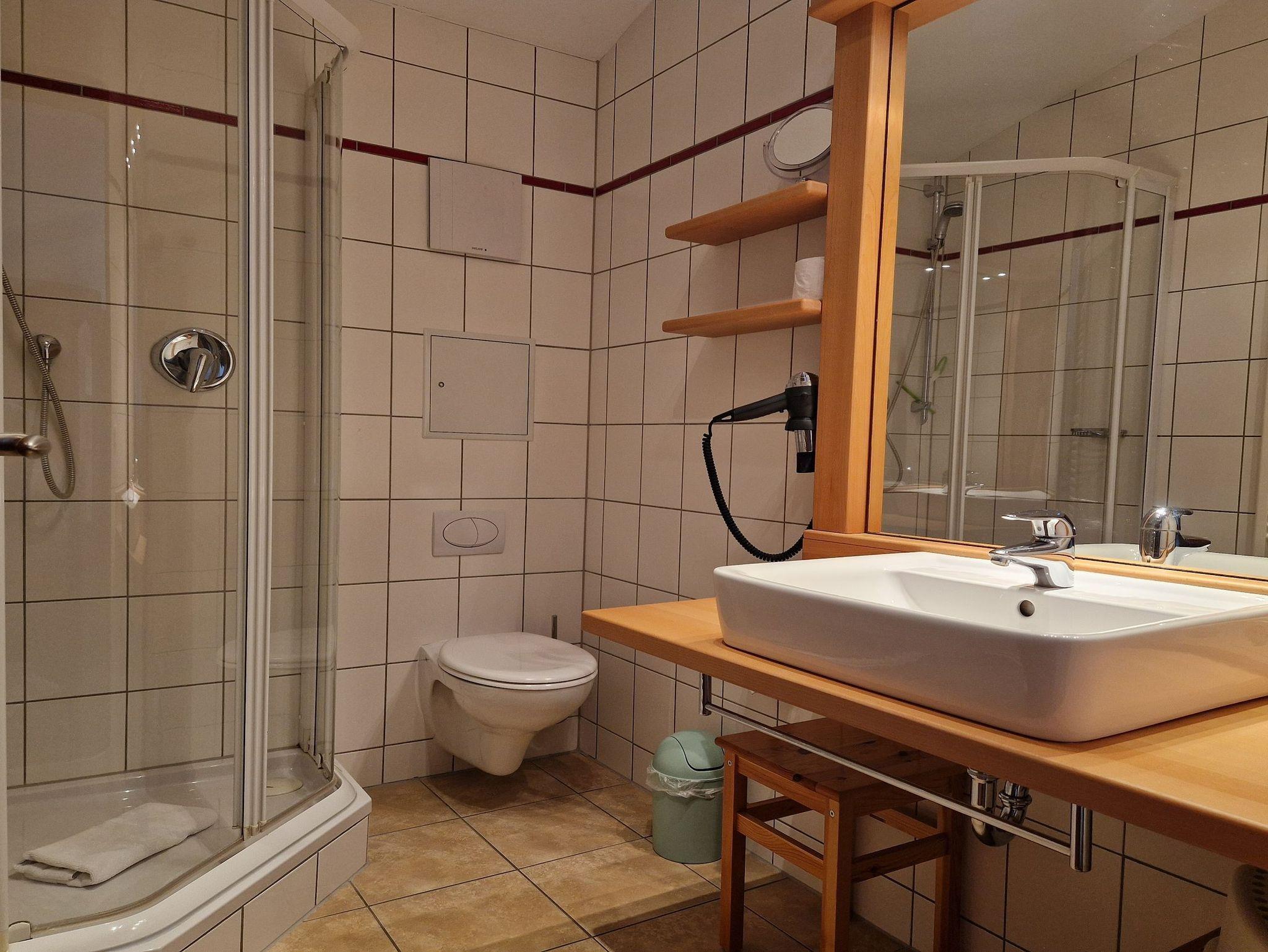Das moderne Bad verfügt über eine Dusche und WC.
