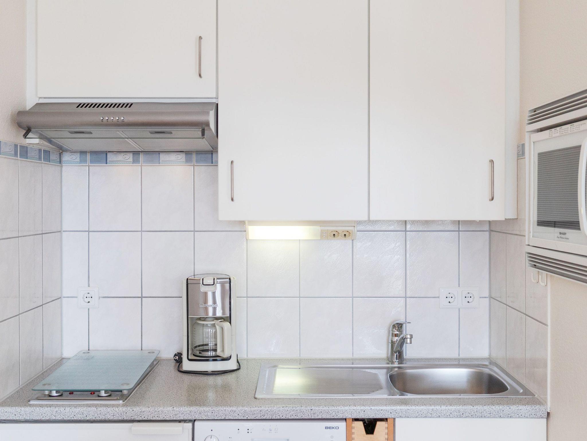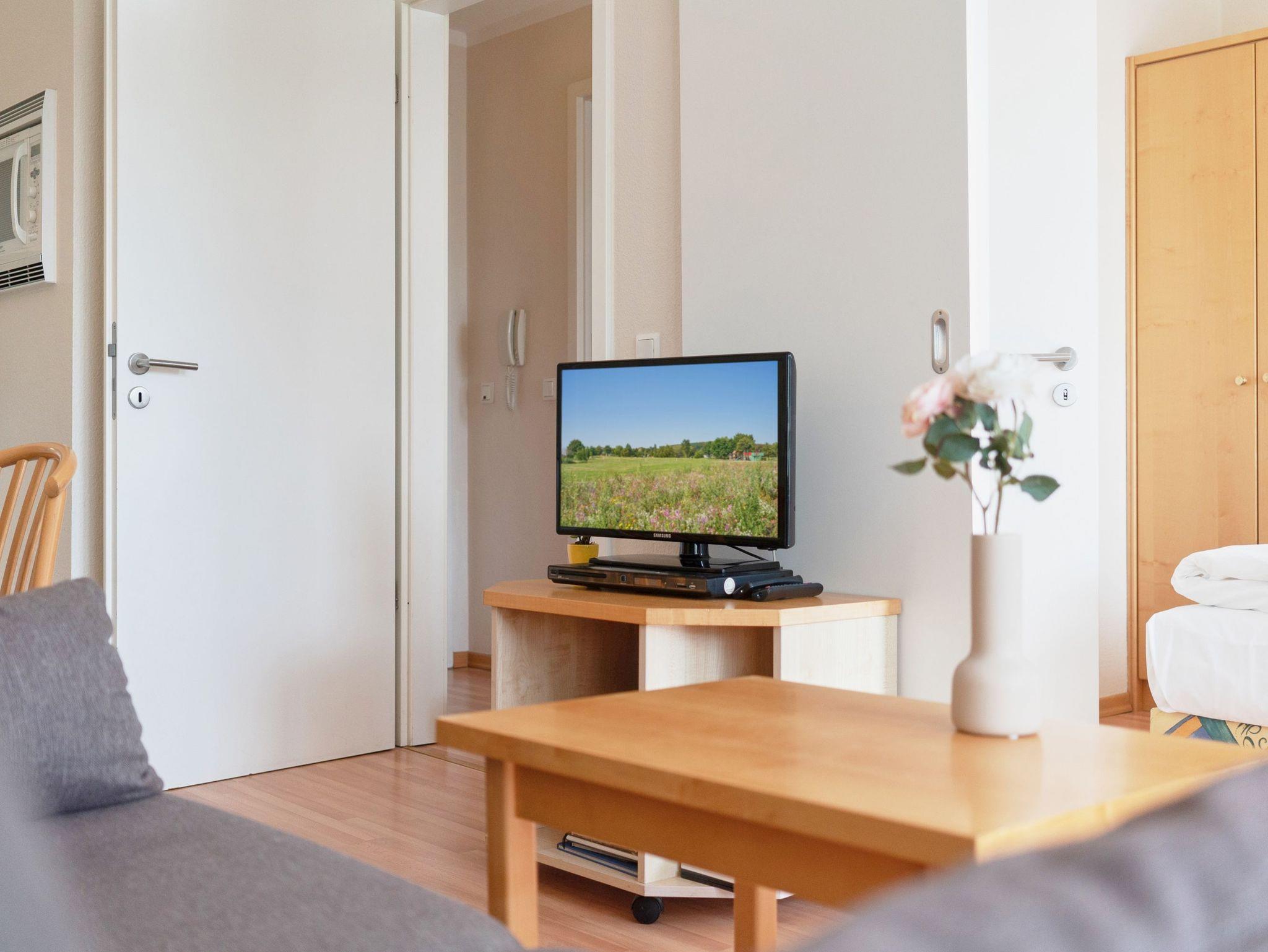 Die Ferienwohnung verfügt über kostenfreies WLAN und die Erstausstattung an Bettwäsche ist inklusive. Das Schlafzimmer mit Verdunklung verfügt über ein Doppelbett, im Wohnzimmer befindet sich zusätzlich eine Doppelschlafcouch. Darüber hinaus verfügt die Ferienwohnung über ein Bad mit Dusche/WC, Föhn sowie einem Kosmetikspiegel. Die voll ausgestattete, offene Küche mit Mikrowelle inklusive Heißluft und Grillfunktion, Spülmaschine, Kaffeemaschine und Toaster lässt keine Wünsche offen. Ein Fernseher inkl. 3 Sky-Sender und ein DVD Player rundet die hochwertige Einrichtung ab. Nach einem erlebnisreichen Urlaubstag können Sie auf dem Balkon in Südwestlage Platz nehmen. Der Ausblick und die Sitzgruppe sorgen hier für ein wunderbares Urlaubsgefühl. Im Nichtraucher-Apartment sind keine Haustiere gestattet.