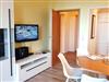Küchenzeile ausgestattet mit Spülmaschine, Mikrowelle, Backofen, Toaster, Cerankochfeld, Geschirrspüler, Kaffeemaschine und Wasserkocher, ein Schlafraum mit Doppelbett (180x200cm) , ein kleinerer Schlafraum mit Doppelbett (160x200cm), Flatscreen-TV , Tageslichtbad mit Dusche, WC, Schminkspiegel, Föhn .