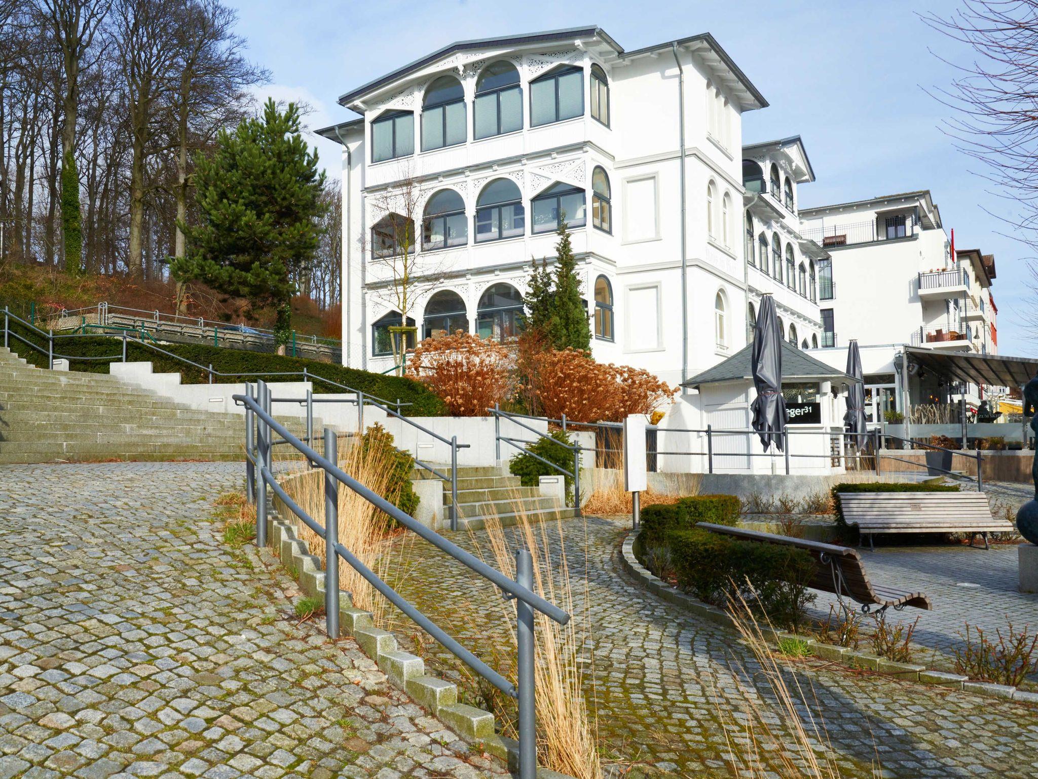 direkt an der Prachtstrasse von Sellin (Wilhelmstrasse) und direkt am Kurpark „Friedensberg“ (Trimm-dich-Pfad für Körper, Geist und Seele)!