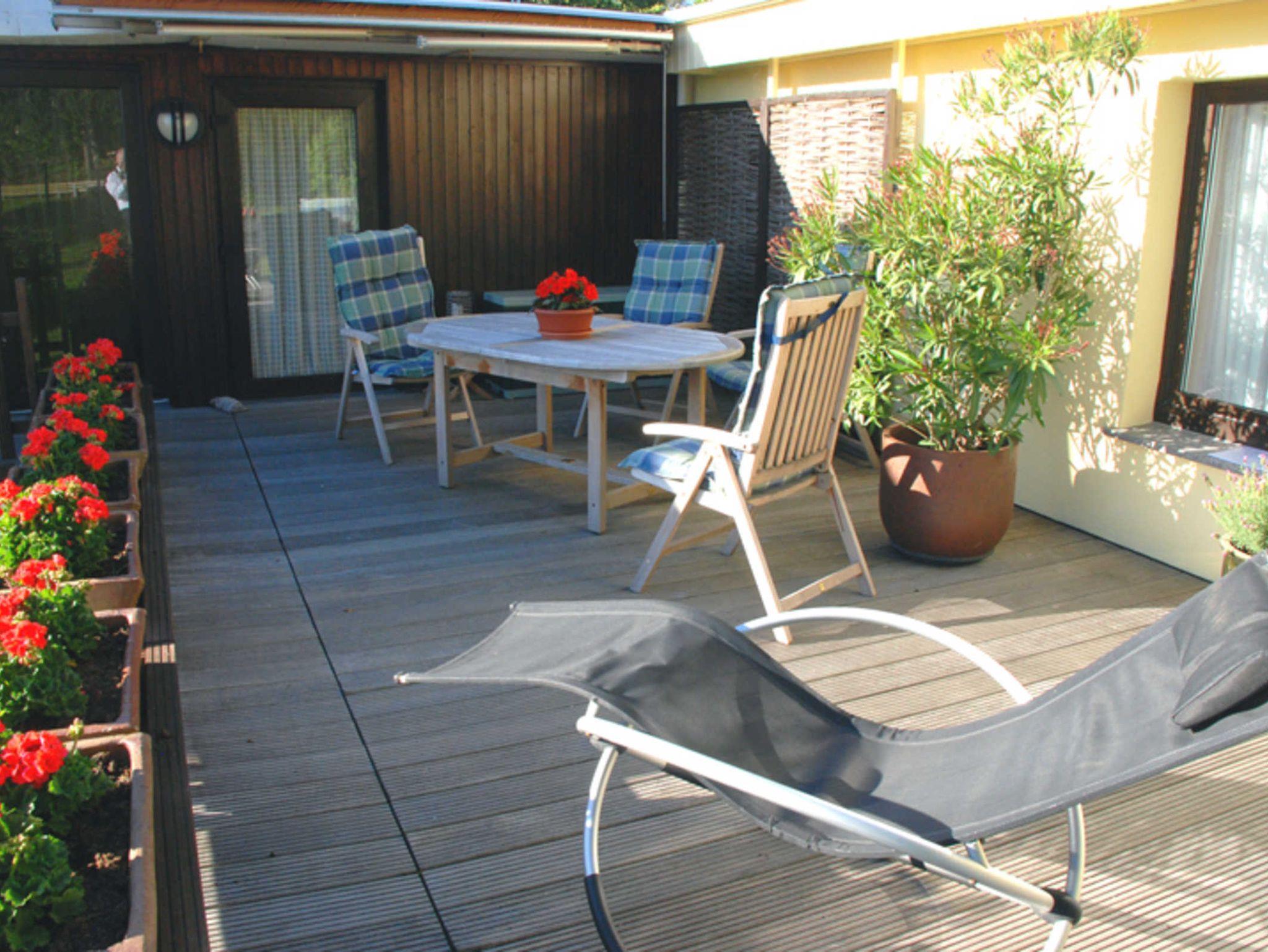 Zu diesem Appartement gehört eine schöne große Terrasse mit Gartenmöbeln.