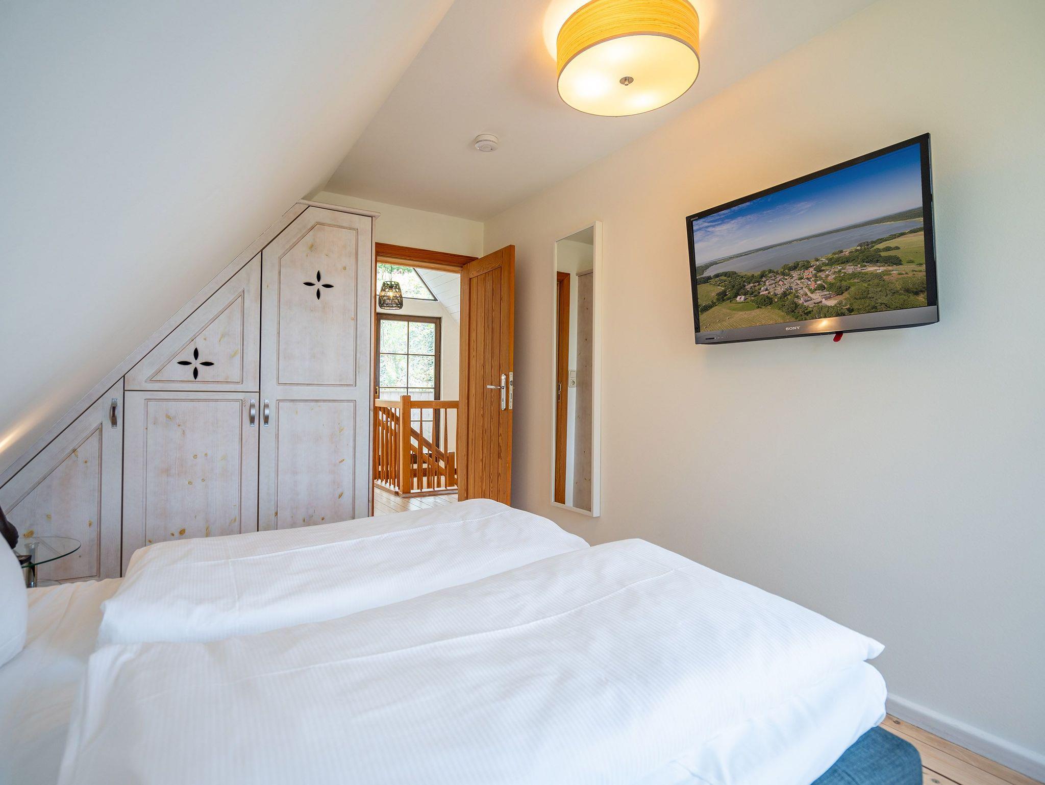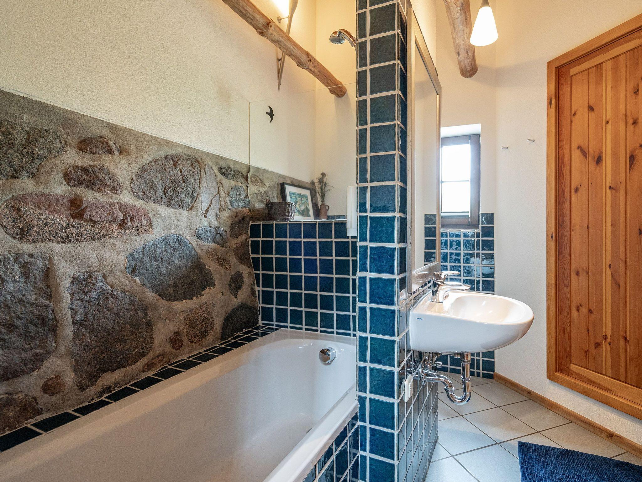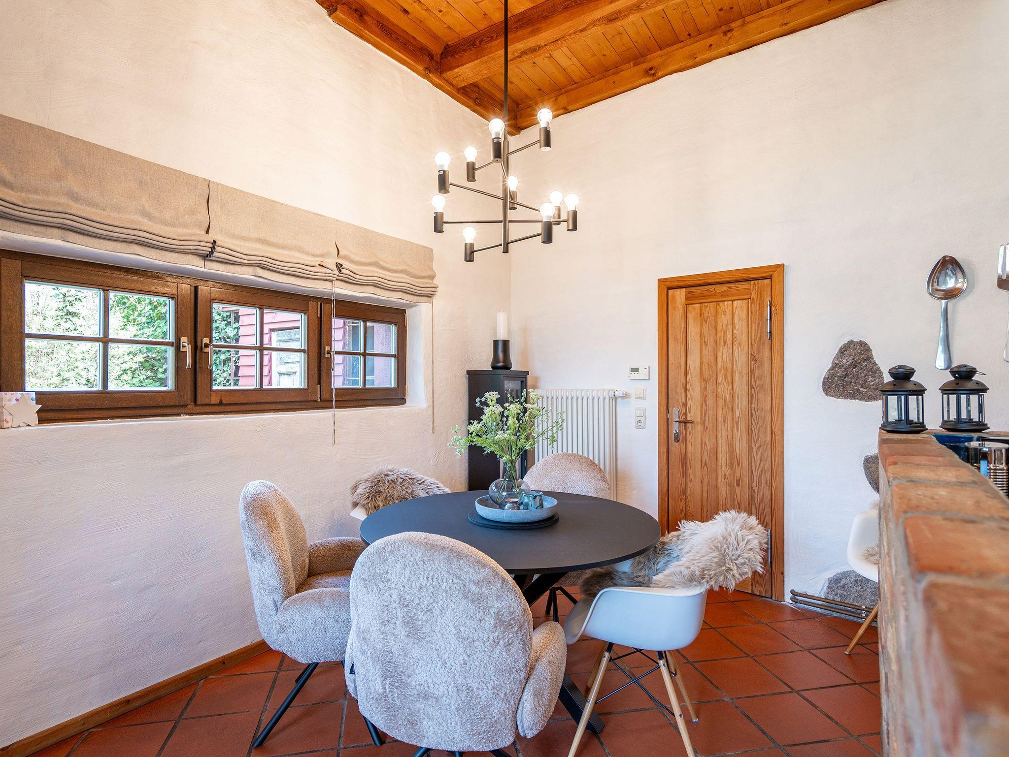 Das großzügige, helle Erdgeschoss ist in Wohnbereich, offene Küche, Bad und Sauna unterteilt. Überall lassen sich hier die alten Feldsteine der ehemaligen Scheune entdecken. Vor dem kuschligen Kamin macht man es sich auf dem Sofa gemütlich. Die offene Küche ist mit allem Komfort ausgestattet, der angrenzende Essplatz sorgt sicher für gesellige Runden, nicht nur beim Essen. Durch einen schwenkbaren Smart-TV müssen Sie auch von hier nicht auf Ihr Lieblingsprogram verzichten. Nach dem Saunagang erfrischt man sich im Bad mit Badewanne. Im Obergeschoss erwarten Sie zwei gemütliche Schlafzimmer mit Boxspringbetten (1x 1,60m und 1x 1,60m + Einzelbett / zusätzlich Flat-TV) die einen erholsamen Schlaf garantieren. Auf der Galerie davor lädt ein gemütlicher Lese- und Spielbereich ein. Und Außen? Ein kleiner Garten, eine Terrasse und eine schöne Holzveranda bieten für jeden Gast einen Rückzugsort zum Erholen im Freien. Auf Wunsch stellen wir für unsere kleinen Gäste ein Kinderreisebett (ohne zusätzliche Matratze [&] Bettzeug) und einen Kinderhochstuhl (gegen einen Aufpreis) zur Verfügung.