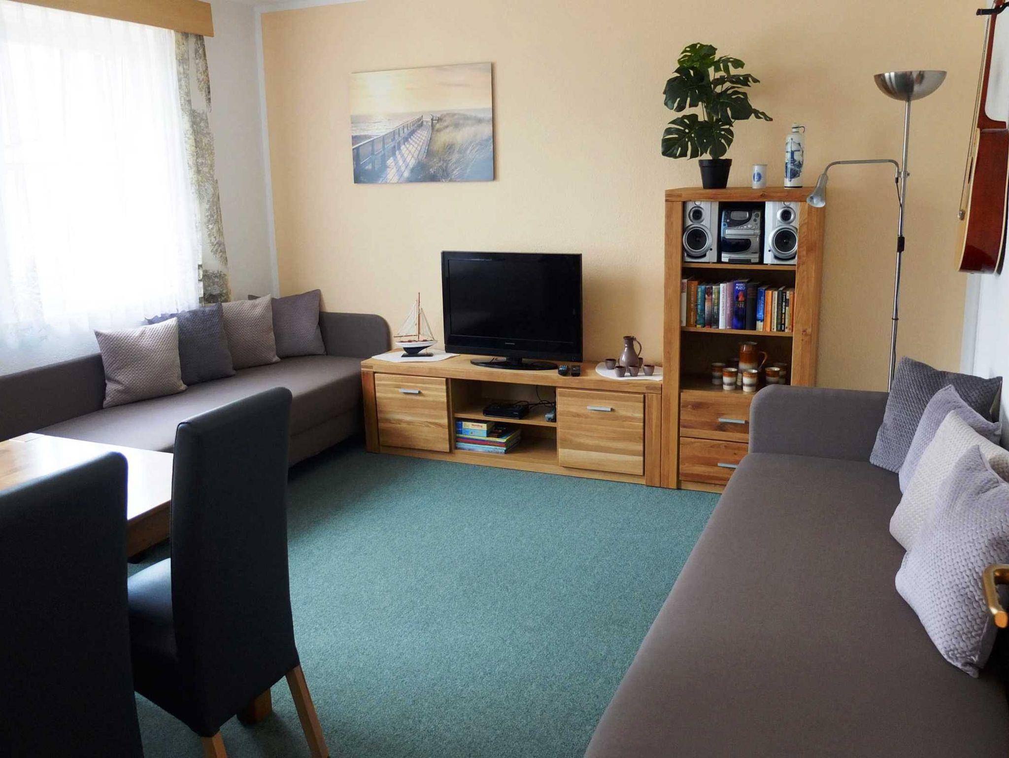 Das Ferienhaus Tempel ist ca. 85 m² groß und verfügt über ein gemütliches Wohnzimmer mit einer modernen Wohnwand, einen großen Esstisch für 6 Personen, Radio, Sat-TV und 2 Studioliegen (0,8x2m), die als vollwertige Betten genutzt werden können. Die separate Küche ist mit einem 4-Platten E-Herd, Backofen, Kühlschrank mit Gefrierfach, Spüle, Kaffeemaschine, Toaster, Brotschneidemaschine, Geschirr etc. ausgestattet.