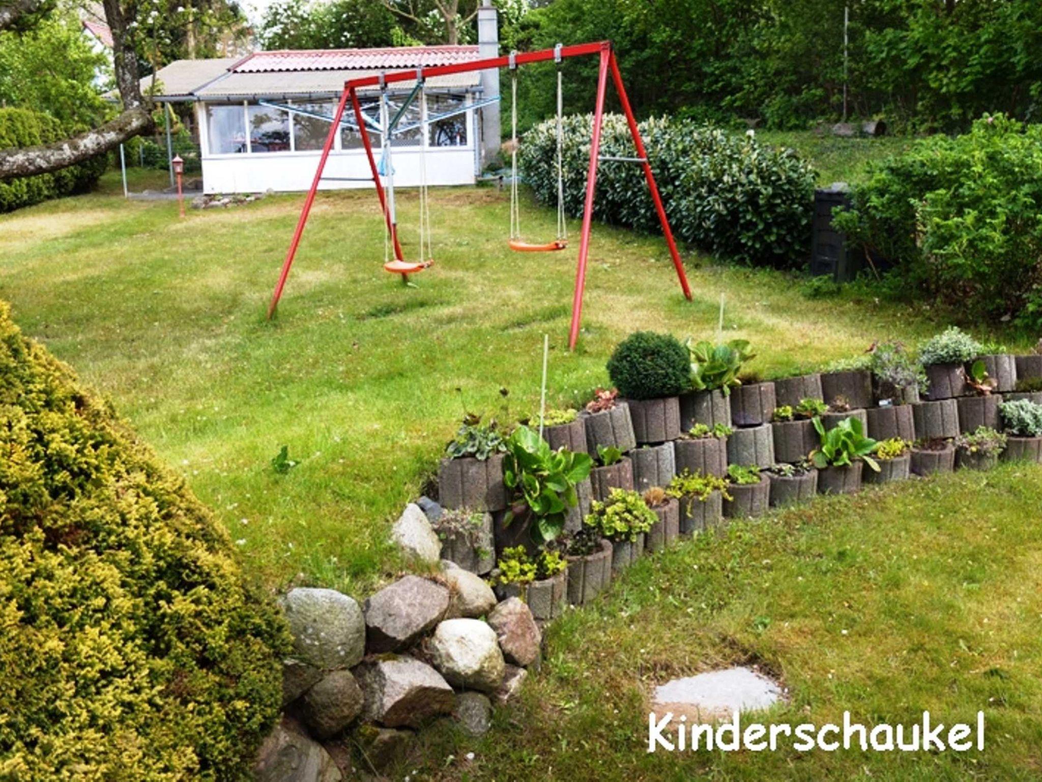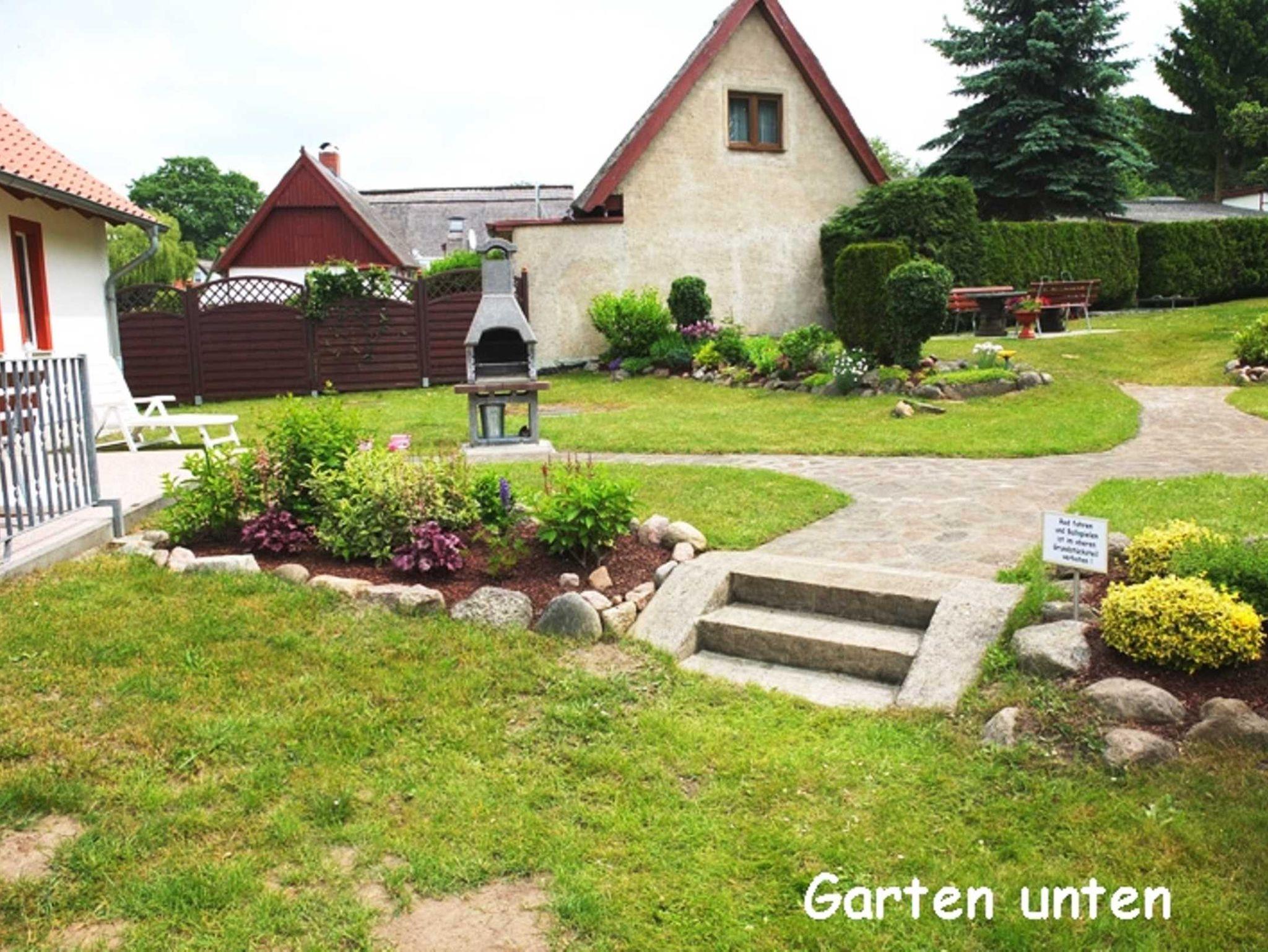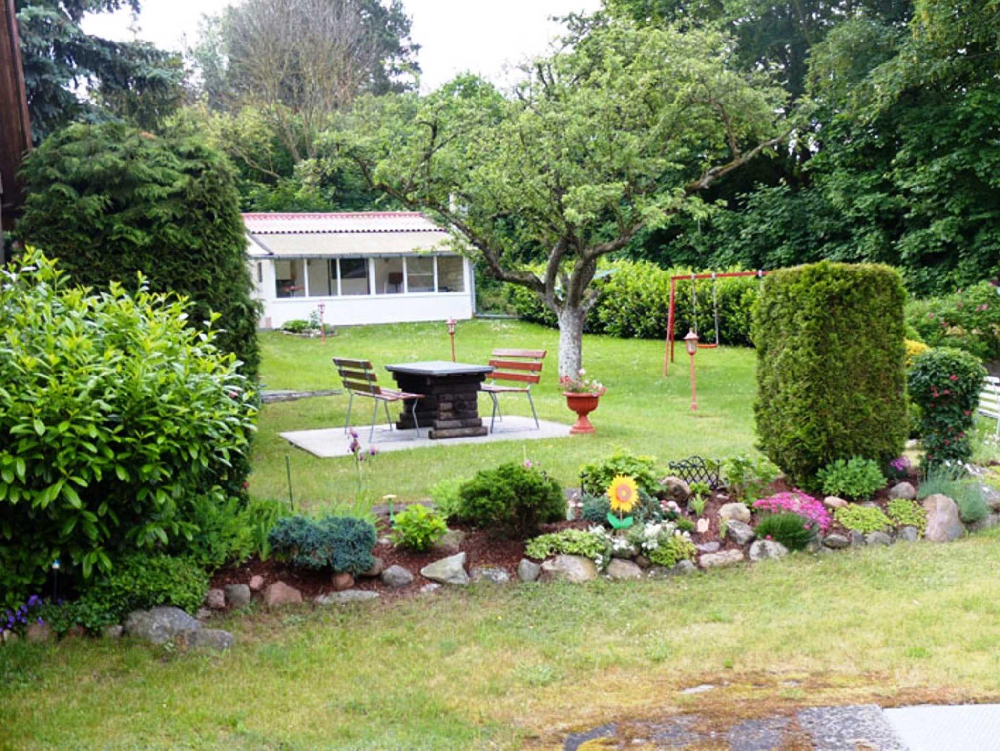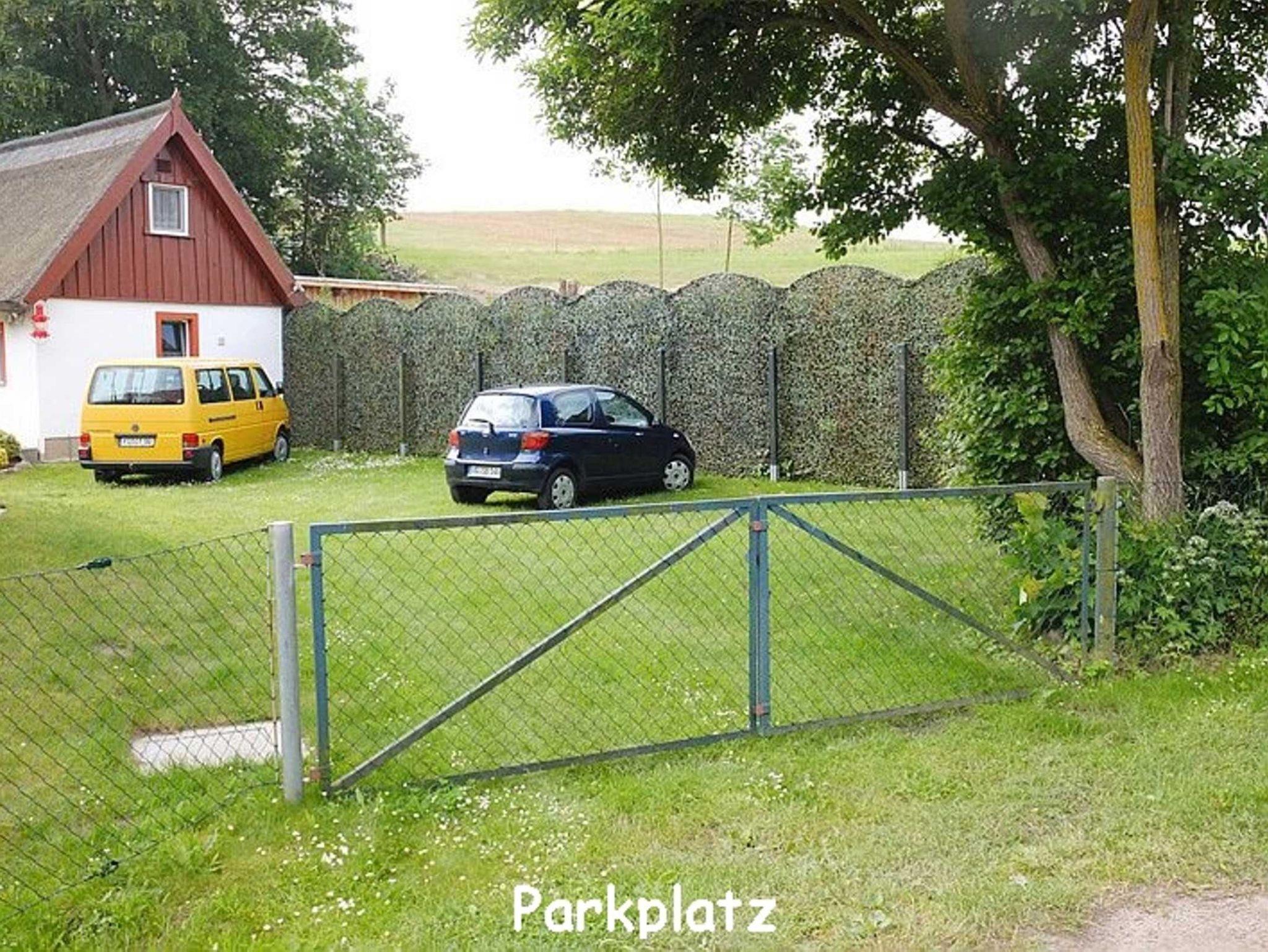 Zur Hofinnenseite befindet sich eine Terrasse (Süd-/Ostseite) mit Sitzmöbeln und Sonnenschirm, eine Liegewiese, Kinderschaukel. Mehrere Pkw-Stellplätze sind kostenlos auf dem Grundstück vorhanden.