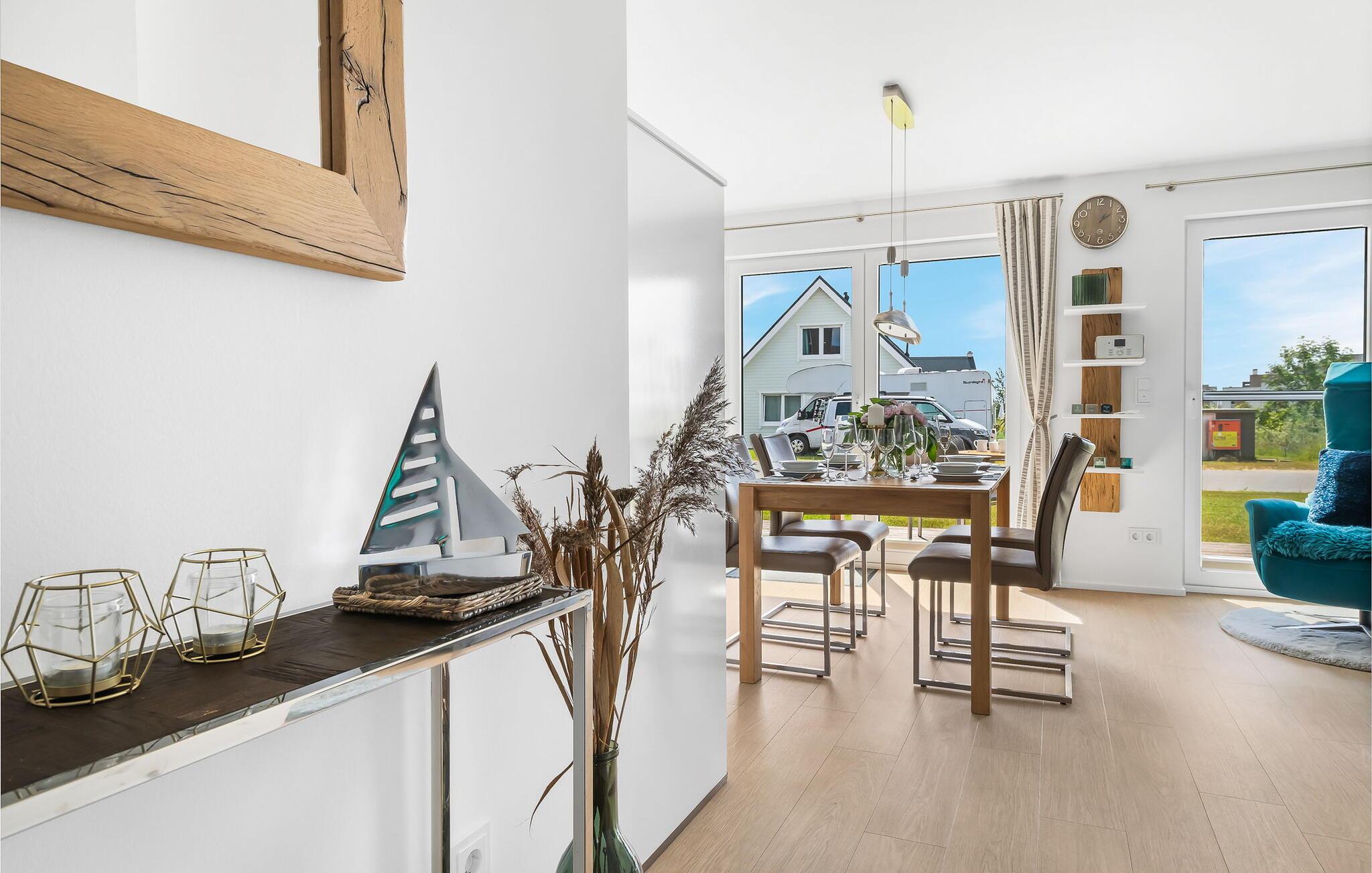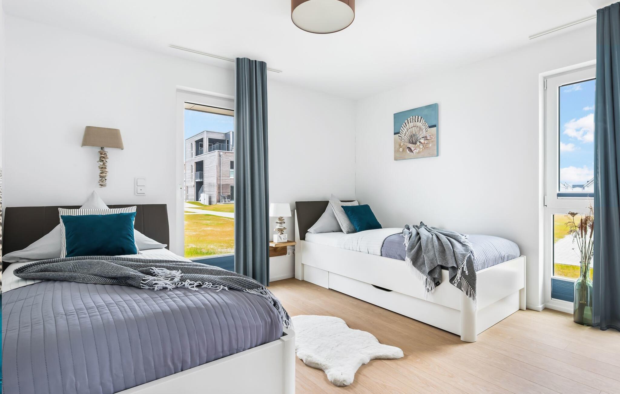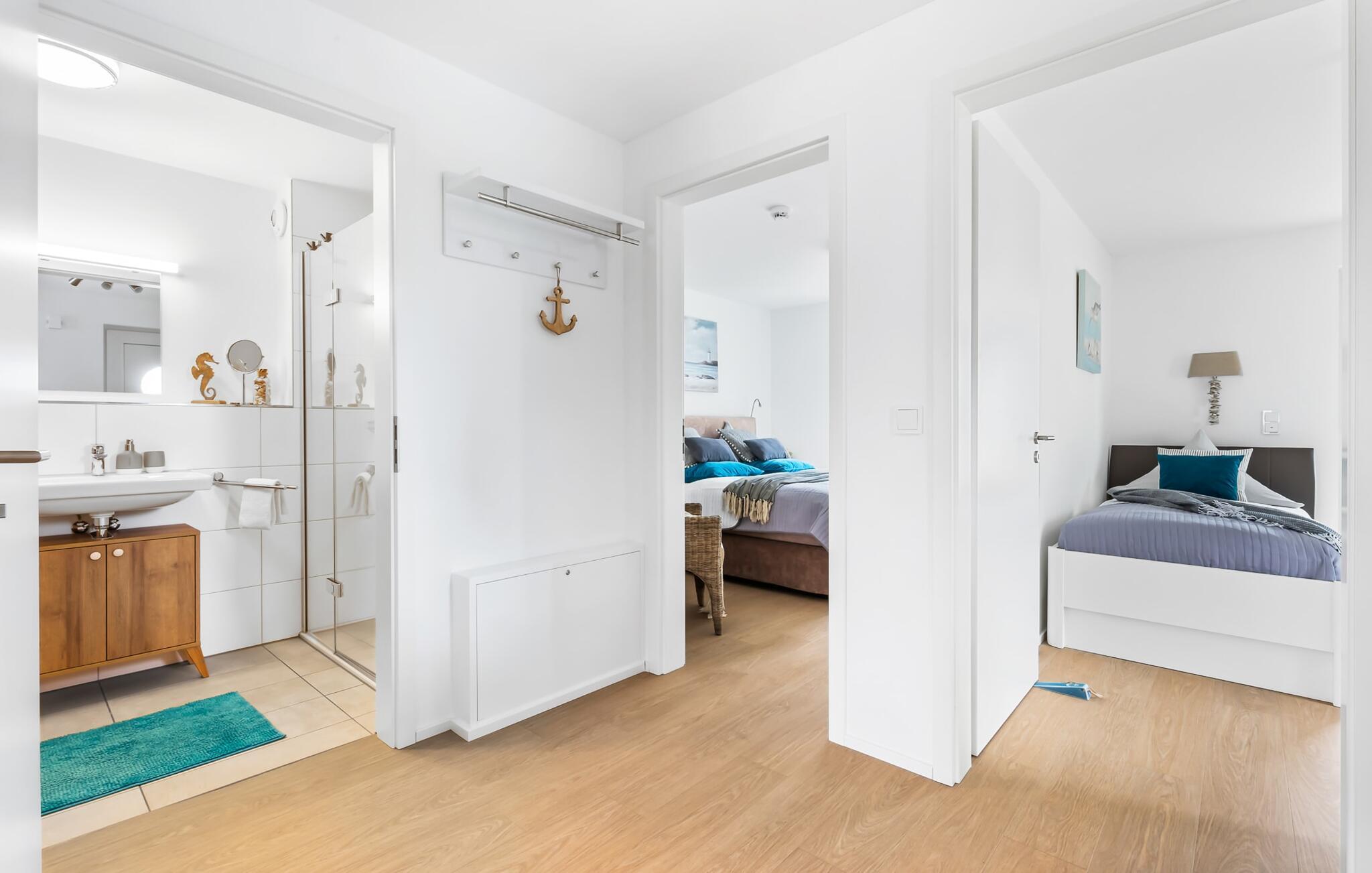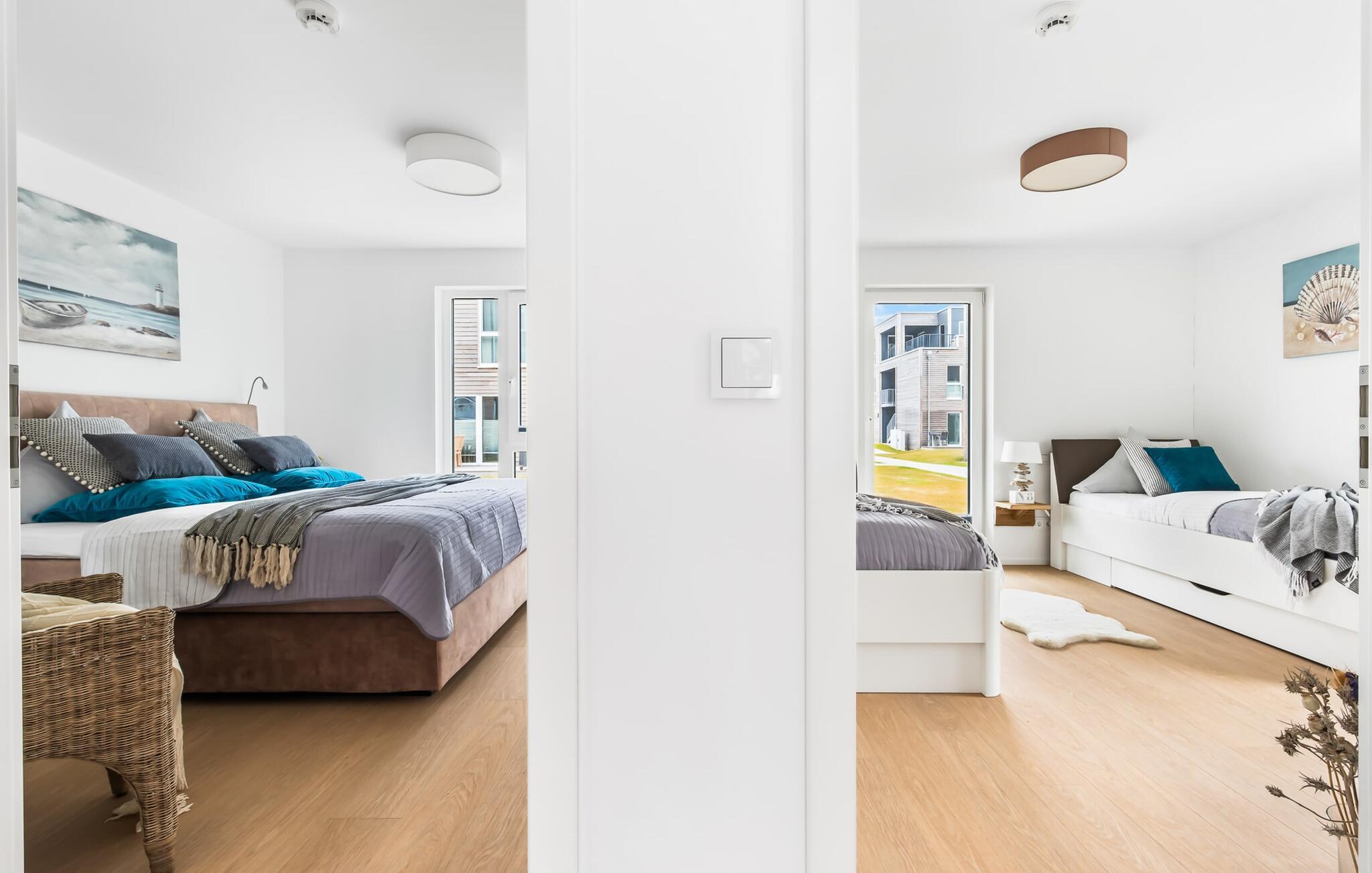 Beliggende direkte ved Østersøen og på Weidefelds sandstrand finder I denne ferielejlighed af høj kvalitet med garanti. SEUTE DEERN er en rummelig ferielejlighed i stueetagen for op til fire personer. Havnepromenaden i OstseeResort Olpenitz med dets voksende udbud og indkøbsmuligheder samt sejl- og sportsbådshavnen i OstseeResort Olpenitz kan nås til fods. Den maritime minigolfbane ligger i umiddelbar nærhed og byder på sjov for hele familien. Kom ind og føl jer straks hjemme! Med sin gulv-til-loft vinduesfront og den store tilstødende terrasse er den åbne stue/alrum lejlighedens hjerte. At slappe af i den hyggelige opholdsstue, nyde naturens fred og ro ud af vinduet eller se tv er ren afslapning og afslapning! SEUTEN DEERN fjerner hverdagen mere og mere... Noget af inventaret er lavet af genbrugstræ fra fjorden og bringer en maritim atmosfære direkte ind i lejligheden. Skulle vejret nogensinde blive nordisk, vil pejsen med sin brølende ild give yderligere komfort. Det integrerede køkken er perfekt udstyret, og det er sjovt at lave mad sammen. Så nyd de færdige lækkerier på terrassen eller start en hyggelig grillaften med den elektriske grill. Direkte fra opholdsstuen på SEUTEN DEERN kommer I ind på den store sydvendte terrasse. Ud mod solen inviterer havemøblerne, herunder en strandstol og liggestol, jer til at tilbringe en afslappende ferie. Dette er ren ferie! To soveværelser med komfortable senge er tilgængelige til afslapning om natten. Det første soveværelse inviterer jer til at tilbringe afslappende nætter med en dobbelt boxmadrasser. Det andet soveværelse er udstyret med to store (2 x 1 m) enkeltsenge og har en lille, overdækket terrasse og spil er tilgængelige i dårligt vejr. Havnen er inden for udsigt til begge soveværelser og stimulerer fantasien til udendørs aktiviteter. Bruserummet med brusebad i gulvniveau og infrarød sauna sikrer uforglemmelige wellness-øjeblikke, som I kan nyde i lang tid. For at give en hel feriekomfort finder I jeres egen parkeringsplads foran ferielejligheden. Vores favoritsted: Nyd dagen og slap af i en strandstol på solterrassen... Bemærk venligst: OstseeResort Olpenitz er meget populært, og der bygges fortsat i parken. Ikke desto mindre kan I se frem til en 5-stjernet standard og et førsteklasses ophold. Byggeaktiviteterne kommer ikke til at forstyrre jer på ferien, og derfor gives der ikke yderligere afslag i prisen.