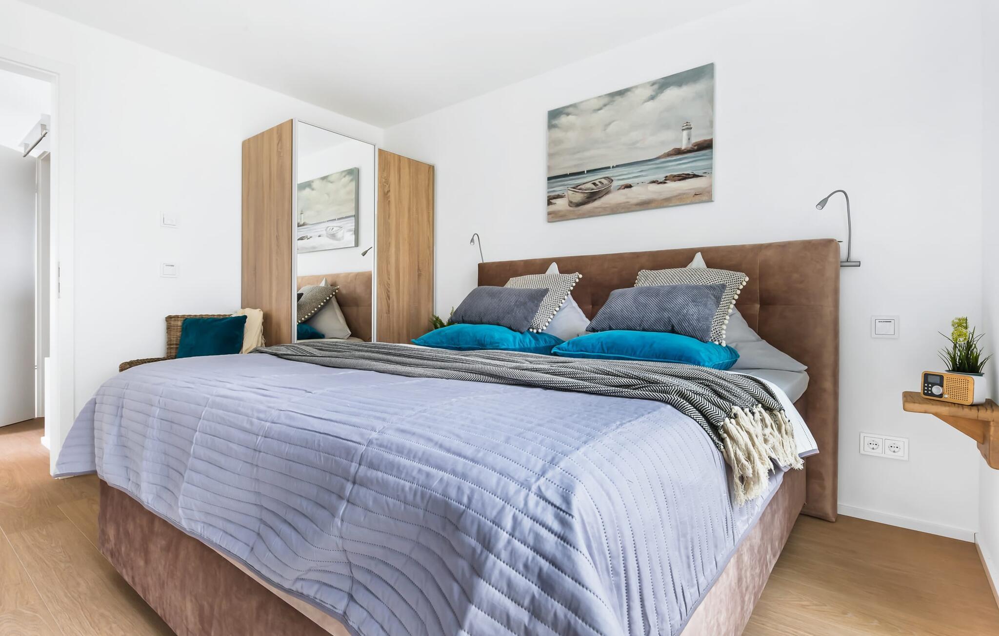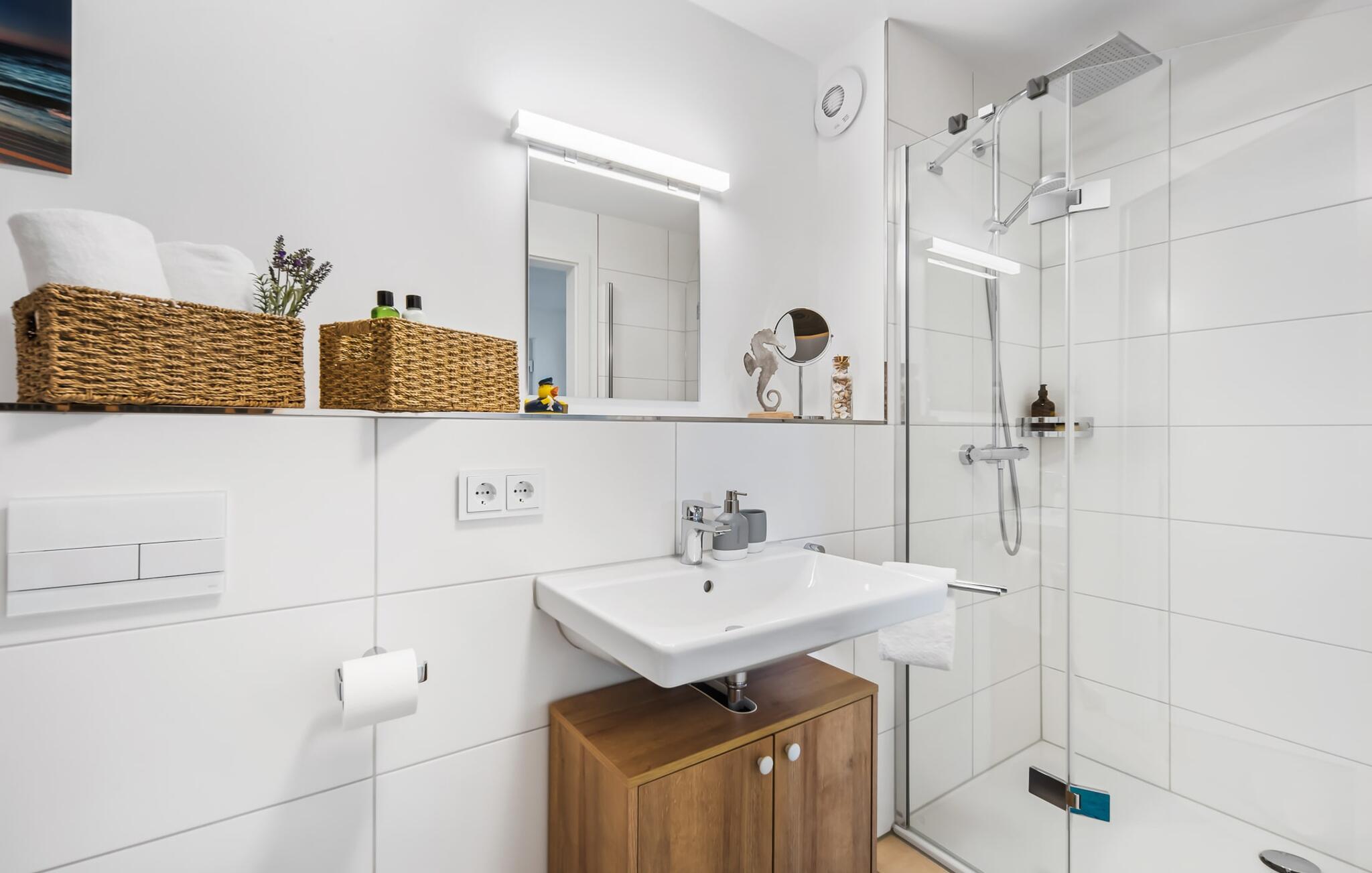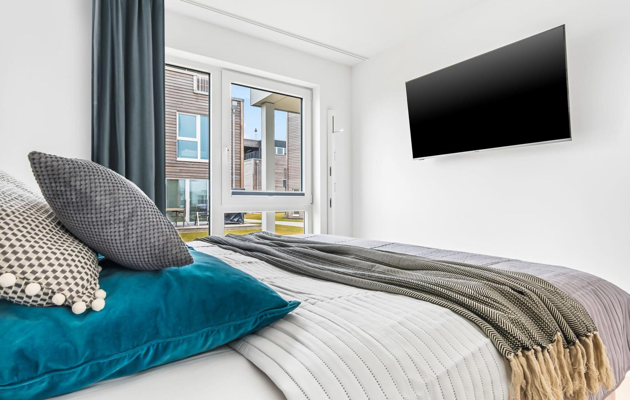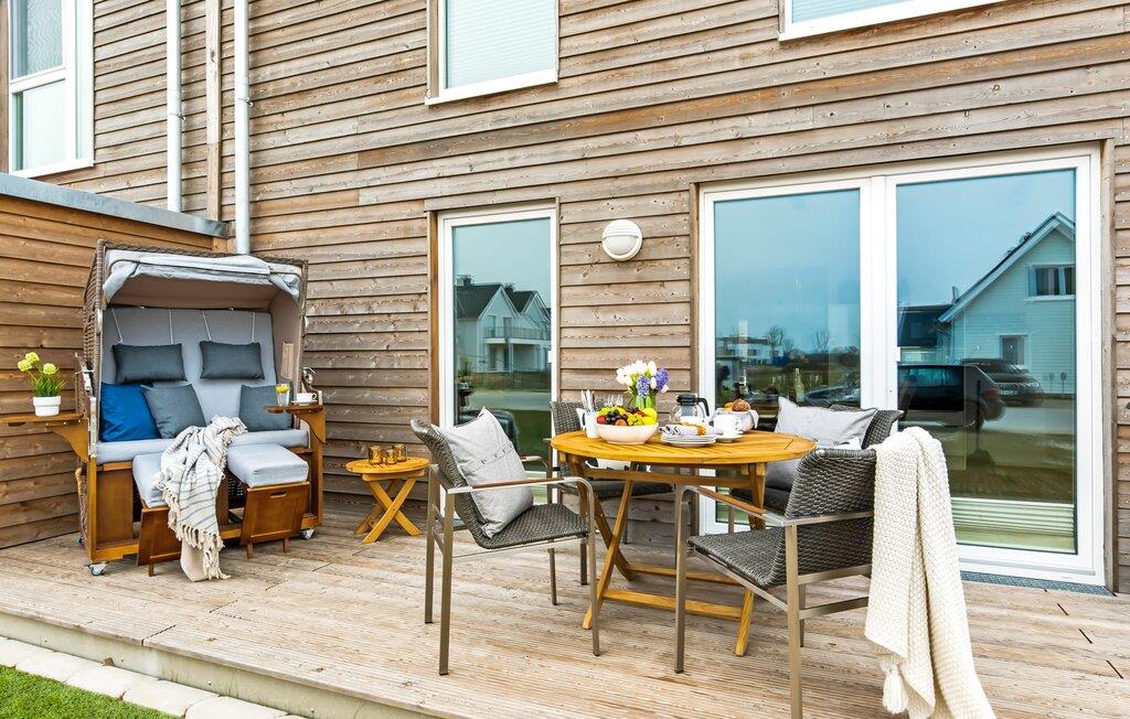 Beliggende direkte ved Østersøen og på Weidefelds sandstrand finder I denne ferielejlighed af høj kvalitet med garanti. SEUTE DEERN er en rummelig ferielejlighed i stueetagen for op til fire personer. Havnepromenaden i OstseeResort Olpenitz med dets voksende udbud og indkøbsmuligheder samt sejl- og sportsbådshavnen i OstseeResort Olpenitz kan nås til fods. Den maritime minigolfbane ligger i umiddelbar nærhed og byder på sjov for hele familien. Kom ind og føl jer straks hjemme! Med sin gulv-til-loft vinduesfront og den store tilstødende terrasse er den åbne stue/alrum lejlighedens hjerte. At slappe af i den hyggelige opholdsstue, nyde naturens fred og ro ud af vinduet eller se tv er ren afslapning og afslapning! SEUTEN DEERN fjerner hverdagen mere og mere... Noget af inventaret er lavet af genbrugstræ fra fjorden og bringer en maritim atmosfære direkte ind i lejligheden. Skulle vejret nogensinde blive nordisk, vil pejsen med sin brølende ild give yderligere komfort. Det integrerede køkken er perfekt udstyret, og det er sjovt at lave mad sammen. Så nyd de færdige lækkerier på terrassen eller start en hyggelig grillaften med den elektriske grill. Direkte fra opholdsstuen på SEUTEN DEERN kommer I ind på den store sydvendte terrasse. Ud mod solen inviterer havemøblerne, herunder en strandstol og liggestol, jer til at tilbringe en afslappende ferie. Dette er ren ferie! To soveværelser med komfortable senge er tilgængelige til afslapning om natten. Det første soveværelse inviterer jer til at tilbringe afslappende nætter med en dobbelt boxmadrasser. Det andet soveværelse er udstyret med to store (2 x 1 m) enkeltsenge og har en lille, overdækket terrasse og spil er tilgængelige i dårligt vejr. Havnen er inden for udsigt til begge soveværelser og stimulerer fantasien til udendørs aktiviteter. Bruserummet med brusebad i gulvniveau og infrarød sauna sikrer uforglemmelige wellness-øjeblikke, som I kan nyde i lang tid. For at give en hel feriekomfort finder I jeres egen parkeringsplads foran ferielejligheden. Vores favoritsted: Nyd dagen og slap af i en strandstol på solterrassen... Bemærk venligst: OstseeResort Olpenitz er meget populært, og der bygges fortsat i parken. Ikke desto mindre kan I se frem til en 5-stjernet standard og et førsteklasses ophold. Byggeaktiviteterne kommer ikke til at forstyrre jer på ferien, og derfor gives der ikke yderligere afslag i prisen.