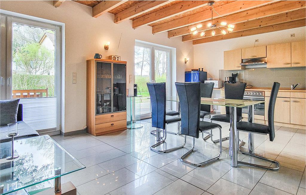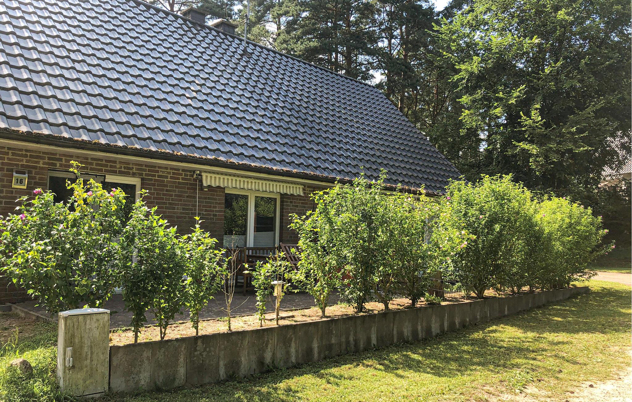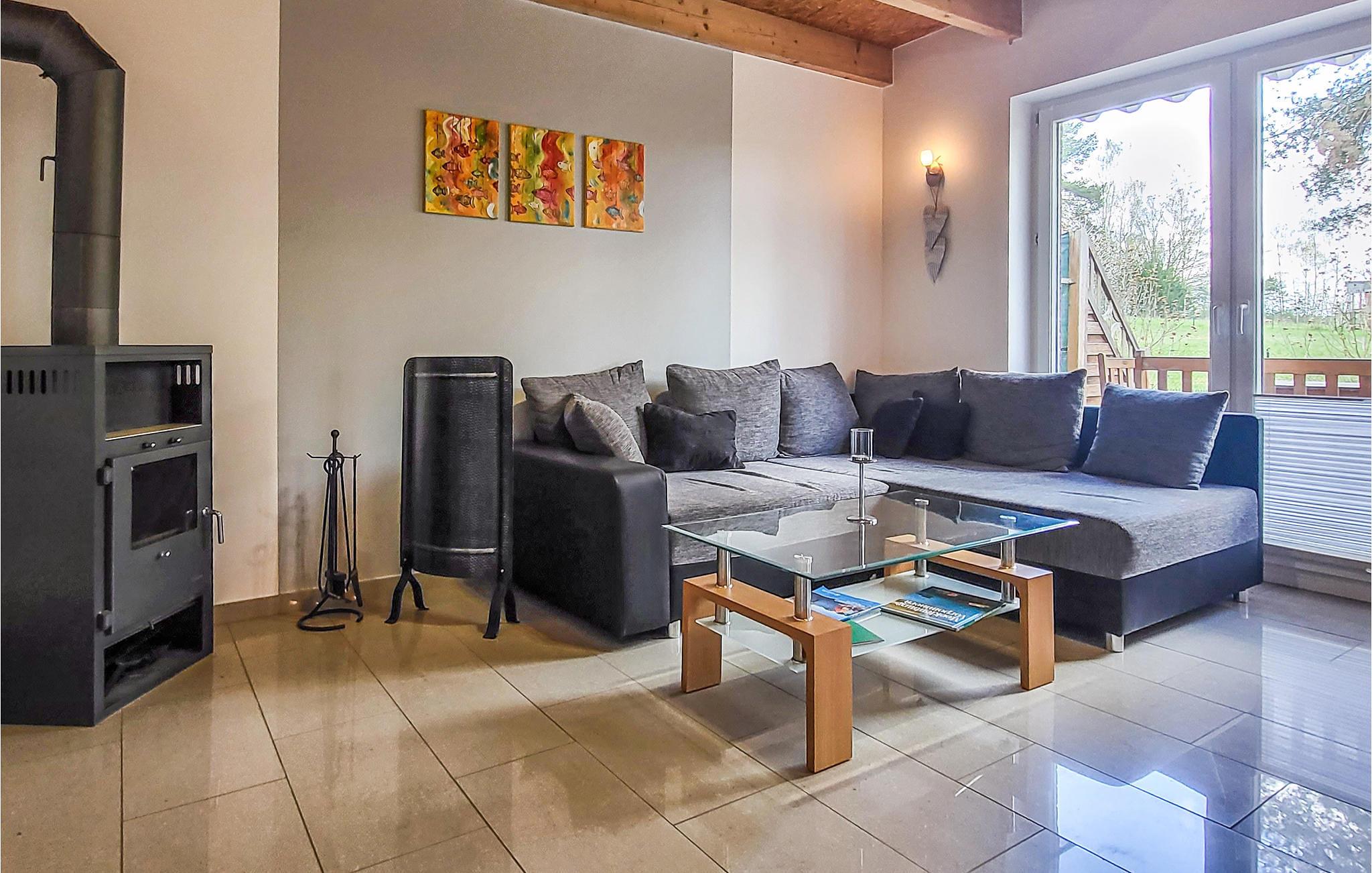 Velkommen til dette komfortable hus, som med sin beliggenhed nær Langhagensee er det ideelle sted for en uforglemmelig ferie med hele familien. De hyggelige lokaler får et varmt udtryk ved trælofterne og mange træelementer og gør det til det ideelle grundlag for en afslappende pause tæt på naturen. Slap af om aftenen sammen i stuen, hvor sofaen indbyder til at gøre jer rigtig godt tilpas og snakke længe. Fyr op i pejsen og lyt til flammernes knitren.