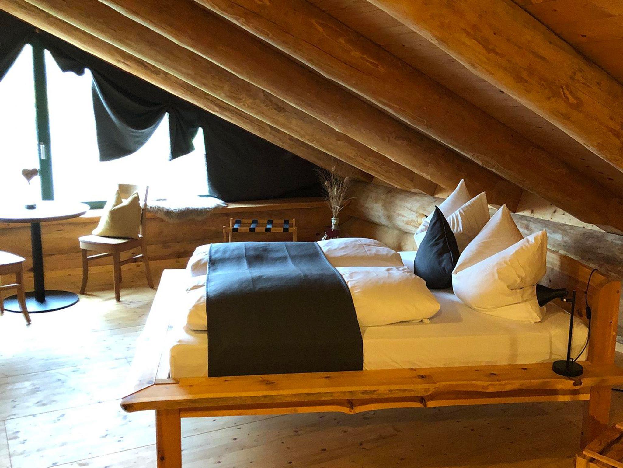 Genießen Sie pure Entspannung inmitten der Natur. Das Chalet bietet zwei gemütliche Schlafzimmer, jedes ausgestattet mit einem Doppelbett. Ein offenes Bad mit komfortabler Dusche sorgt für Ihr Wohlbefinden.