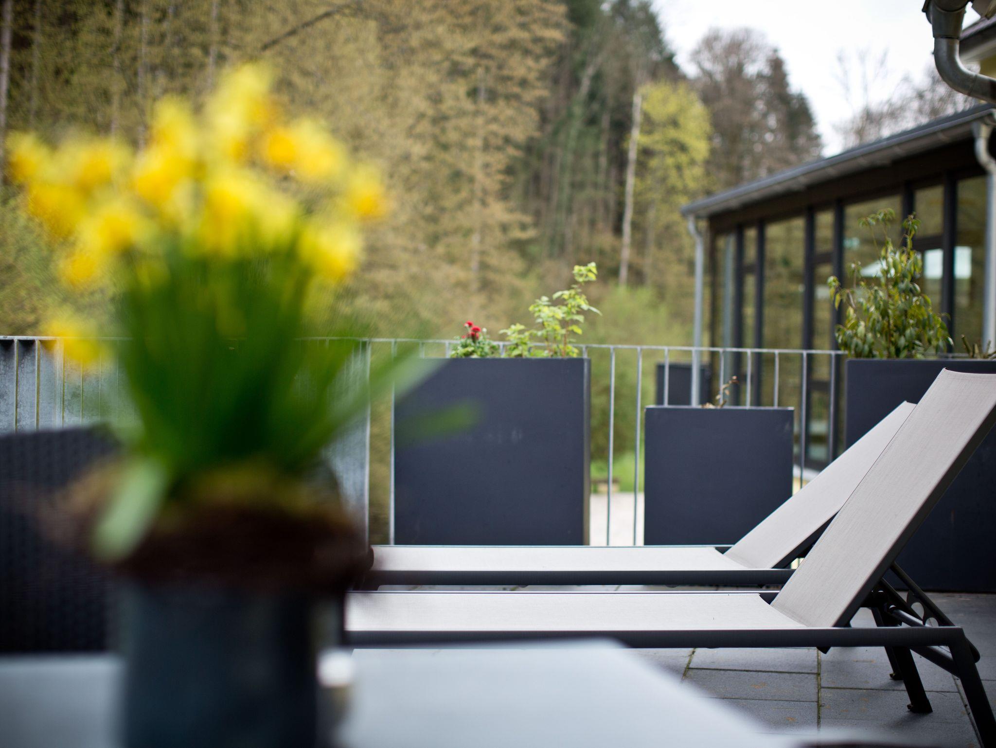 Neben den Wohnungen als Herzstück ist die Anlage auch durch das RestaurantKaminstube mit dazugehörigem Biergarten und den Veranstaltungssaal Waldblick mit seiner großzügigen Terrasse am Bach gekennzeichnet. An schönen Sommerabenden lädt der Biergarten auf ein kühles Getränk und zum verweilen ein und bietet auch einen Spielplatz mit Streichelzoo für die kleinen Gäste.