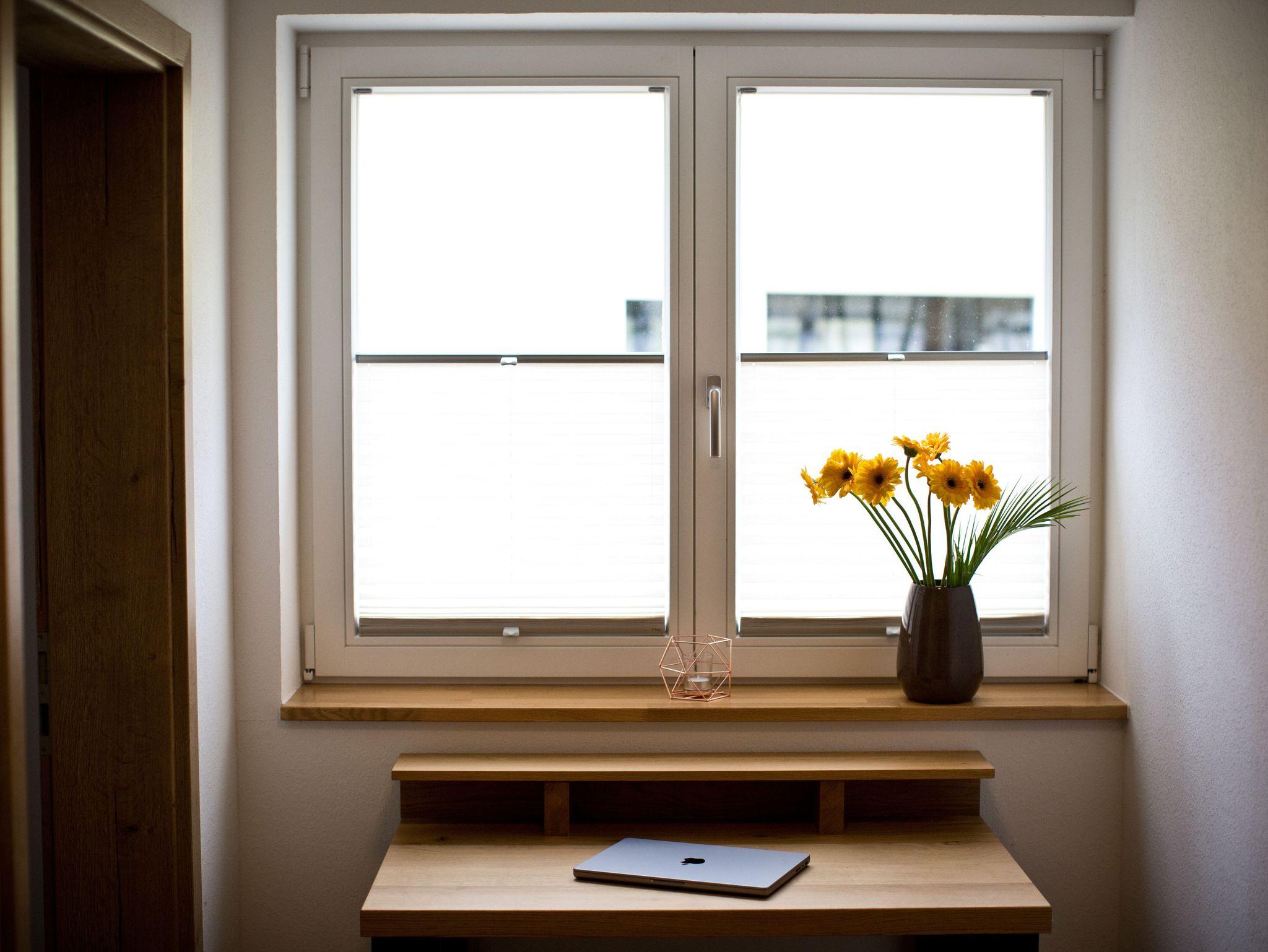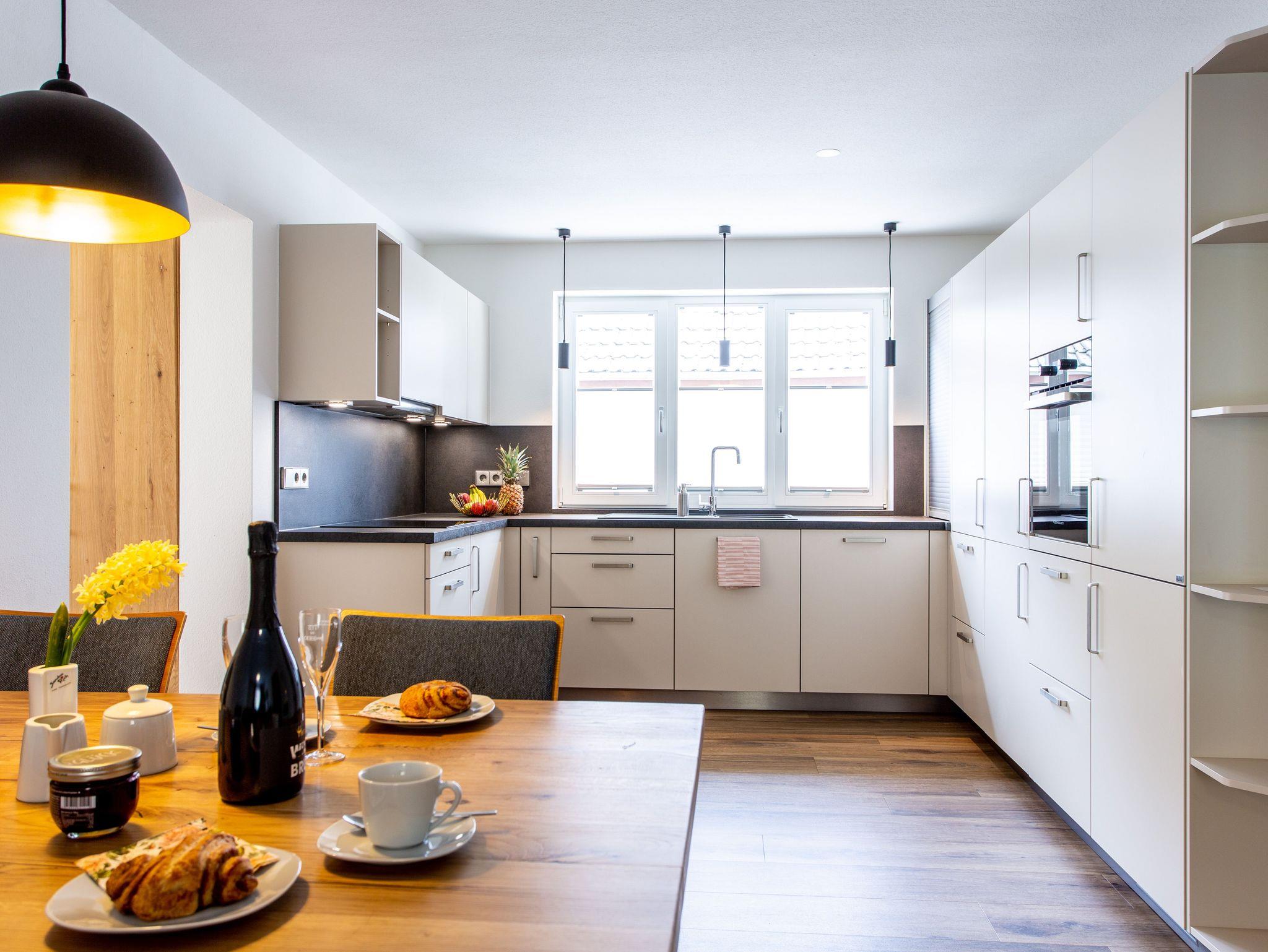 Die Wohnung Eiche ist geräumig und mit Geschirrspüler, sowie Waschtrockner ausgestattet. Bei Sonnenschein ist sie sehr hell und lichtdurchflutet, da es möglich ist den Balkon sowohl vom Wohnzimmer als auch vom Schlafzimmer aus zu betreten.