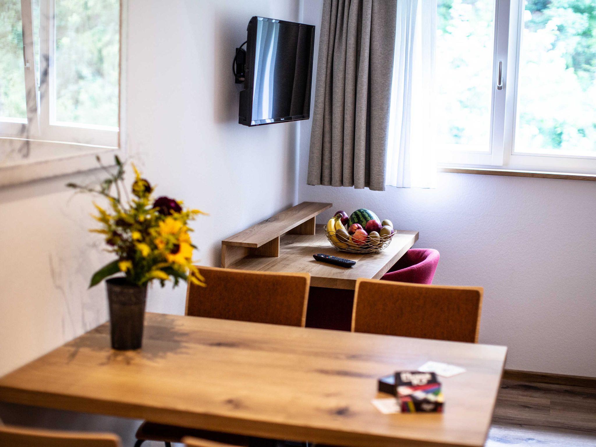 Neben den Wohnungen als Herzstück ist die Anlage auch durch das RestaurantKaminstube mit dazugehörigem Biergarten und den Veranstaltungssaal Waldblick mit seiner großzügigen Terrasse am Bach gekennzeichnet. An schönen Sommerabenden lädt der Biergarten auf ein kühles Getränk und zum verweilen ein und bietet auch einen Spielplatz mit Streichelzoo für die kleinen Gäste.