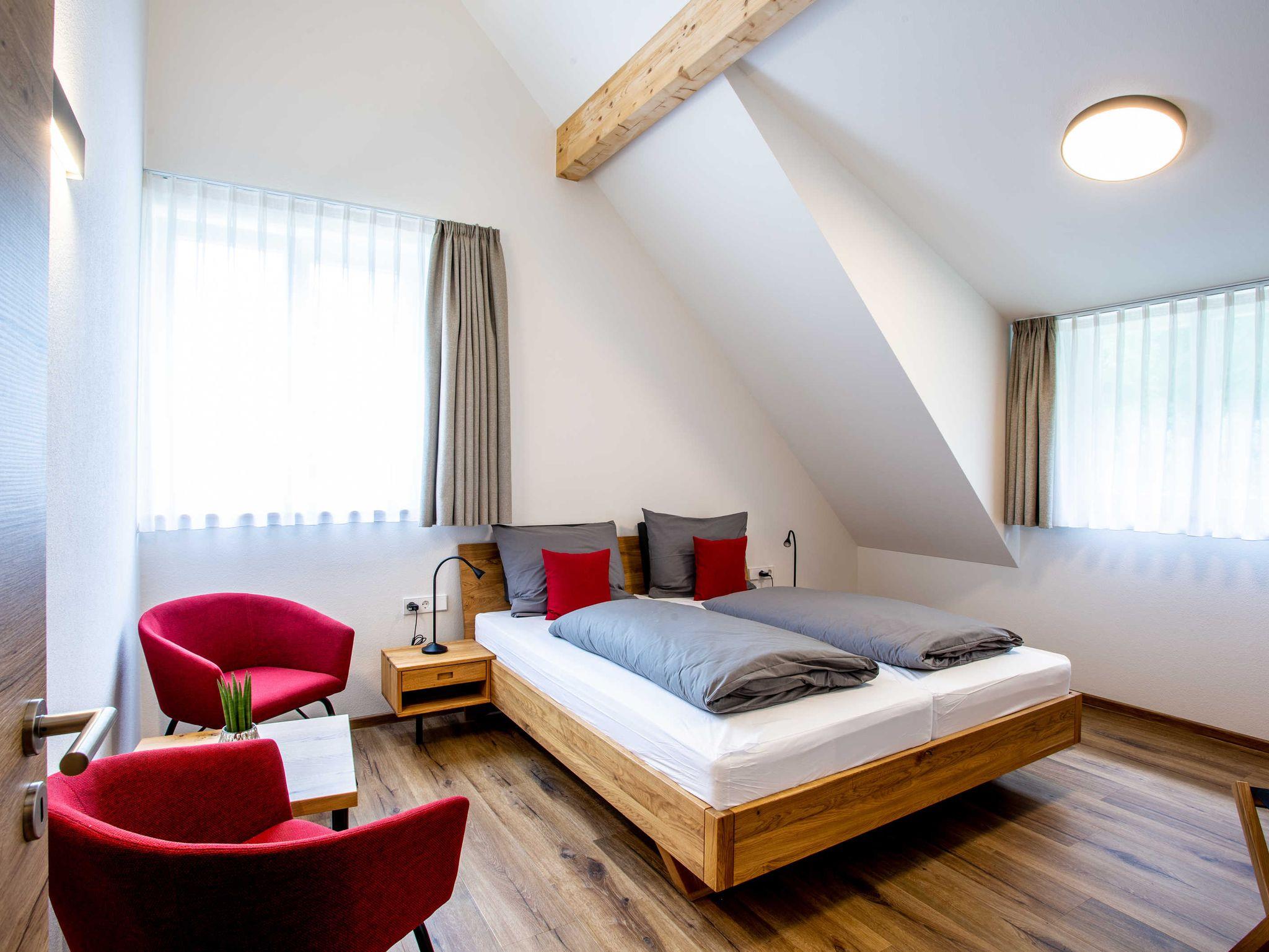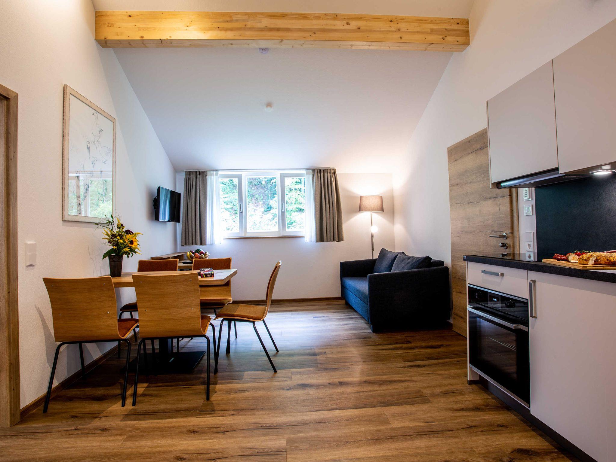 Die Kernbuche ist einer unserer schönen Wohnungen im Dachgeschoss. Sie hat zwei Schlafzimmer und eine größer ausgestattete Küche. So ist sie die perfekte Wohnung für eine Familie oder zwei Pärchen.
