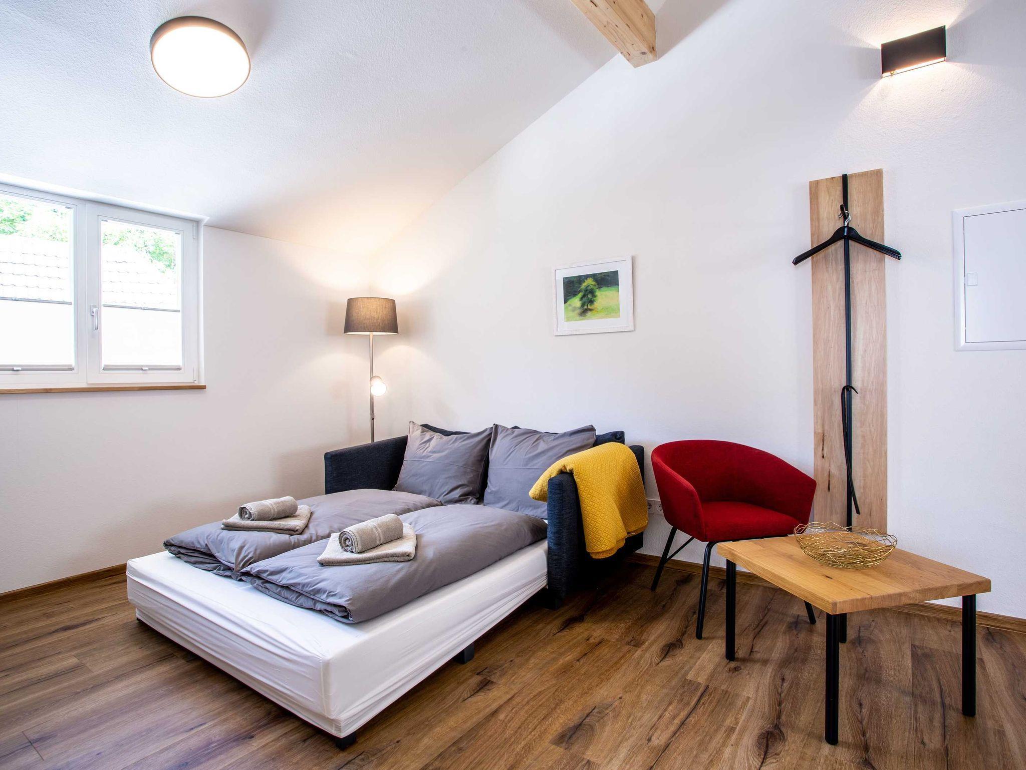 Unsere Zwei-Zimmer-Ferienwohnungen von 36 bis 50 m² sind Nichtraucherwohnungen und verfügen über ein Schlafzimmer mit Doppelbett, ein Wohnzimmer mit Schlafsofa, eine Küchenzeile mit 2-Platten-Induktionsherd, teilweise mit Balkon oder Terrasse, Dusche/WC, SAT-TV-Flatscreen und W-LAN.